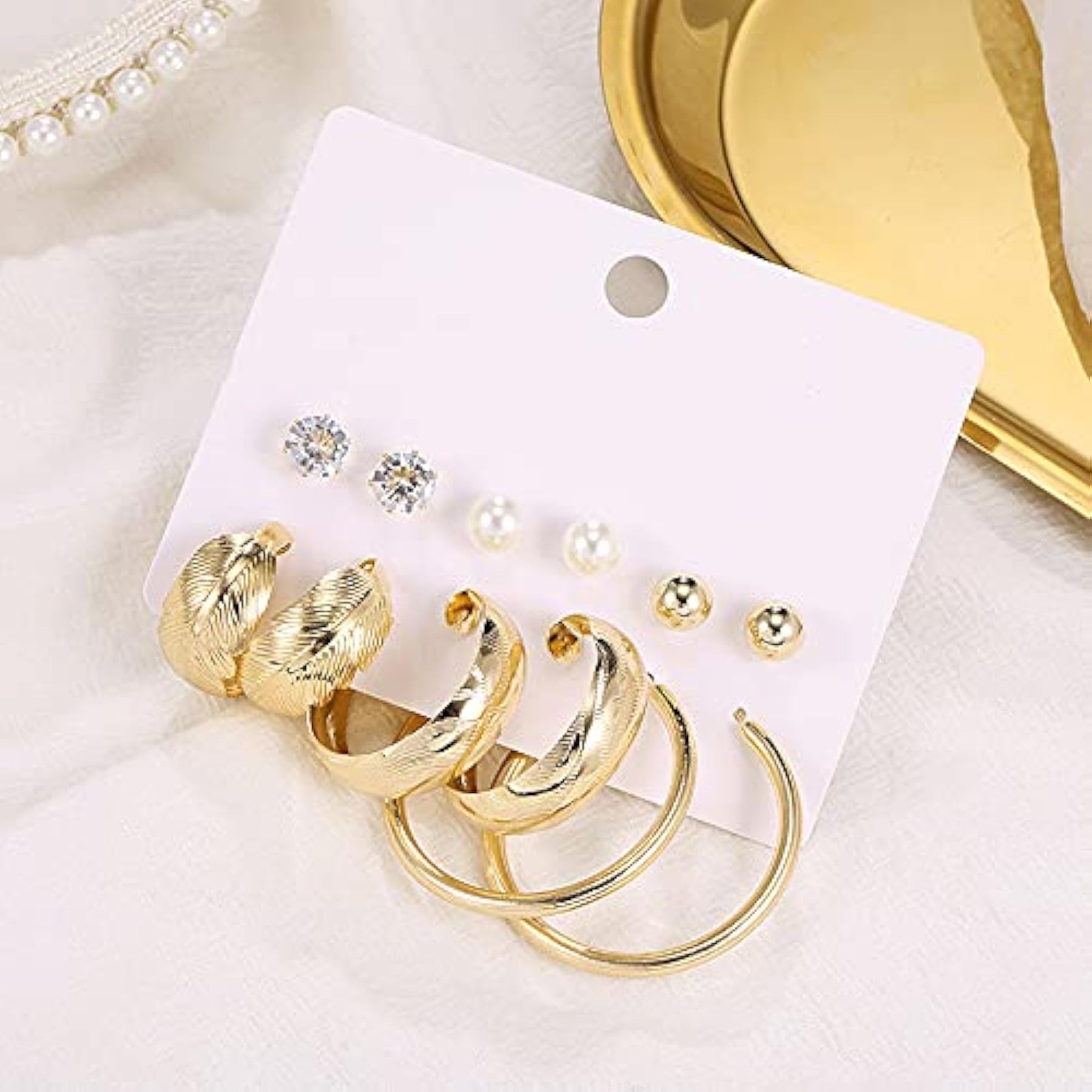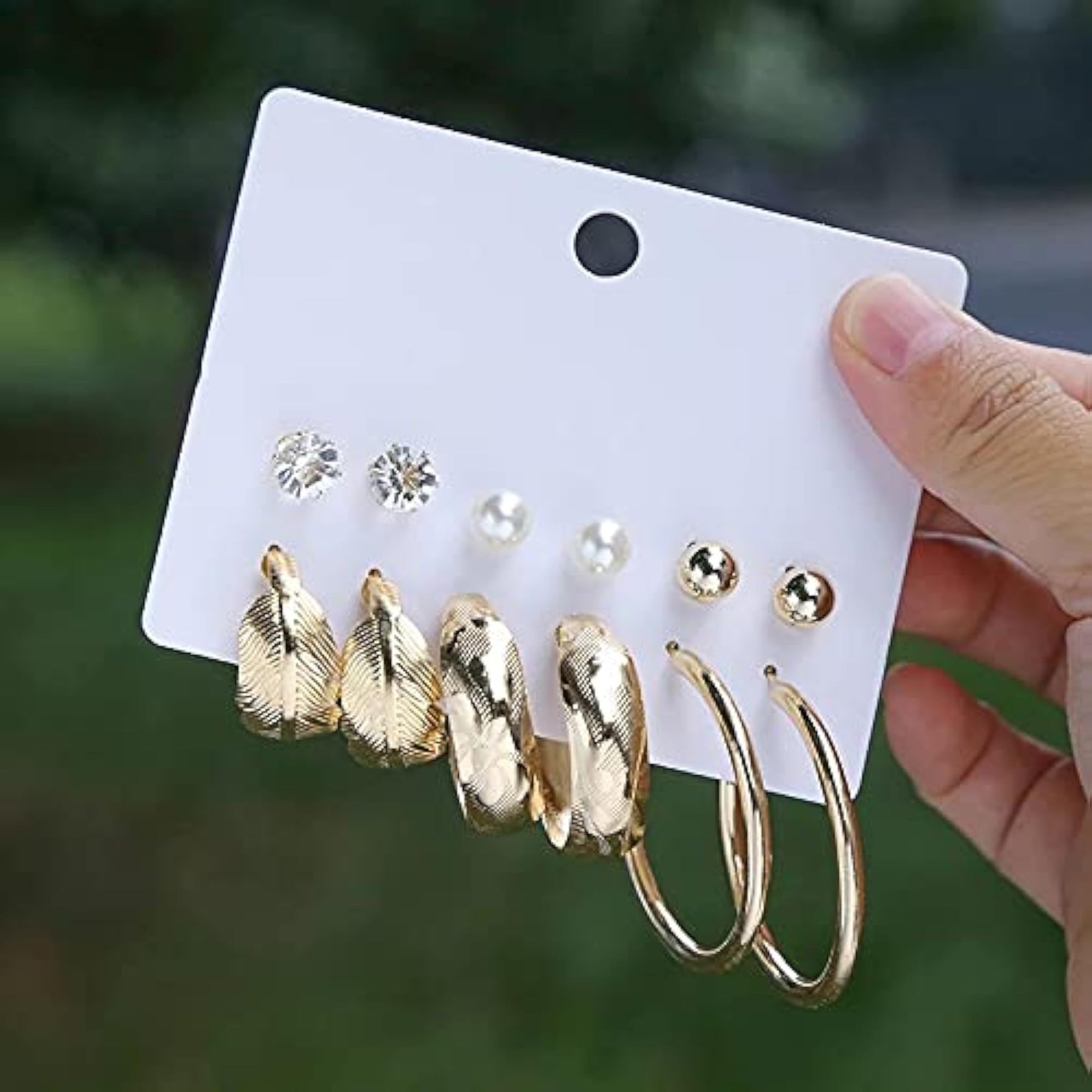 Get this stylish combo set of 6 pairs of metal earrings for women to add a touch of elegance to your look.