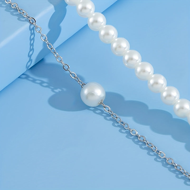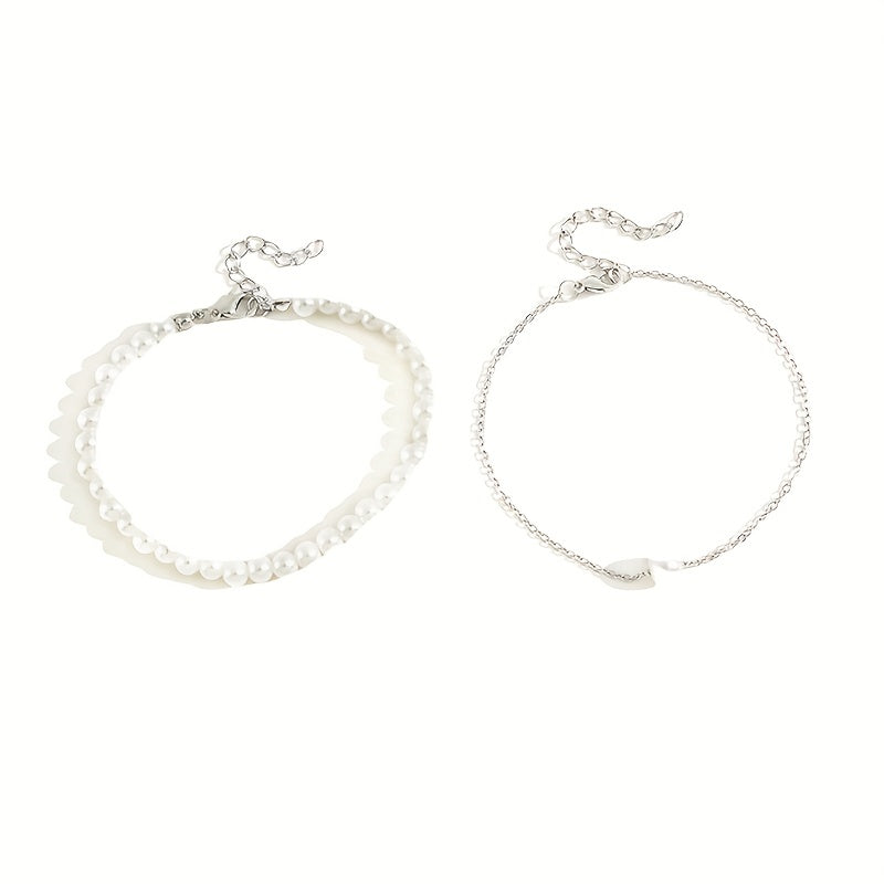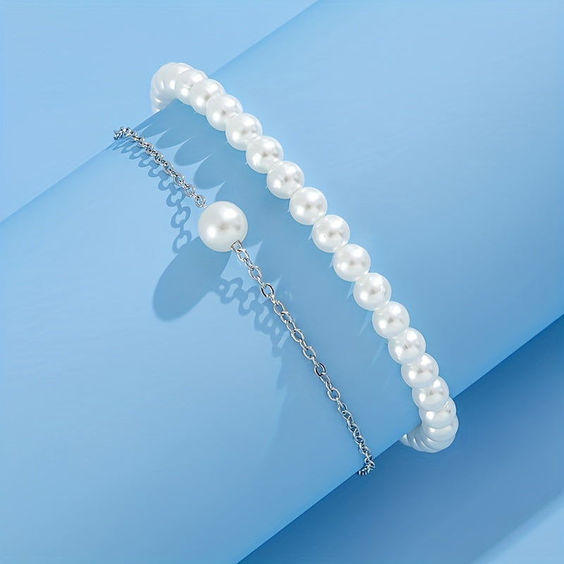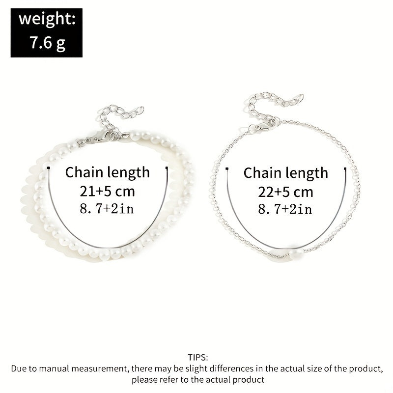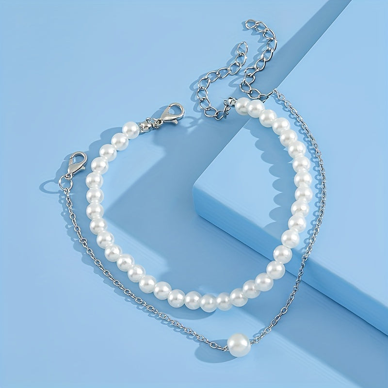 Elevate your ankle jewelry game with this fashionable 2-piece set featuring double layer stacking anklets adorned with faux pearls. Perfect for adding a touch of elegance to any outfit.