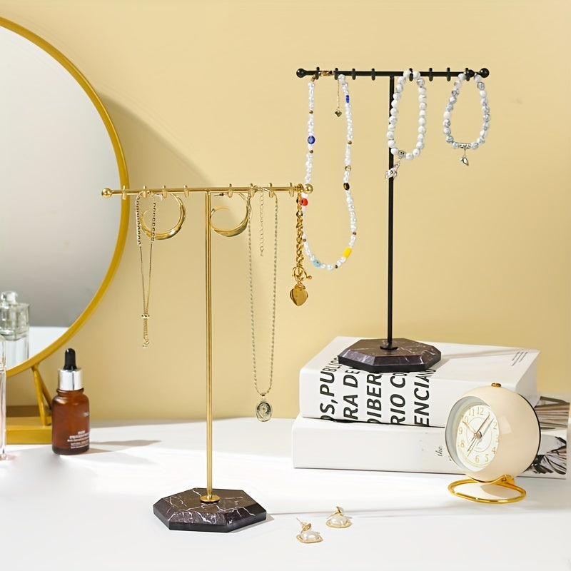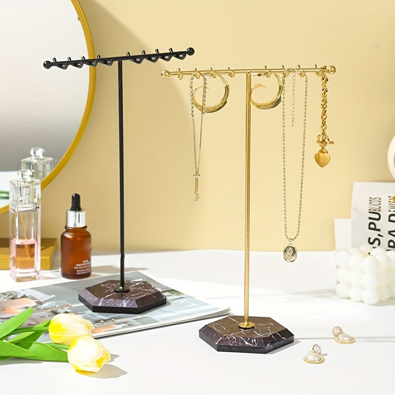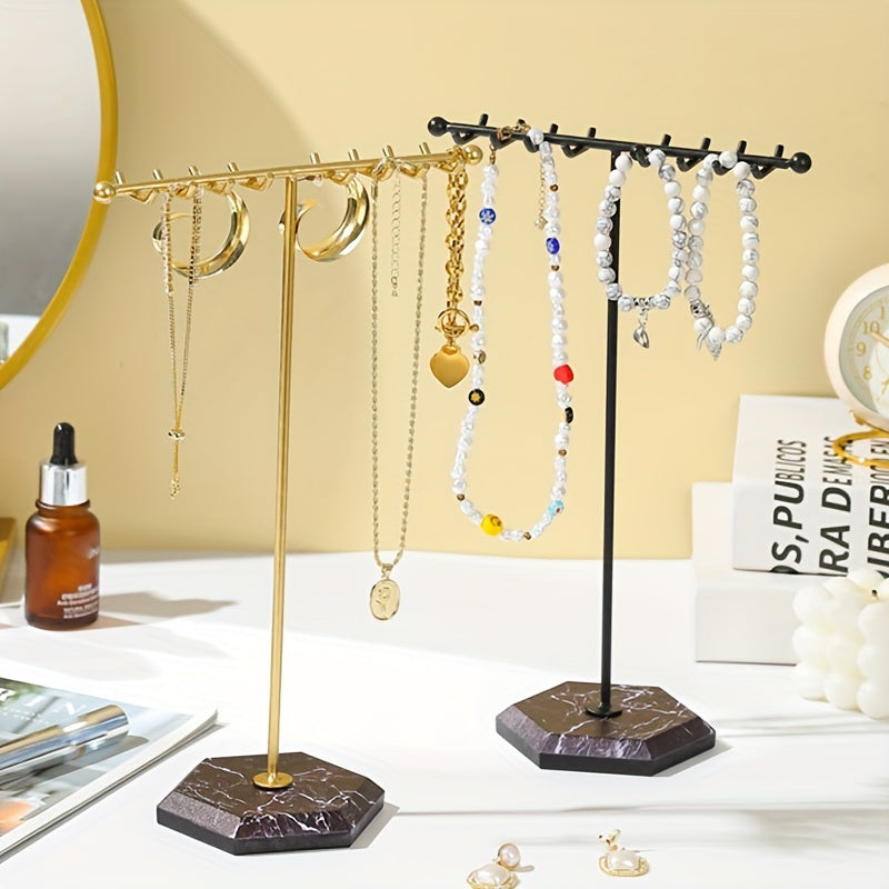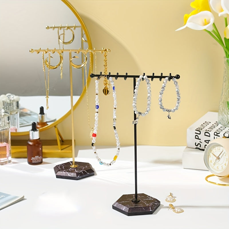 This stylish T Bar Jewelry Display Stand with hooks is perfect for showcasing your jewelry collection. Use it to display hanging pendants, earrings, bracelets, rings, and other accessories.