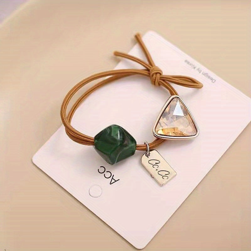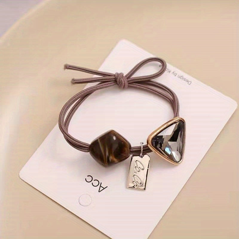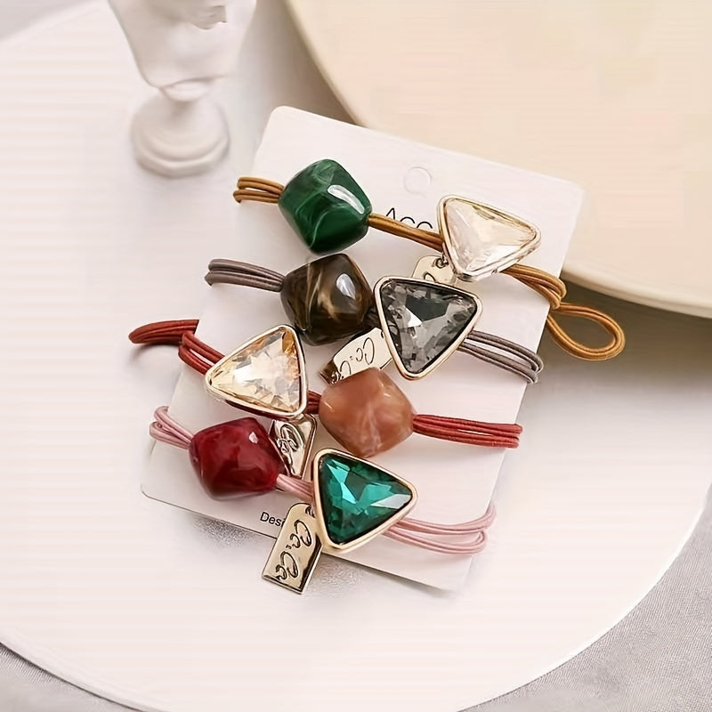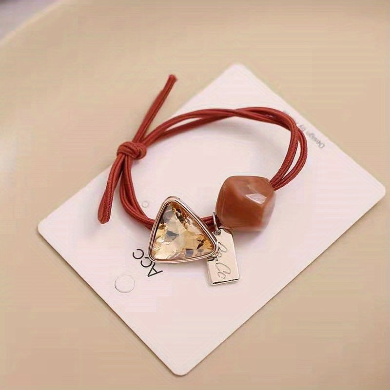 Add a touch of sparkle to your hairstyle with this triangular rhinestone rubber band. Perfect for adding a bit of bling to any look, this hair trinket is both stylish and functional.