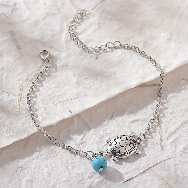 Add a touch of boho chic to your look with this dainty turtle shape beads chain anklet. Perfect for everyday wear or special occasions.