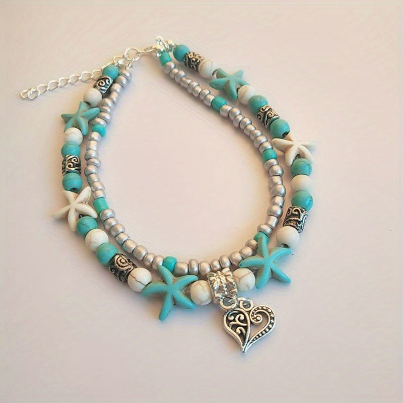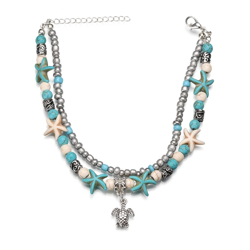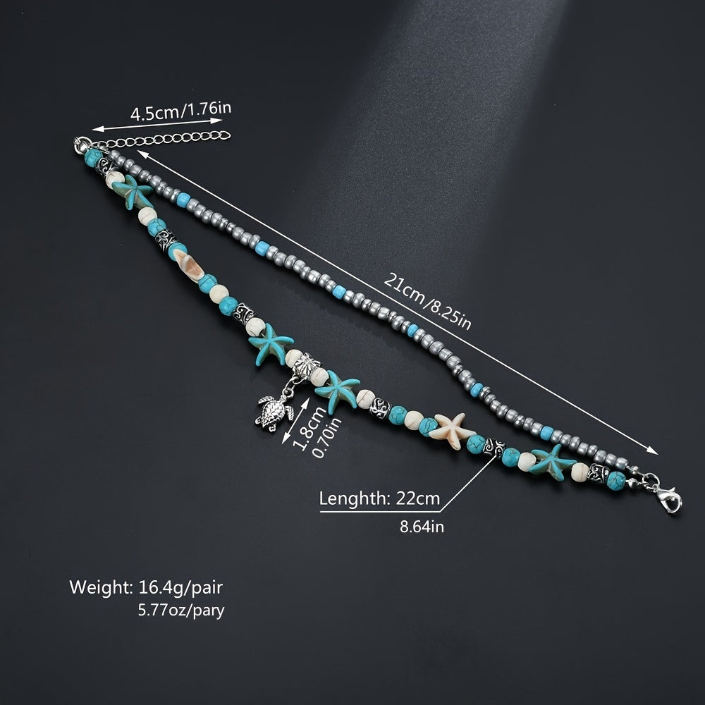 Turtle Shape Pendant Beaded Anklet Shell Foot Jewelry 2 Pcs