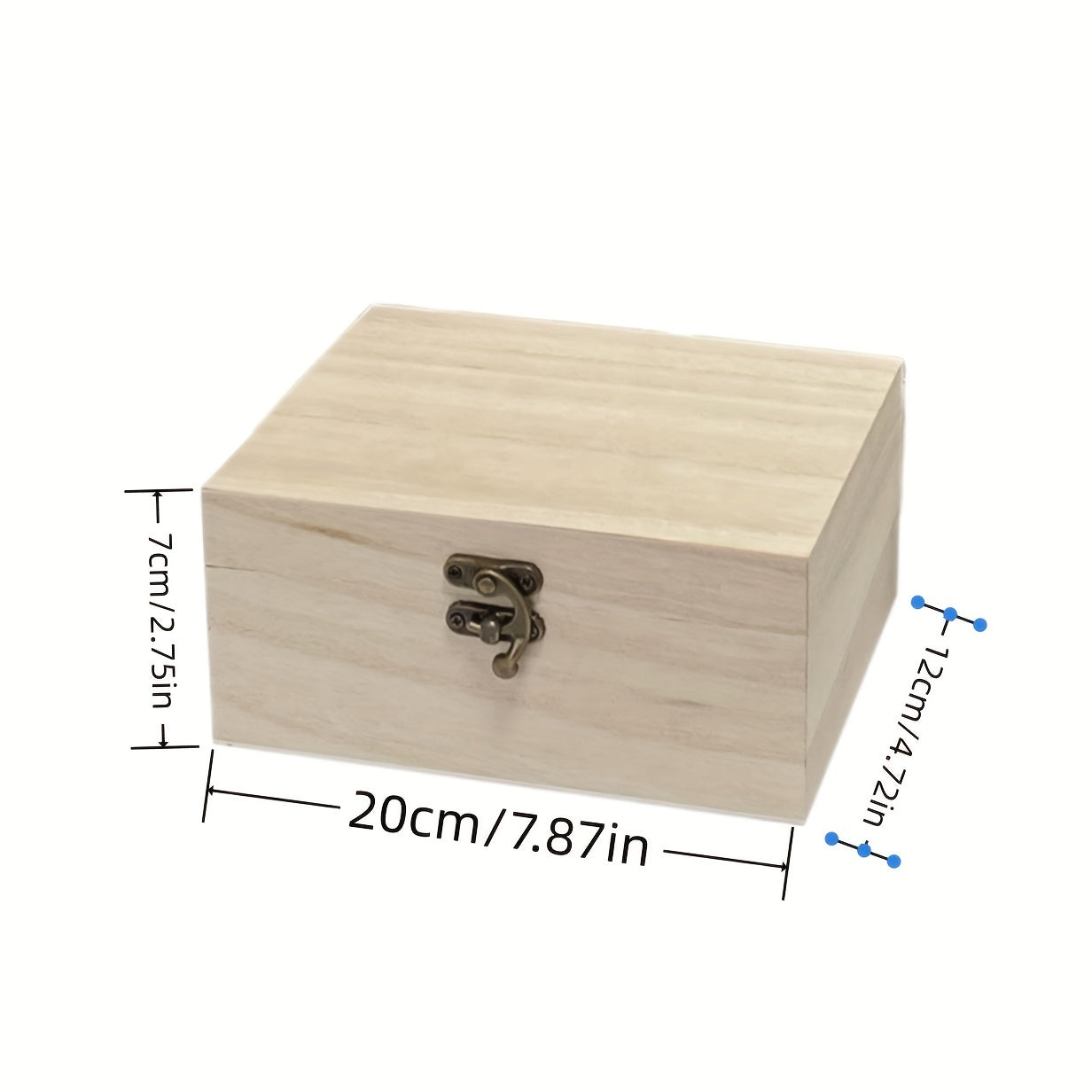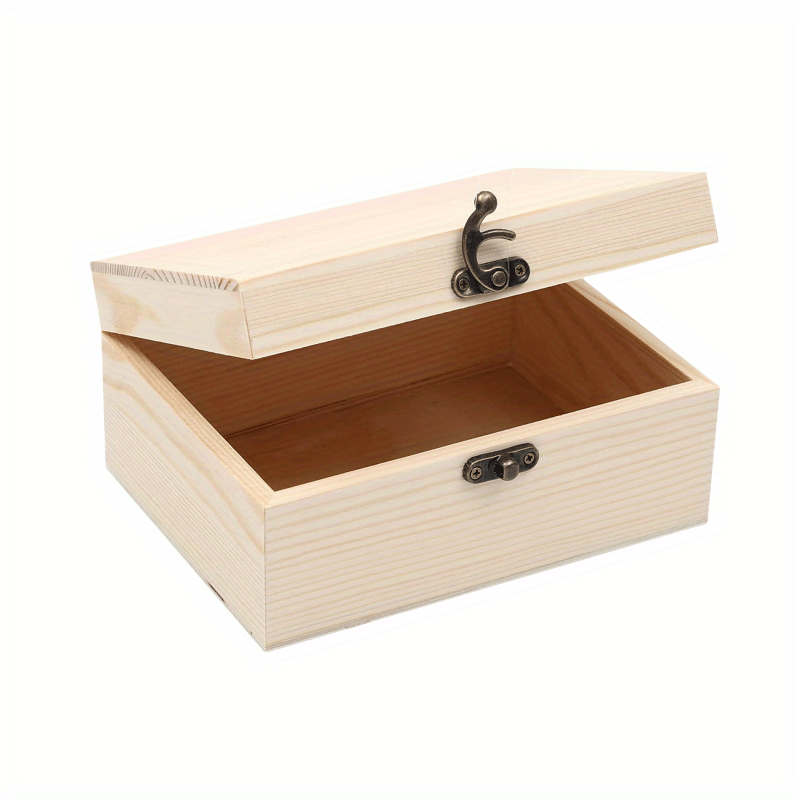 This unfinished wooden box is perfect for crafts, DIY projects, storage, and jewelry. It measures 7.87 x 4.72 x 2.75 inches (19.99cm x 11.99cm x 6cm) and has a hinged lid.