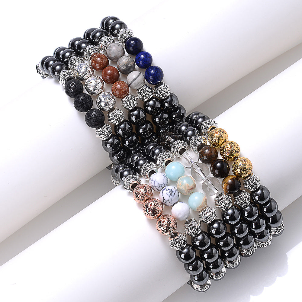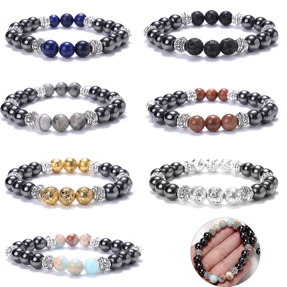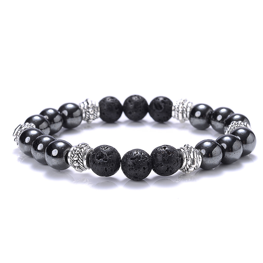 This volcanic stone hematite bracelet features tiger eye beads and is suitable for both men and women. A stylish jewelry piece that adds a touch of elegance to any outfit.