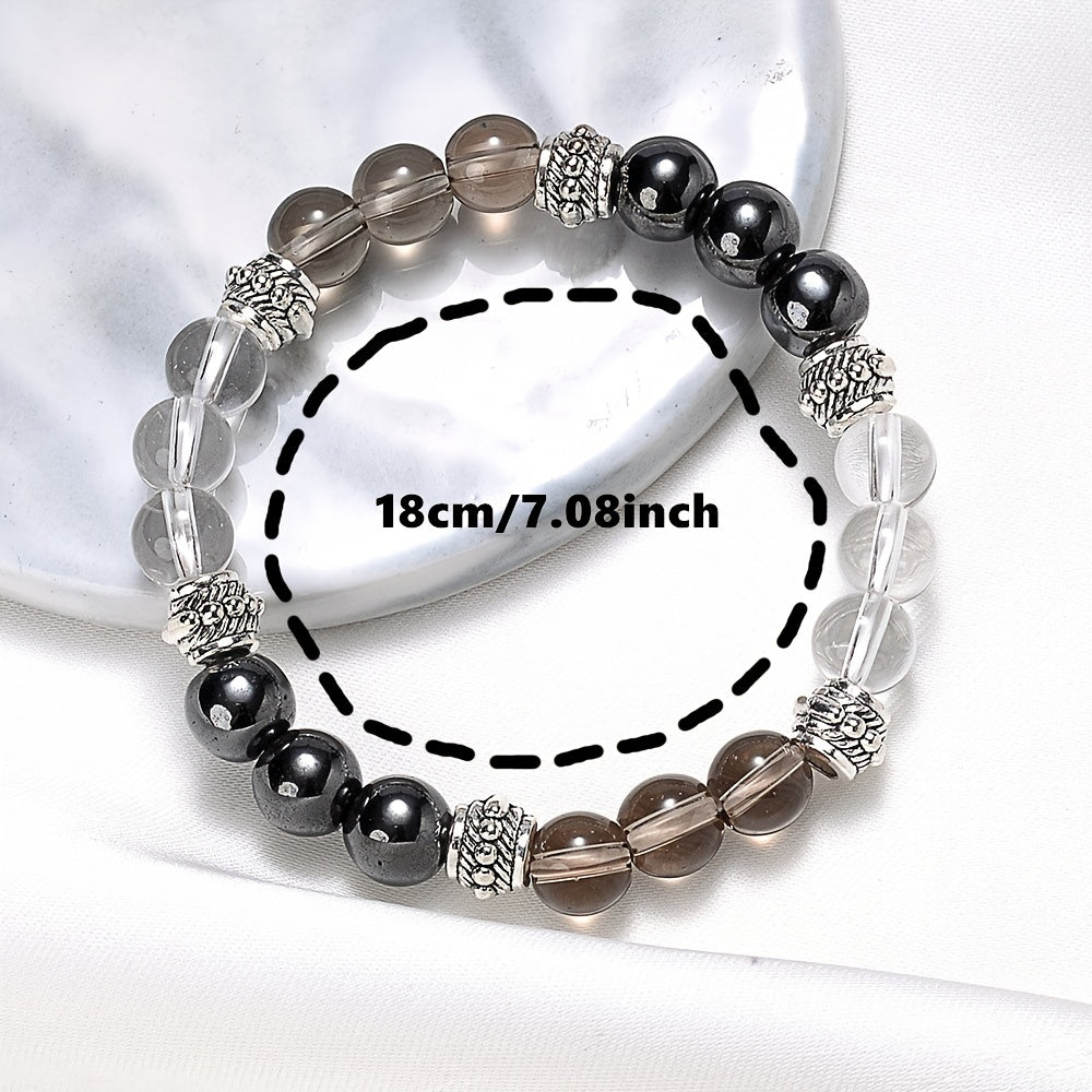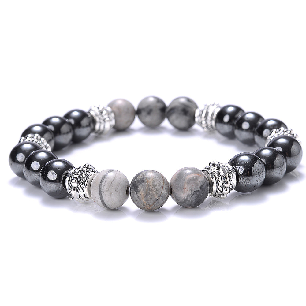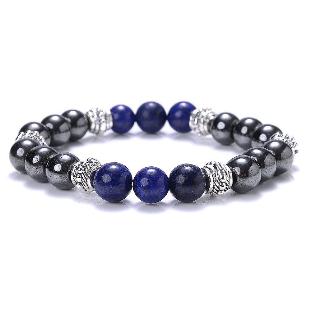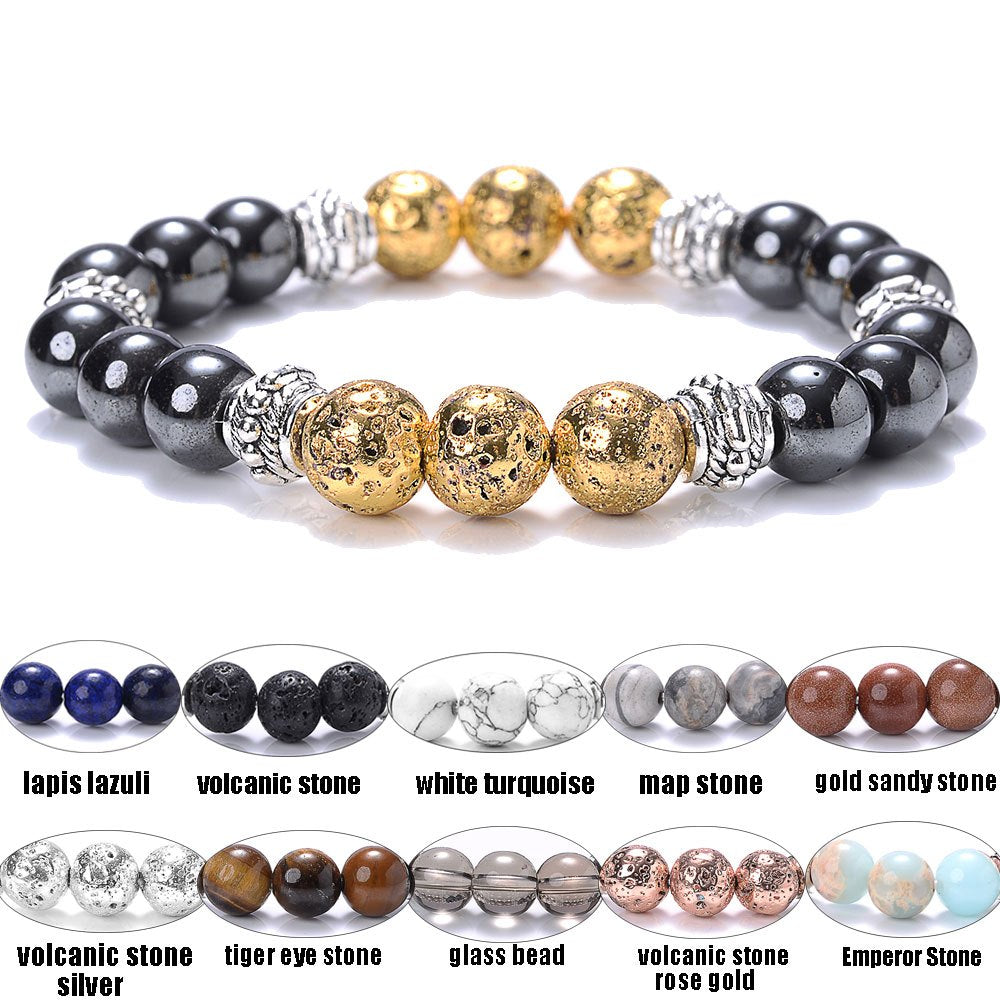 This volcanic stone hematite bracelet features tiger eye beads and is suitable for both men and women. A stylish jewelry piece that adds a touch of elegance to any outfit.