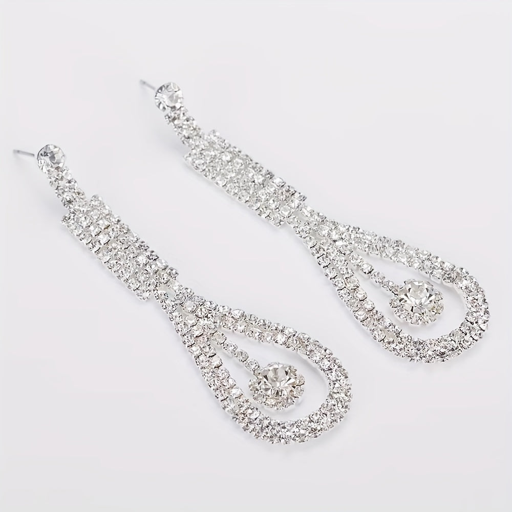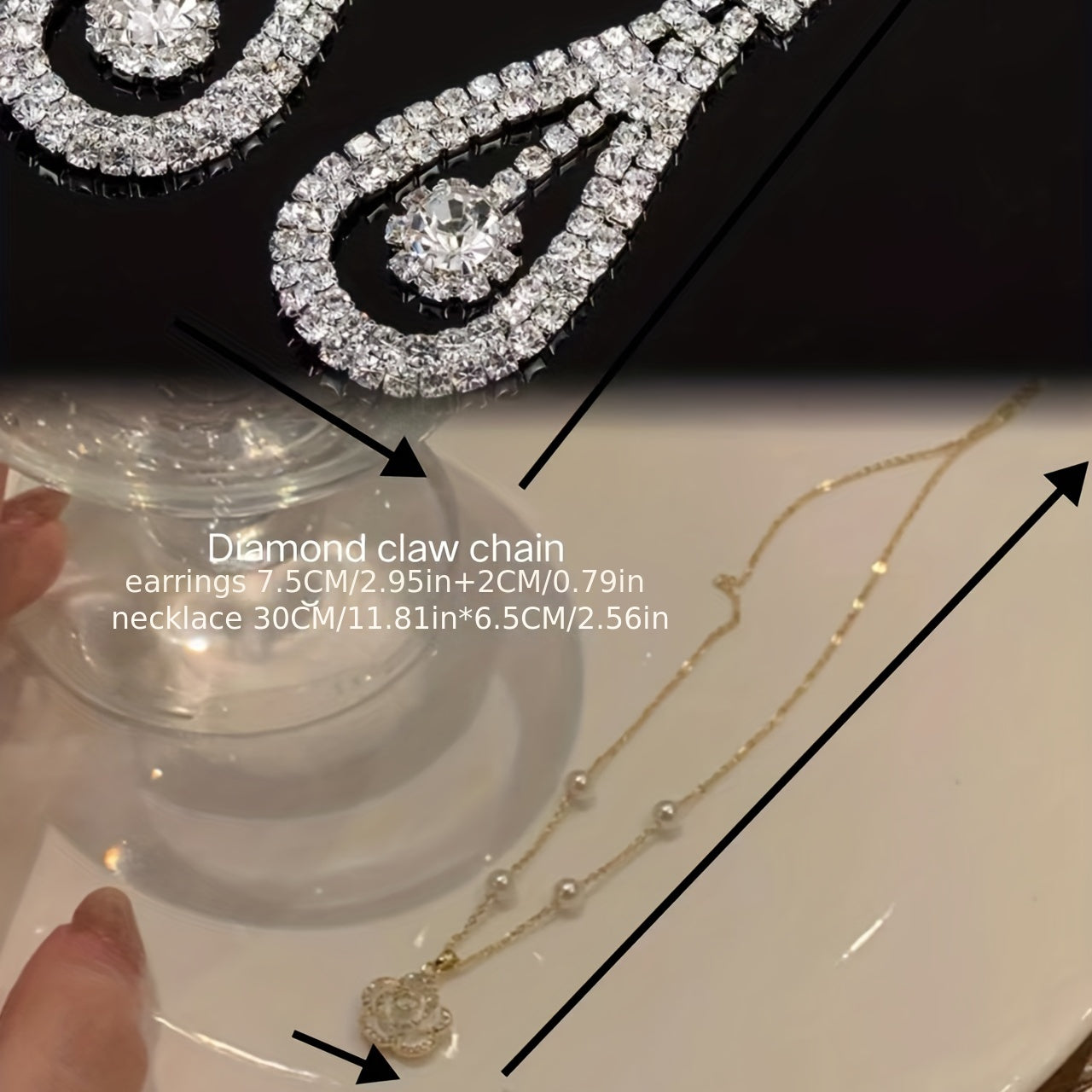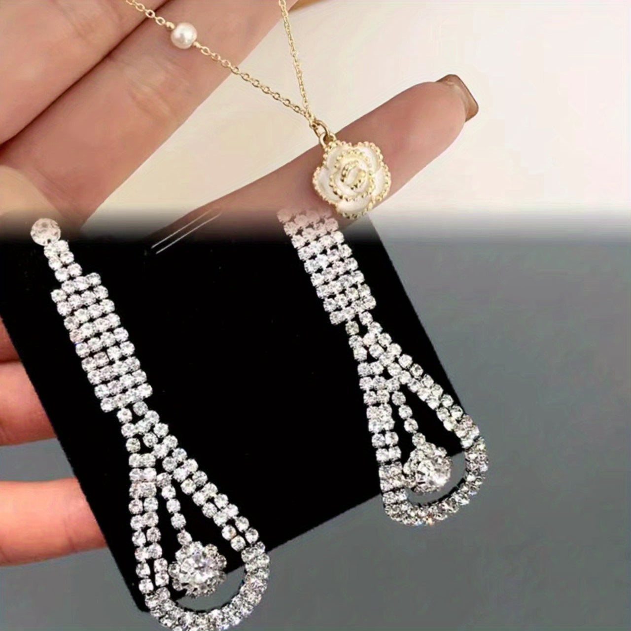 Enhance your party look with this dazzling 2pcs jewelry set featuring water drop cubic zirconia earrings and a camellia pendant necklace. Ideal gift for women and girls.