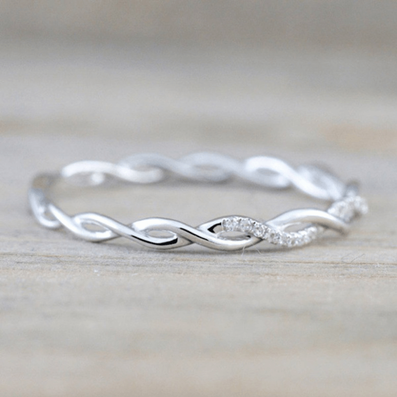 Elegant and stylish wave pattern band ring with zircon inlay, made of high-quality 14K plated material. Perfect for weddings, engagements, and promises.