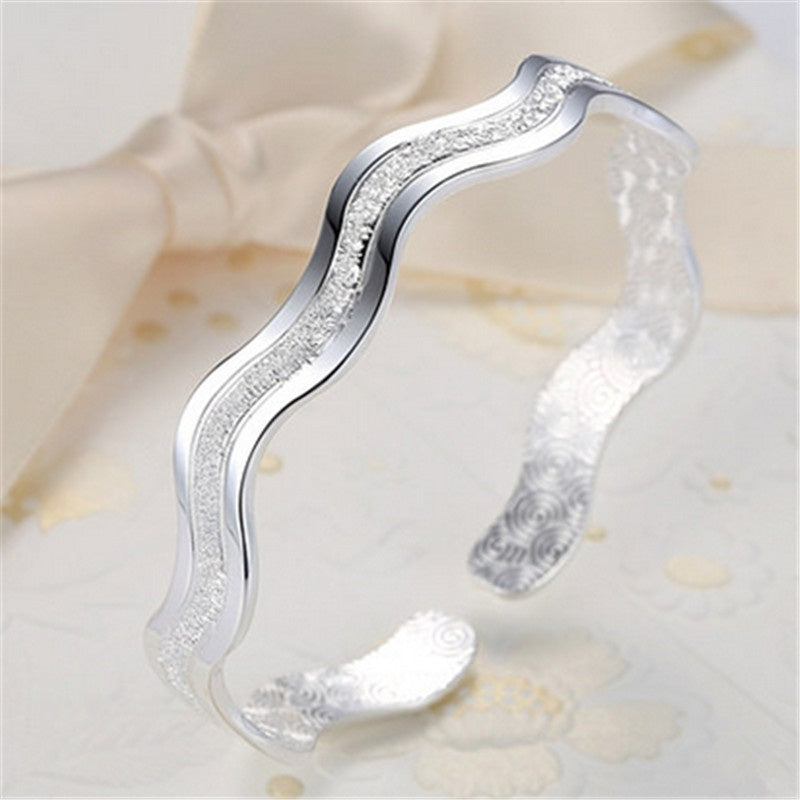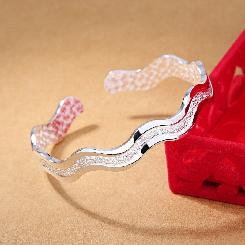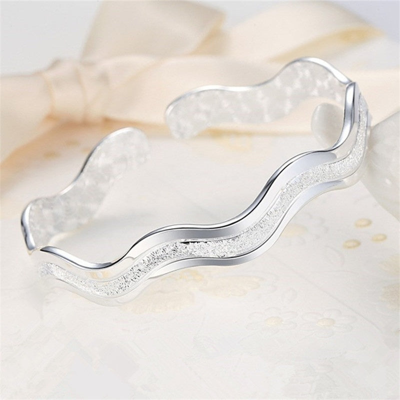 This stylish bracelet features a unique wavy open bangle design with a frosted finish. It is perfect for men who appreciate modern and sophisticated jewelry.