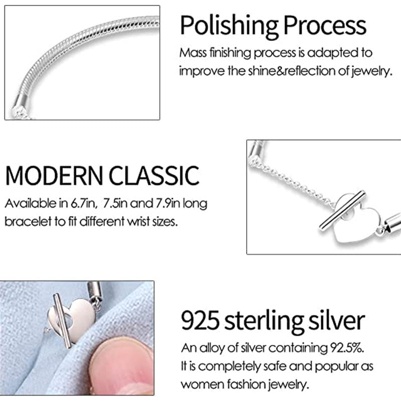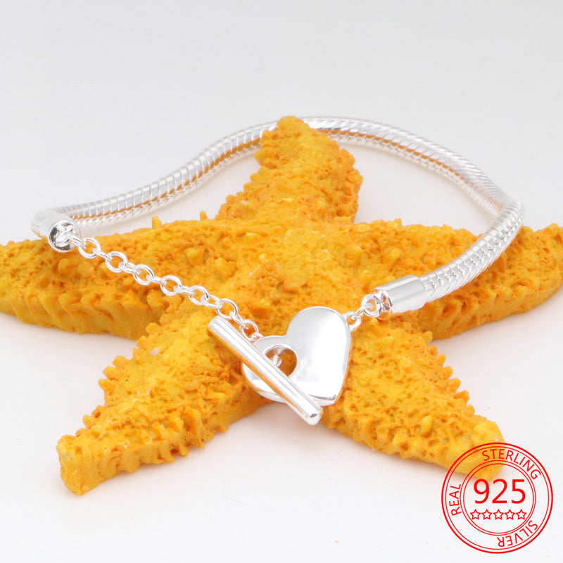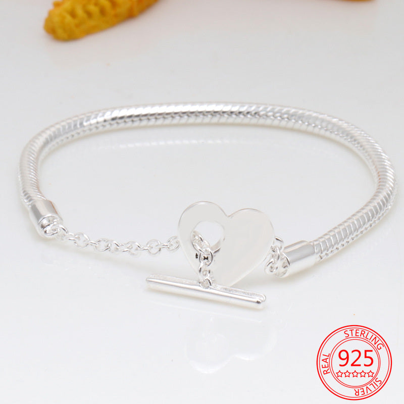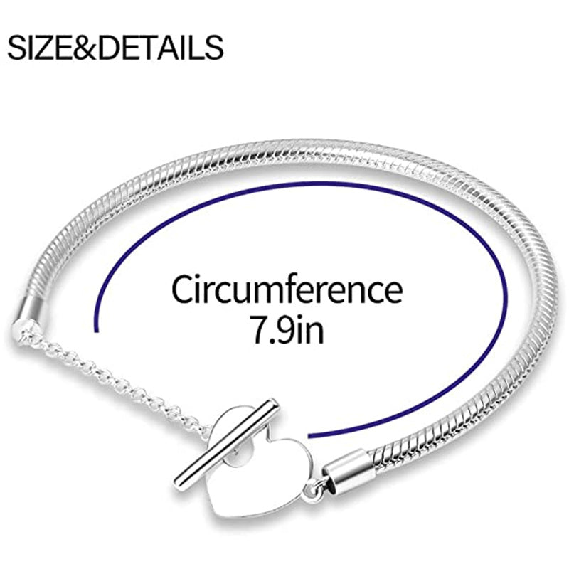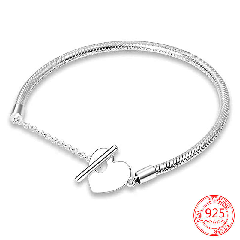 Beautiful snake chain bracelet made of 925 sterling silver, featuring a heart charm. Perfect for any occasion.