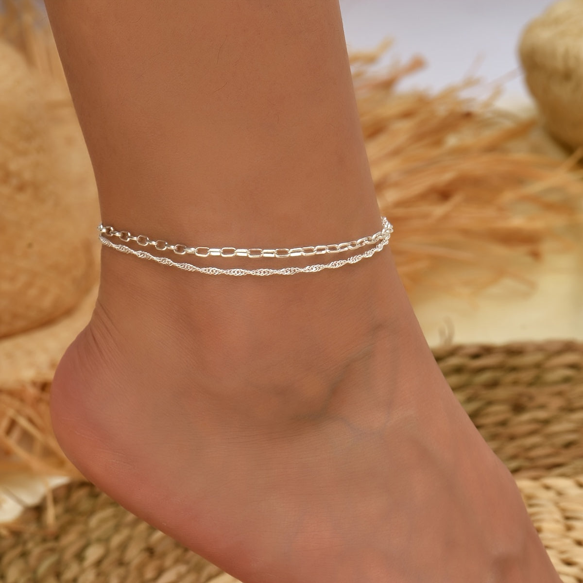 Elevate your ankle style with this double layer chain anklet that adds a touch of elegance to your look. Perfect for everyday wear or special occasions.