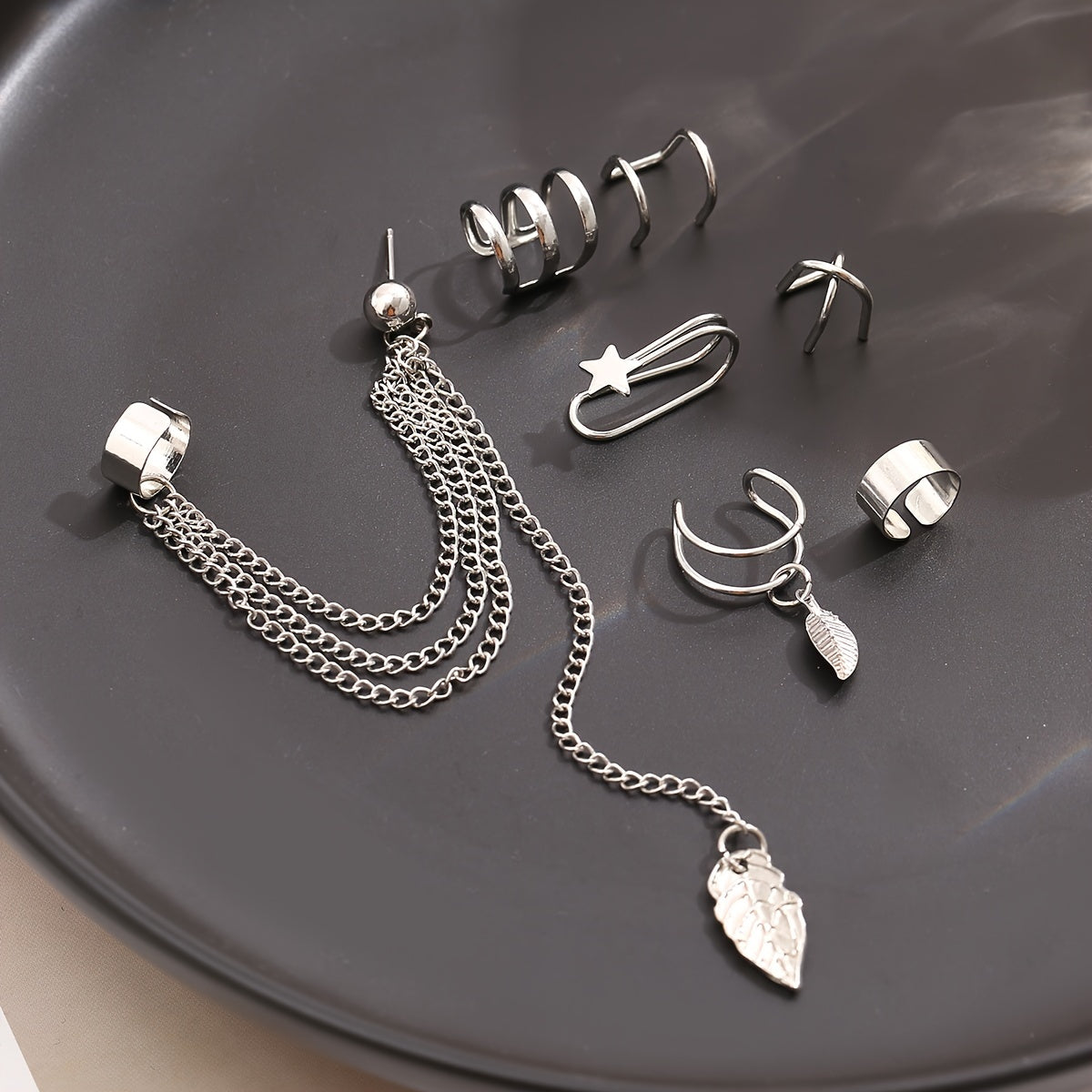 Enhance your style with this 7-piece set of tassel ear cuffs and stud earrings, perfect for adding a touch of elegance to your look.
