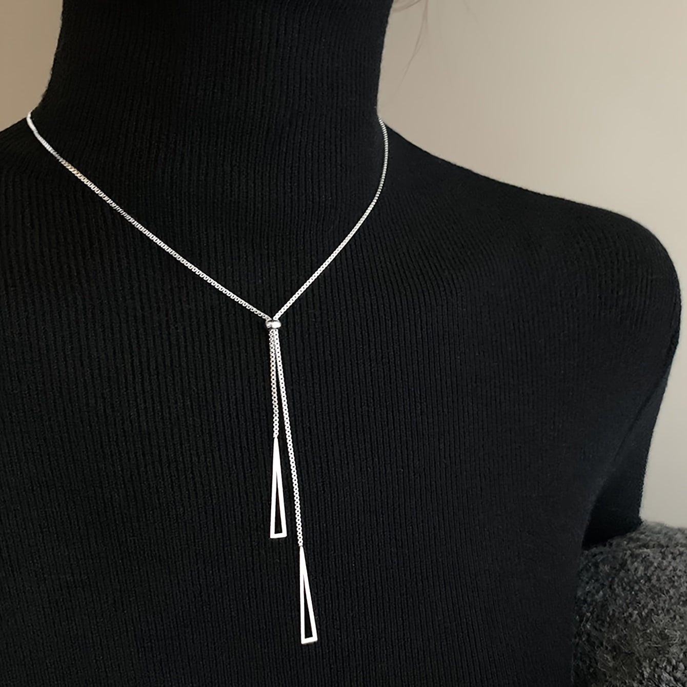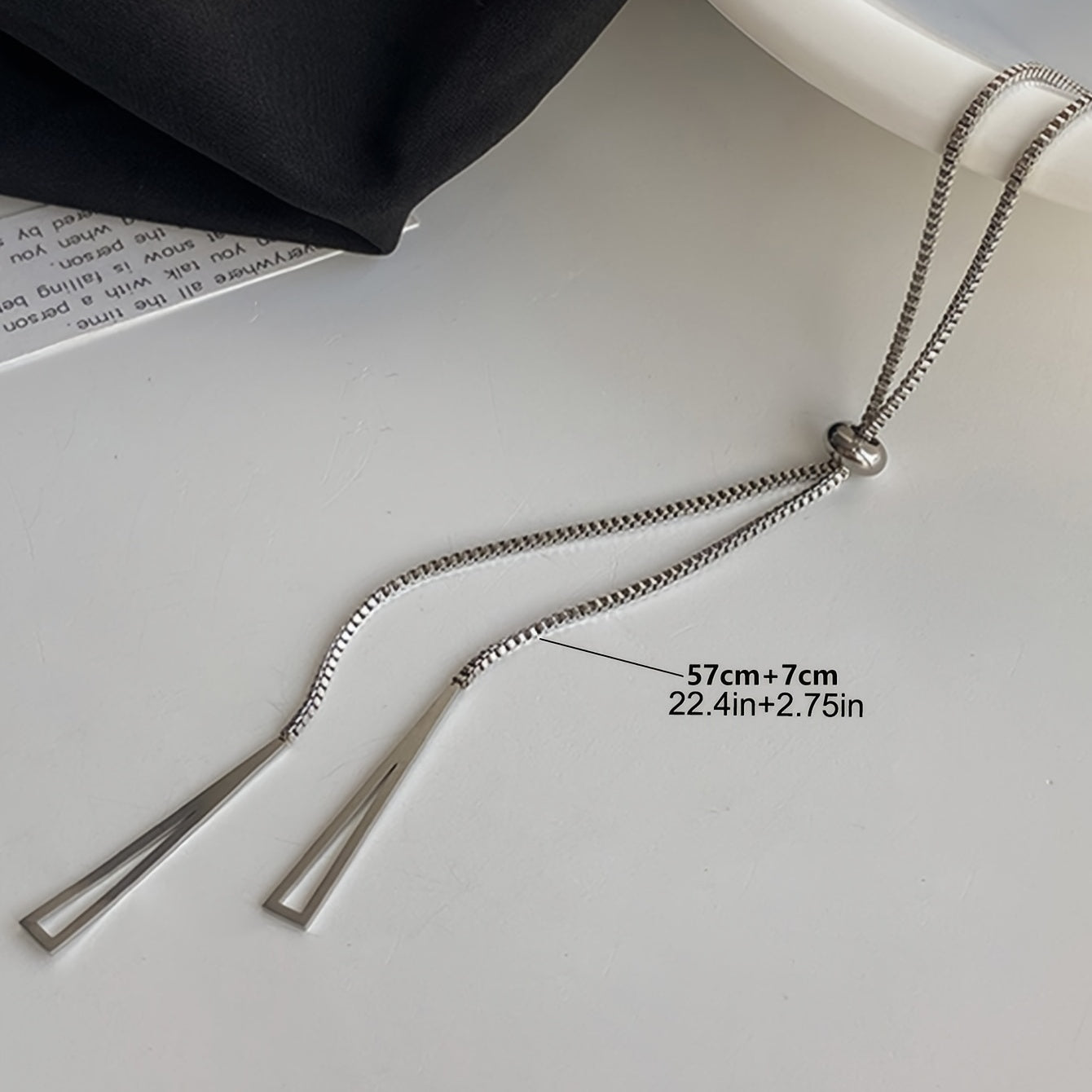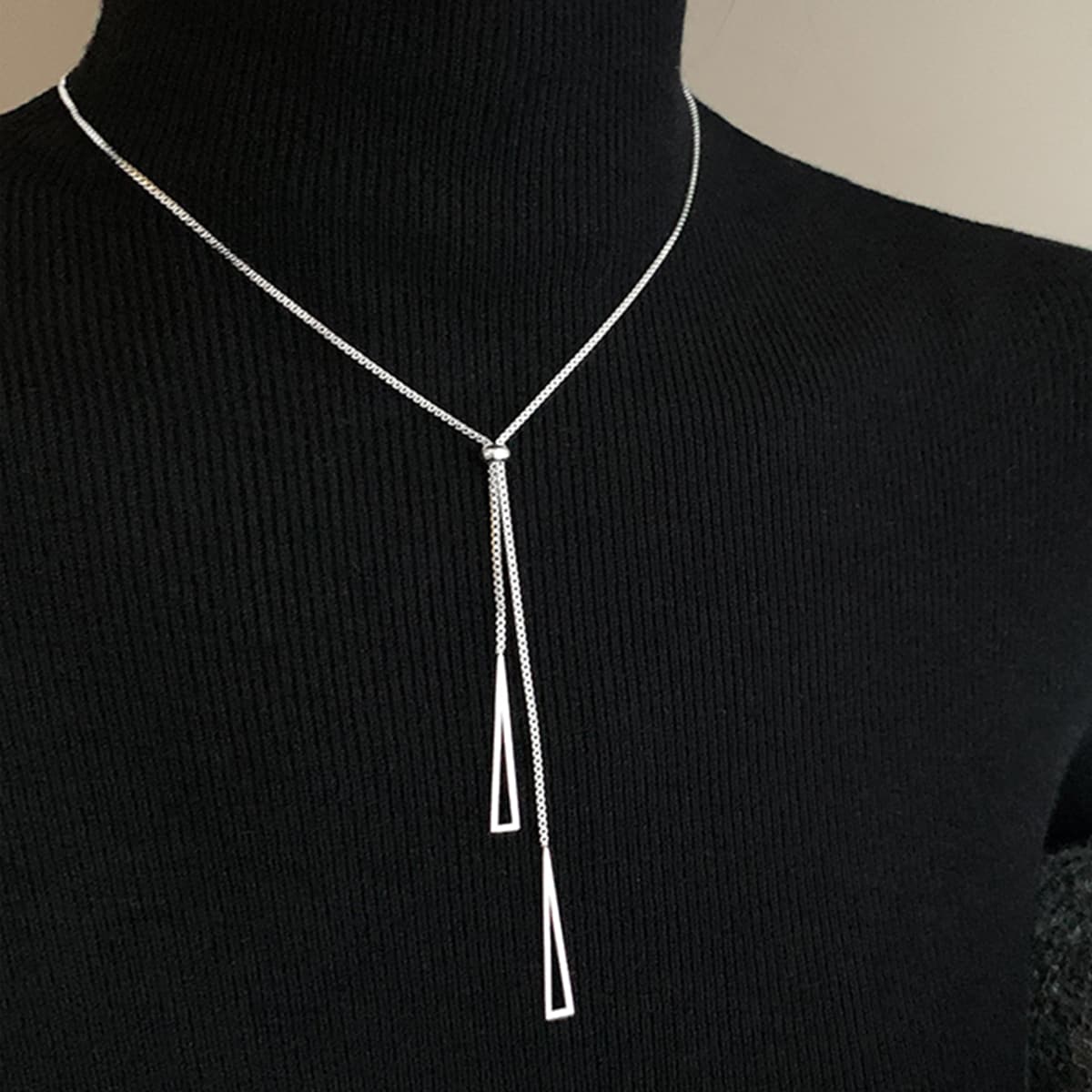 This elegant Y shape necklace is made of hollow copper chain with a silver plated finish, it is adjustable and perfect for parties or special occasions.