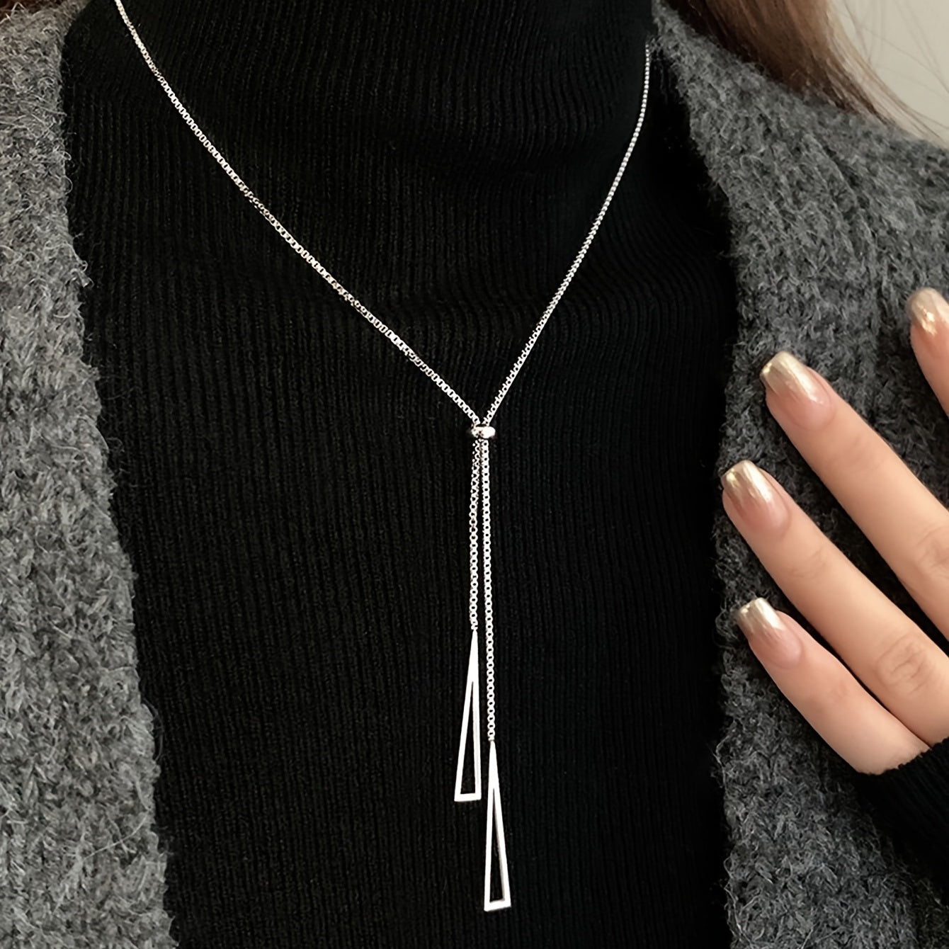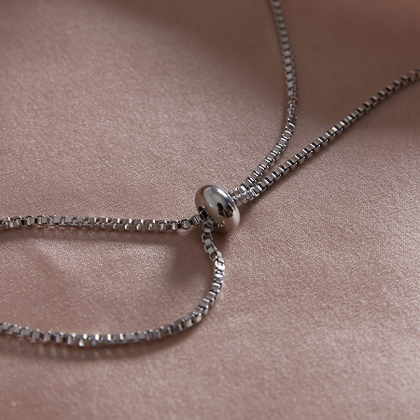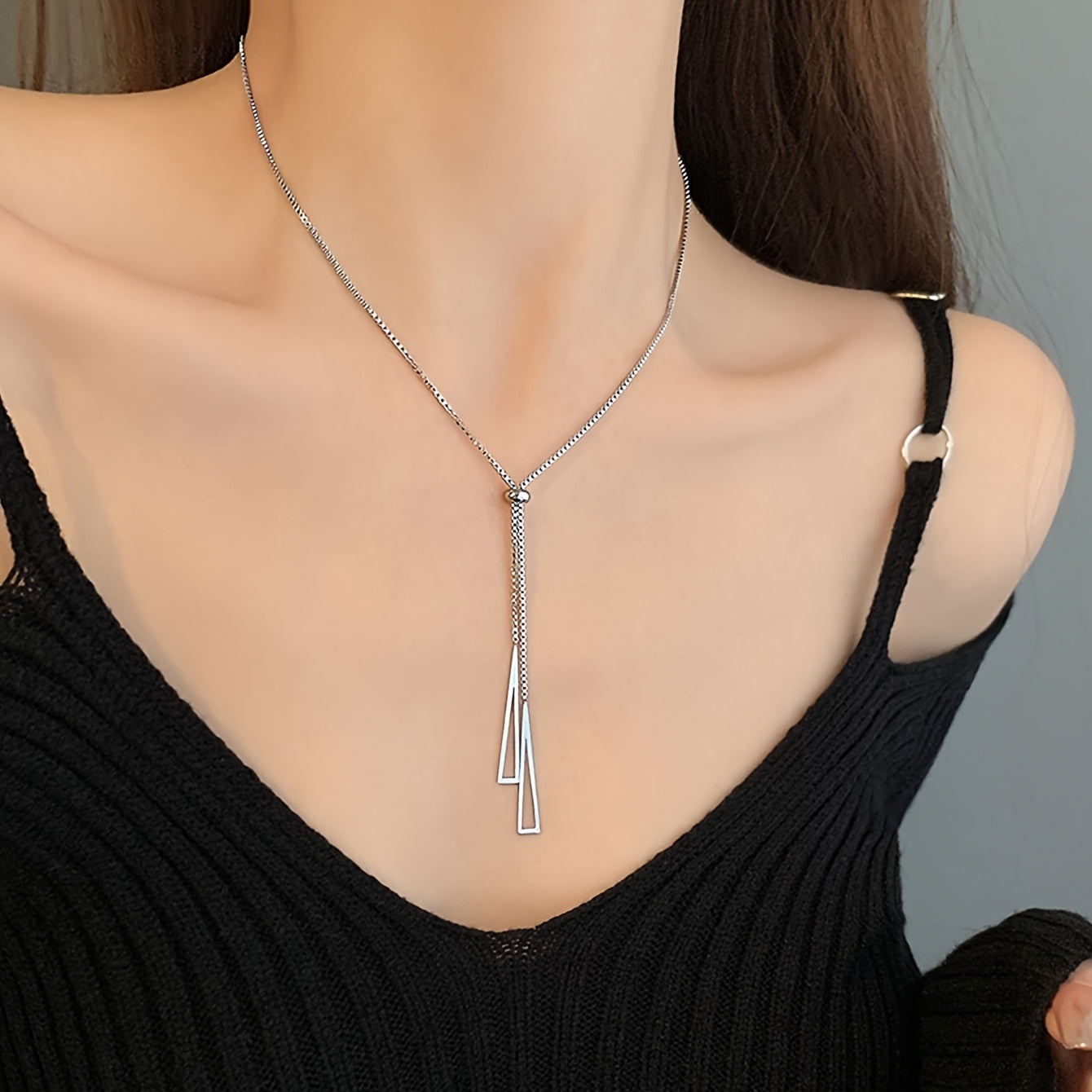 This elegant Y shape necklace is made of hollow copper chain with a silver plated finish, it is adjustable and perfect for parties or special occasions.