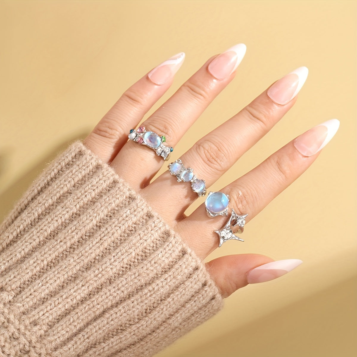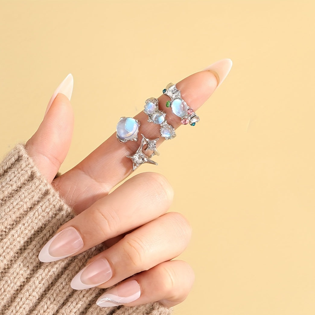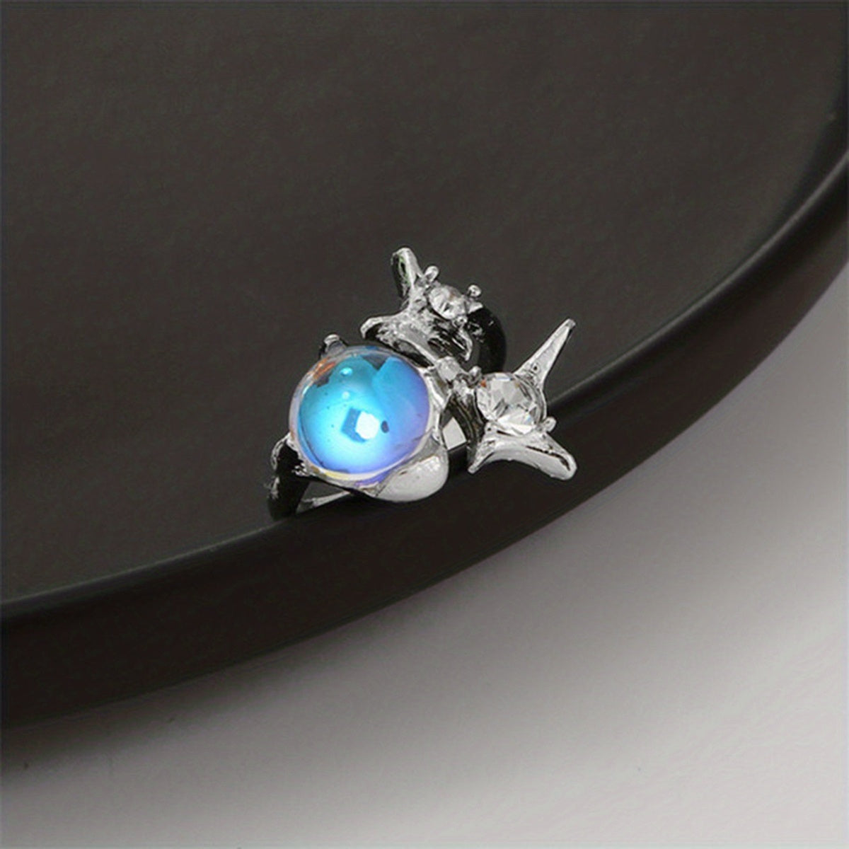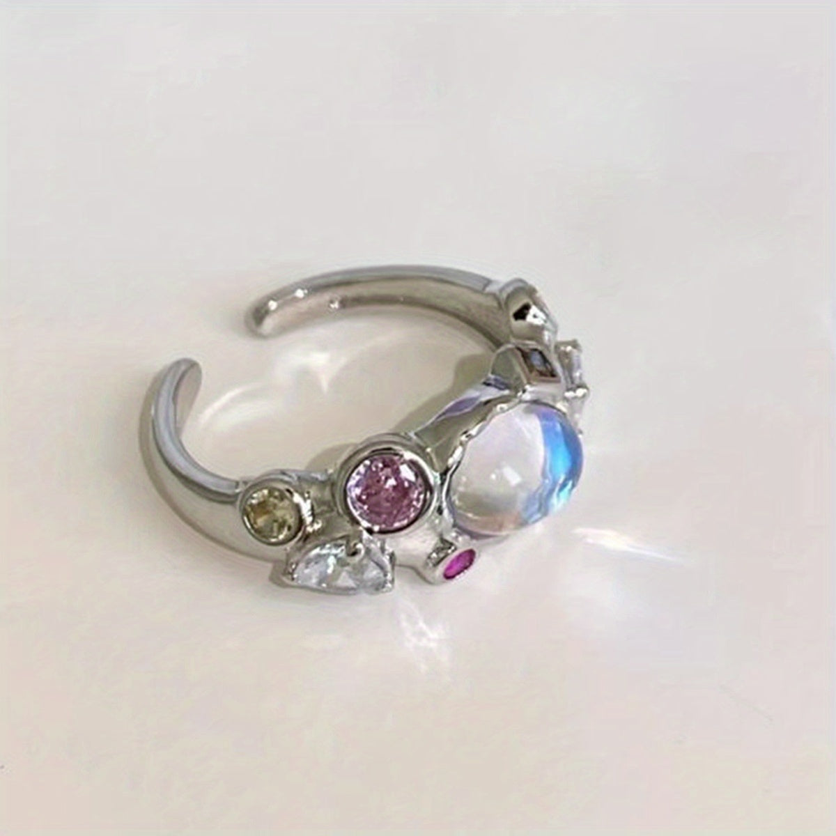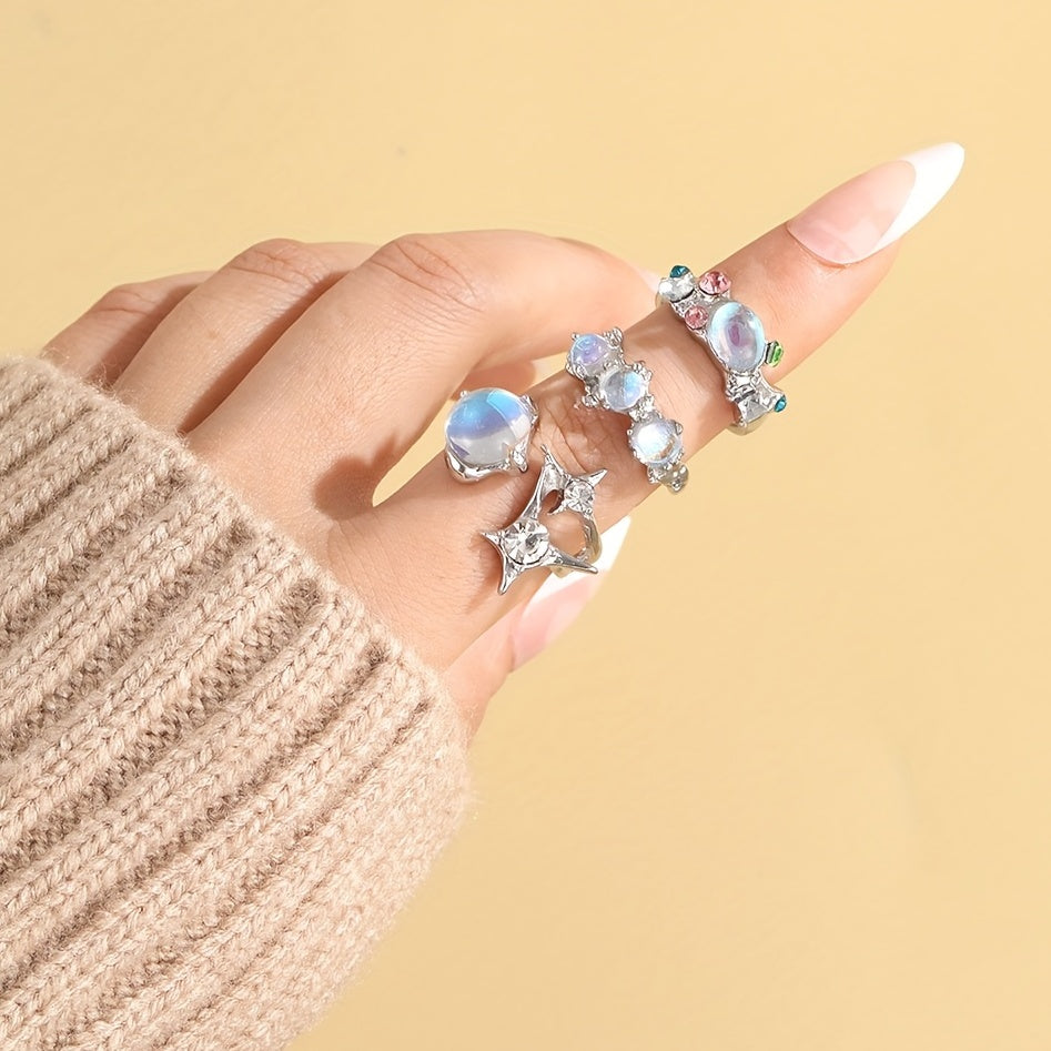 Elevate your style with this moonstone inlaid ring. Perfect for daily wear or parties, this zinc alloy ring adds a touch of charm to any outfit.