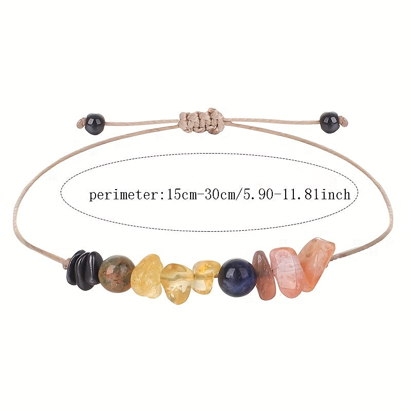 This bracelet features crushed yellow crystal square stone beads on wax thread, perfect for anti-anxiety, yoga, and meditation practices.
