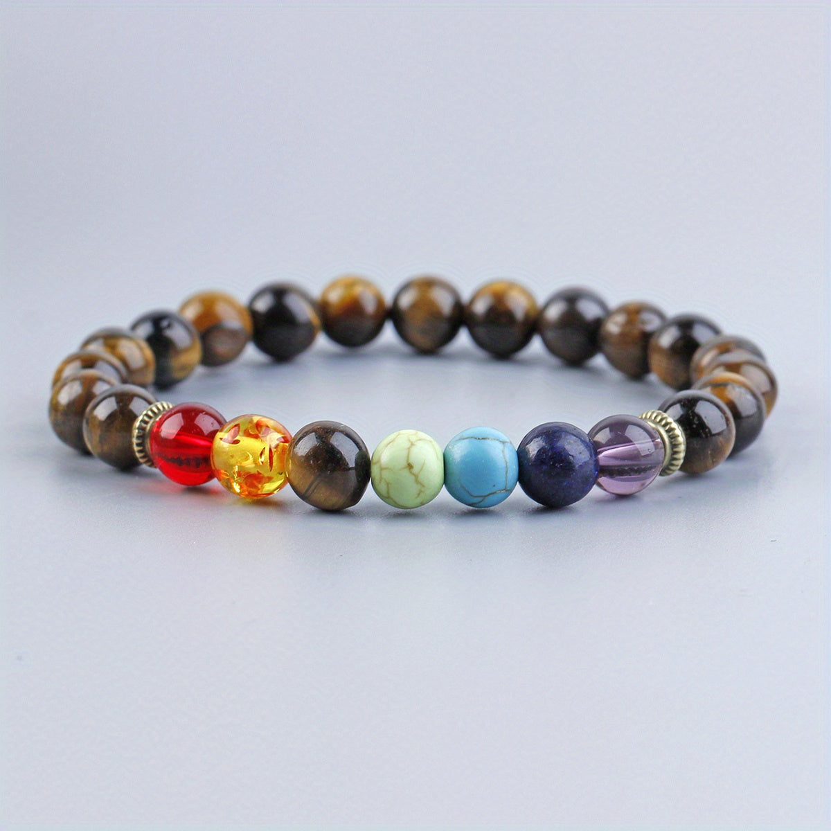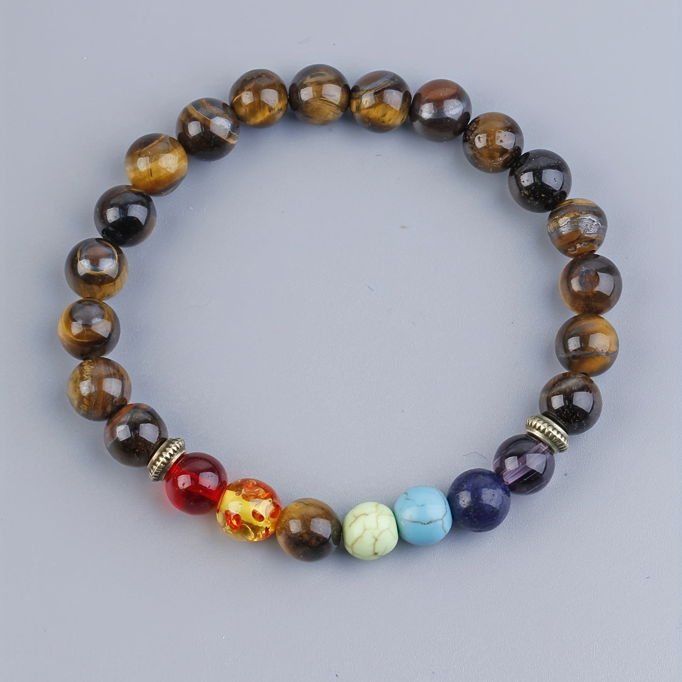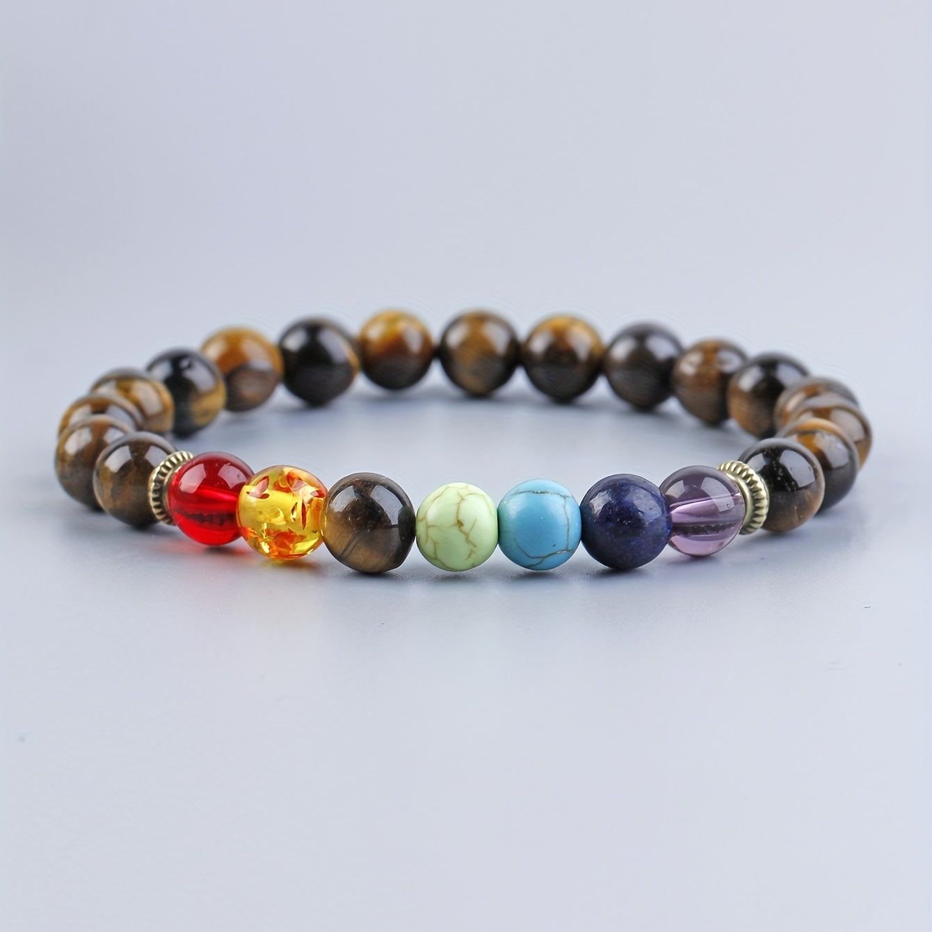 Embrace the energy of the seven colorful chakras with this Yellow Tiger Eye bracelet designed for men.
