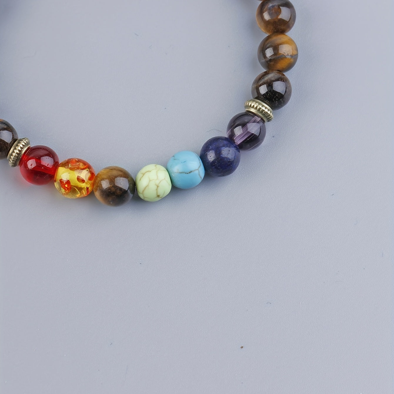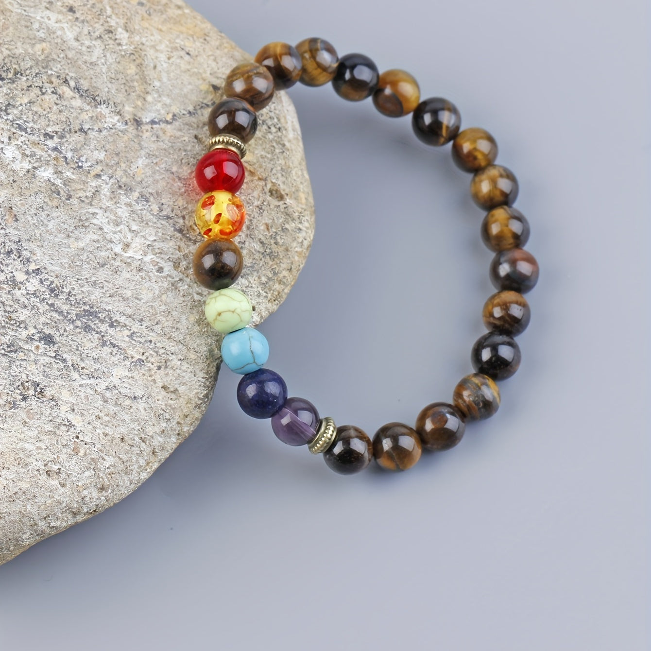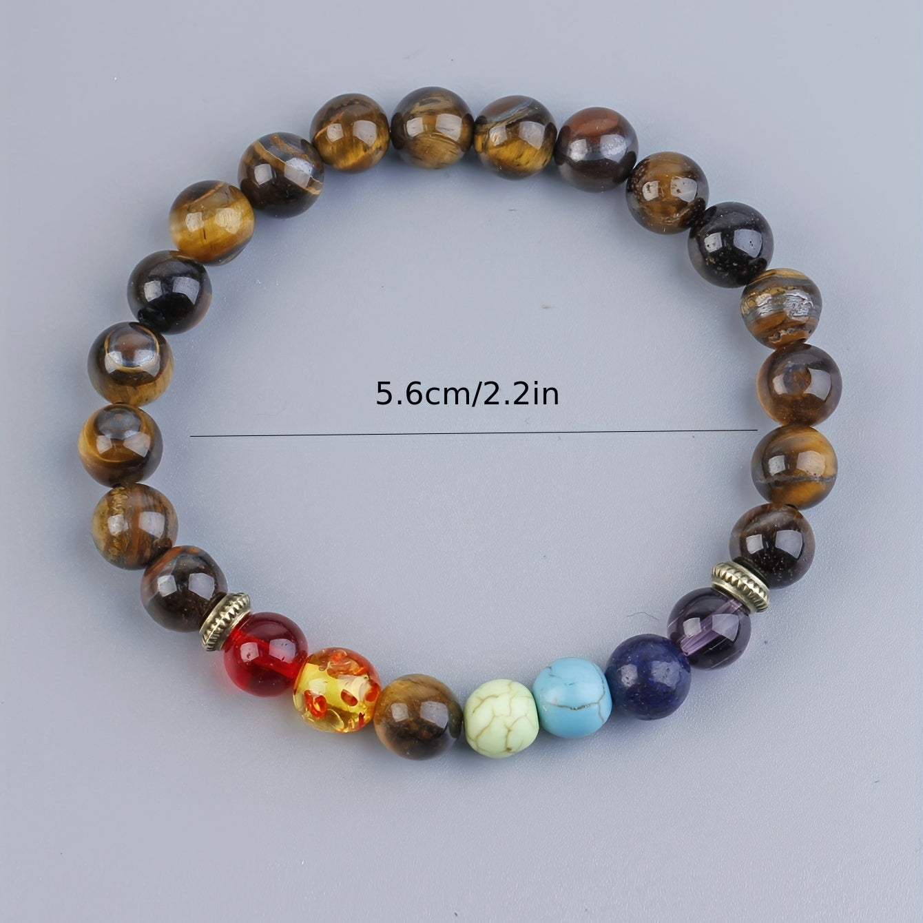 Embrace the energy of the seven colorful chakras with this Yellow Tiger Eye bracelet designed for men.