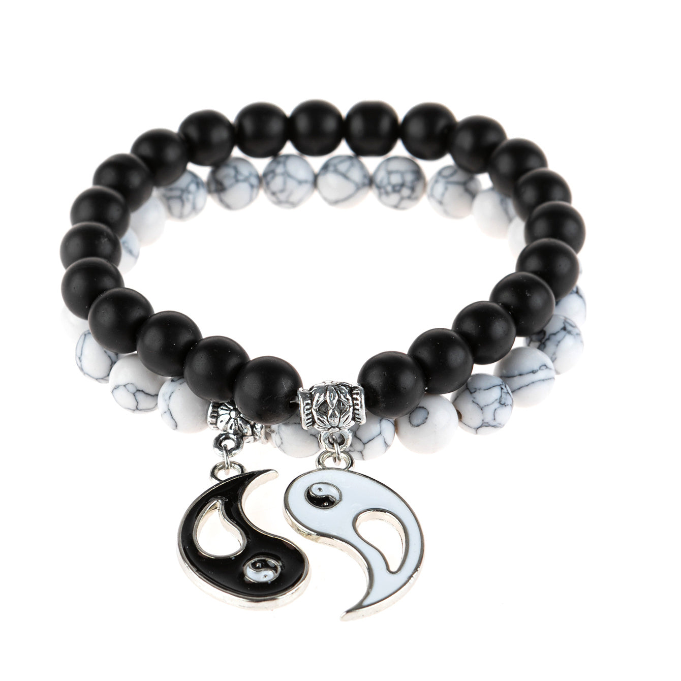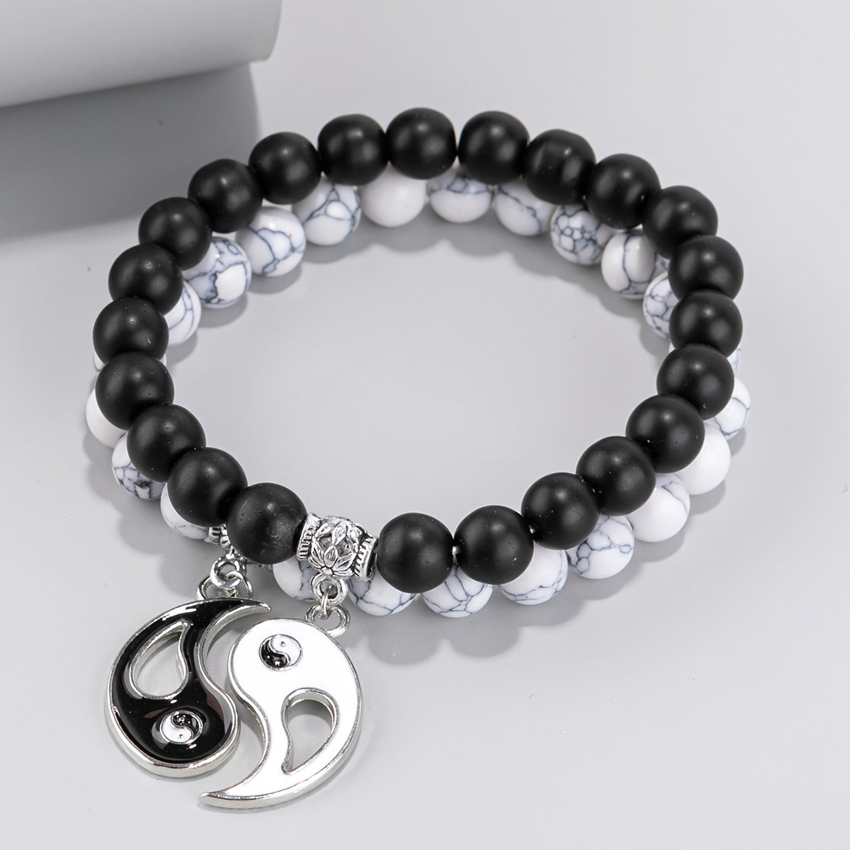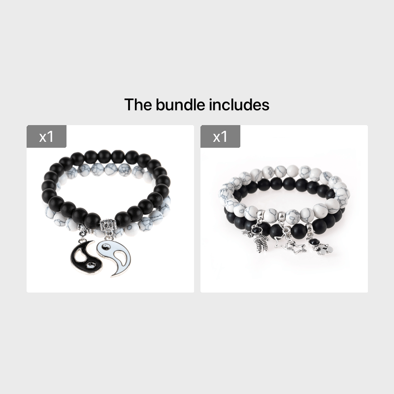 This couple bracelet set features yin yang beaded design with star and astronaut charms. Perfect for matching couples.