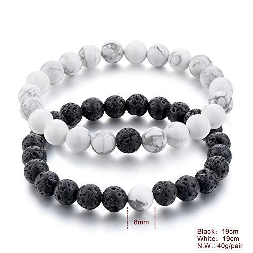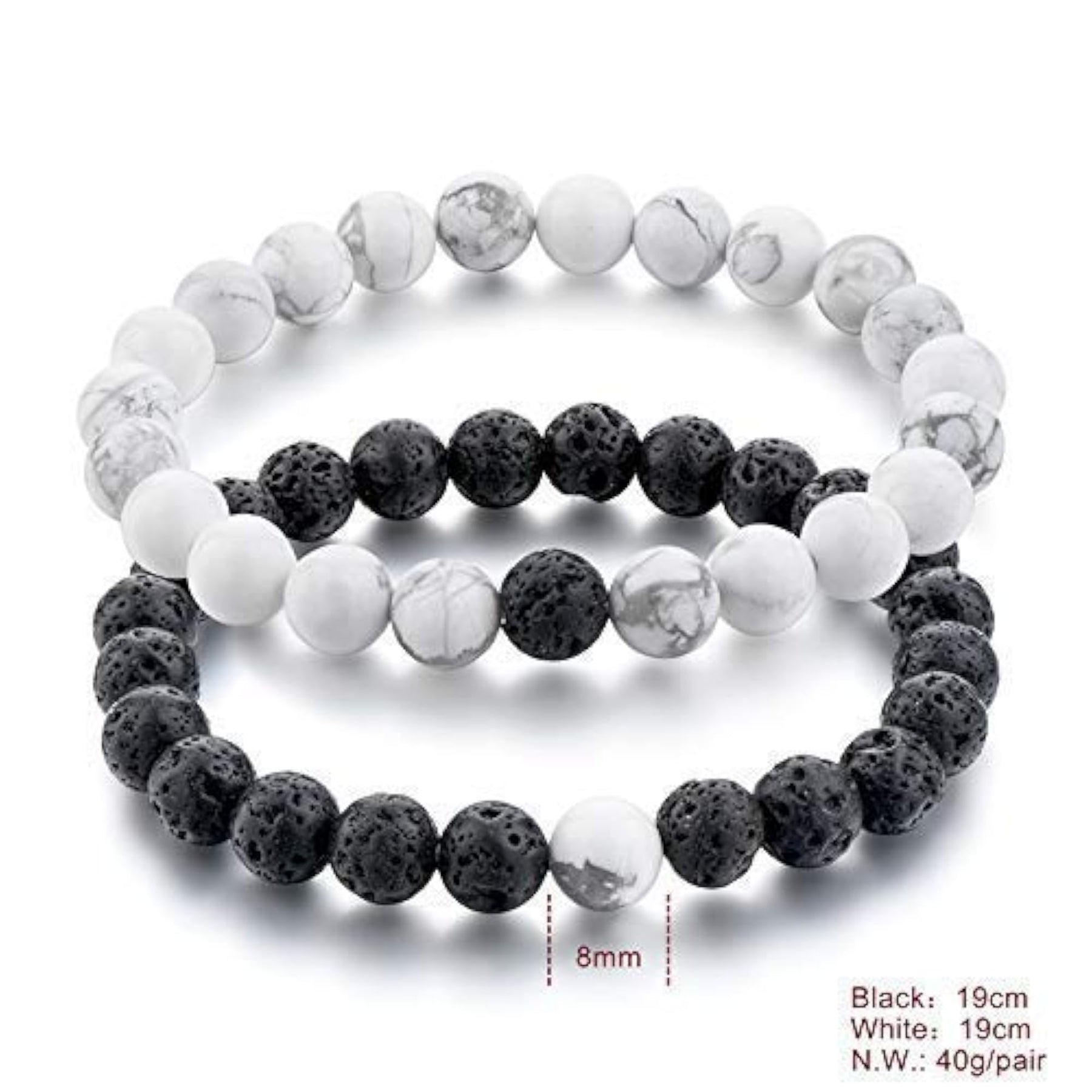Balance your energies with this stunning yin-yang bracelet featuring Howlite and Lava Stones.