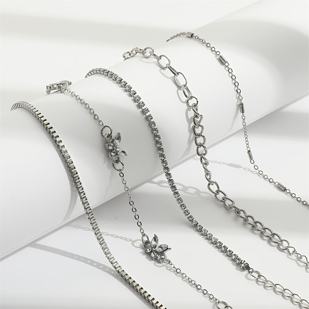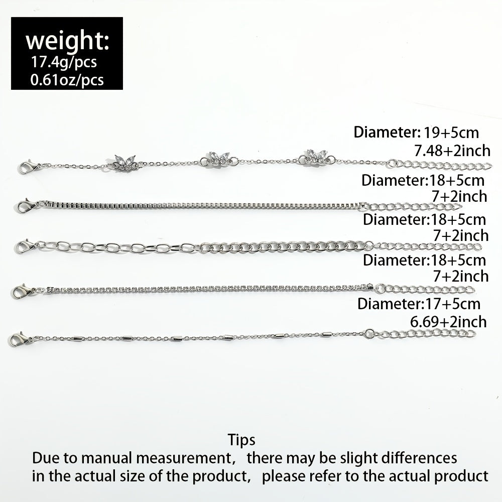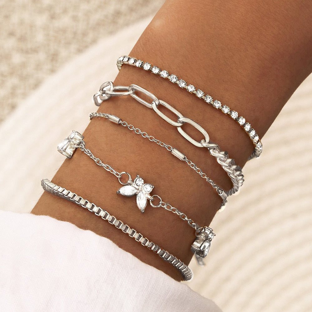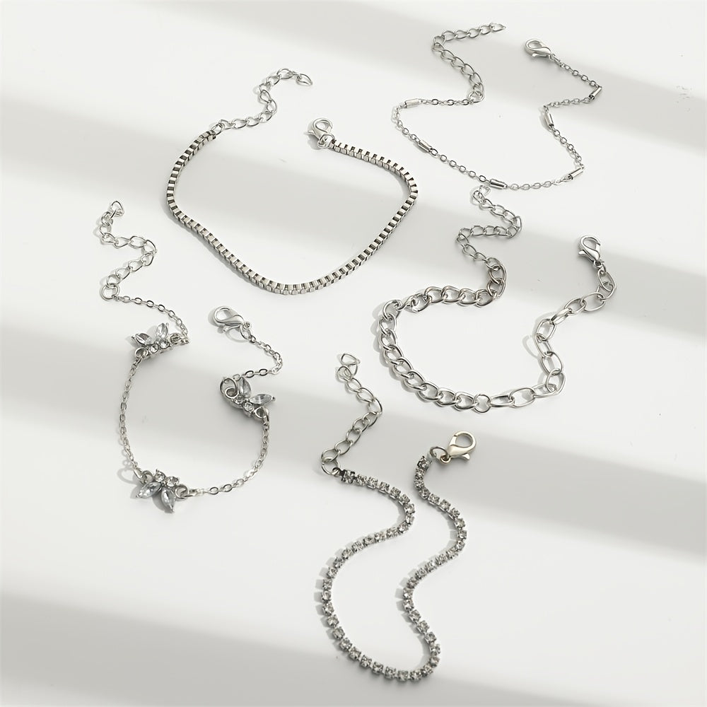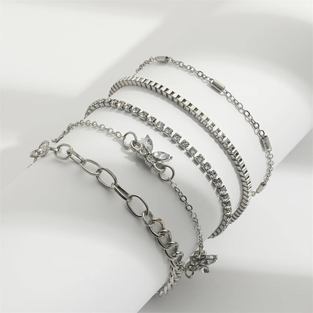 This 5-piece bracelet set features elegant zircon chain butterfly designs, perfect for adding a touch of sparkle to your outfit.