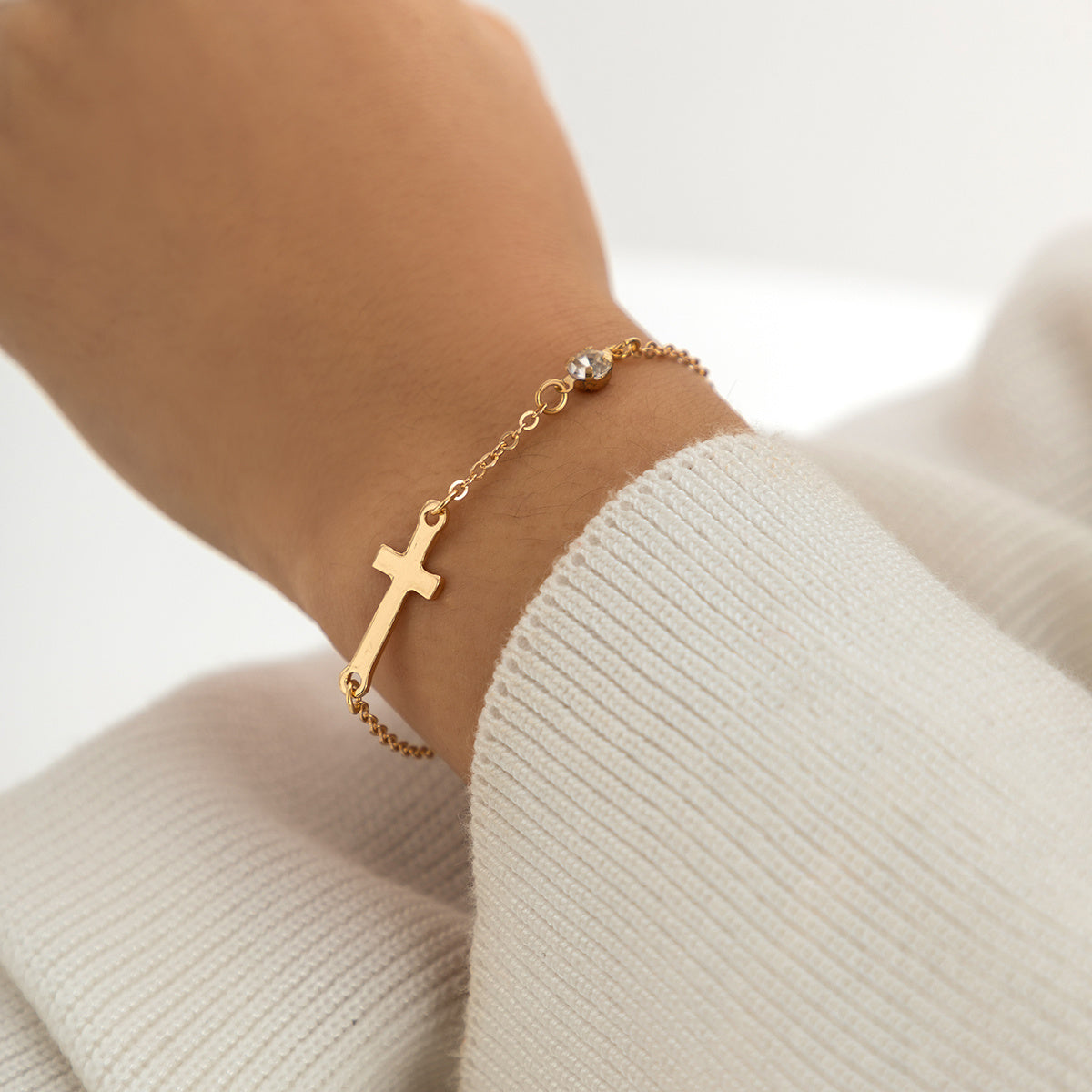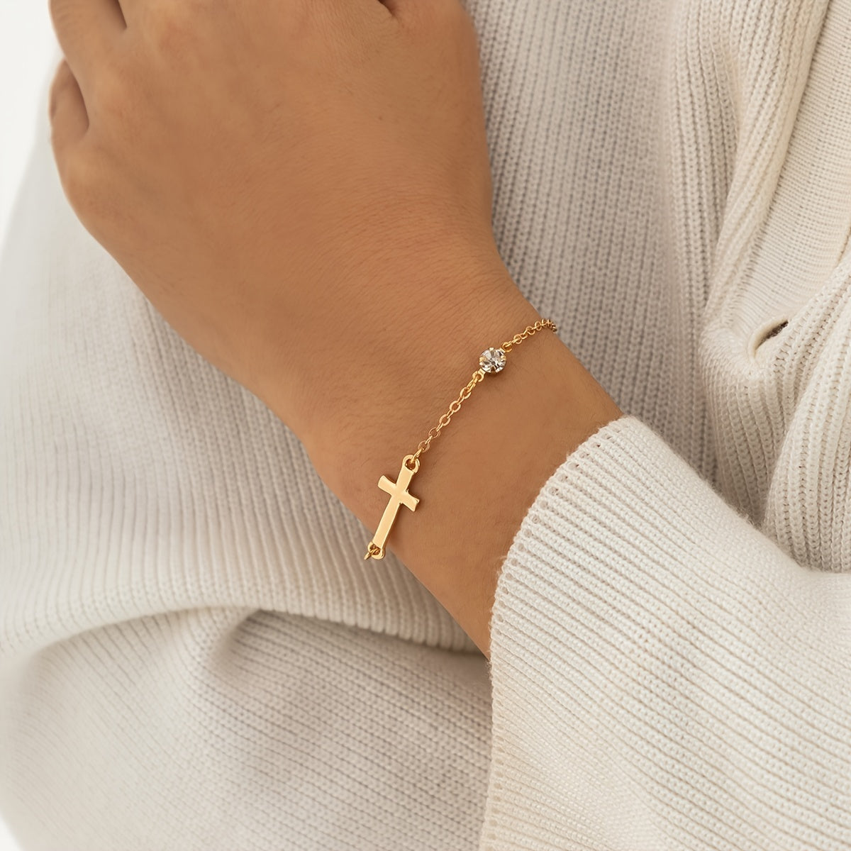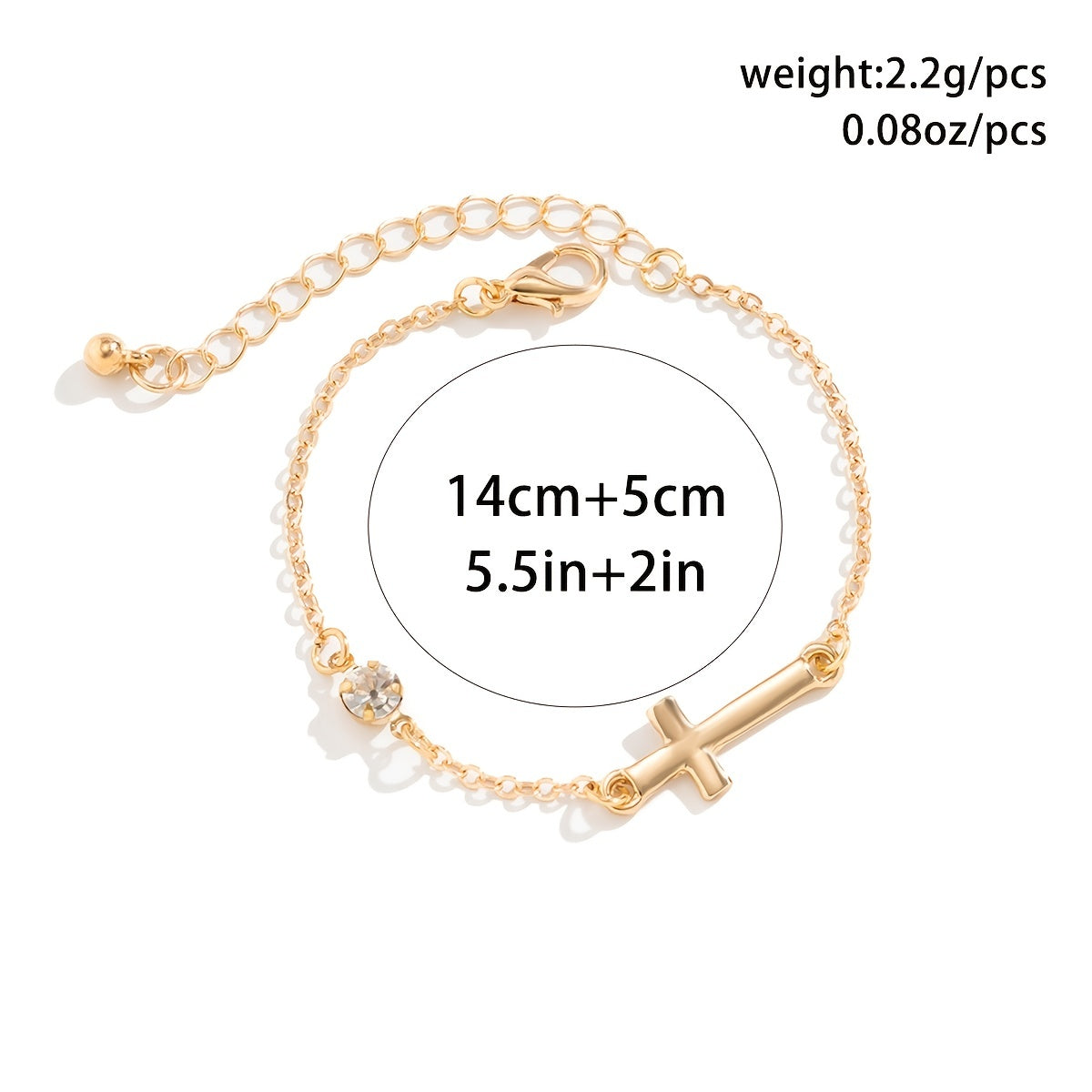 This elegant cross chain bracelet features zircon inlays and is perfect for women and girls. The adjustable design ensures a comfortable fit.