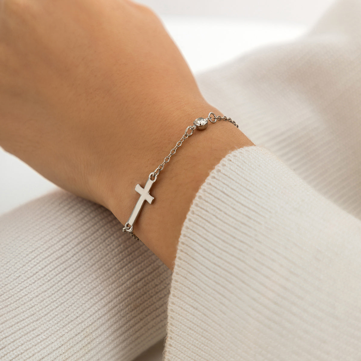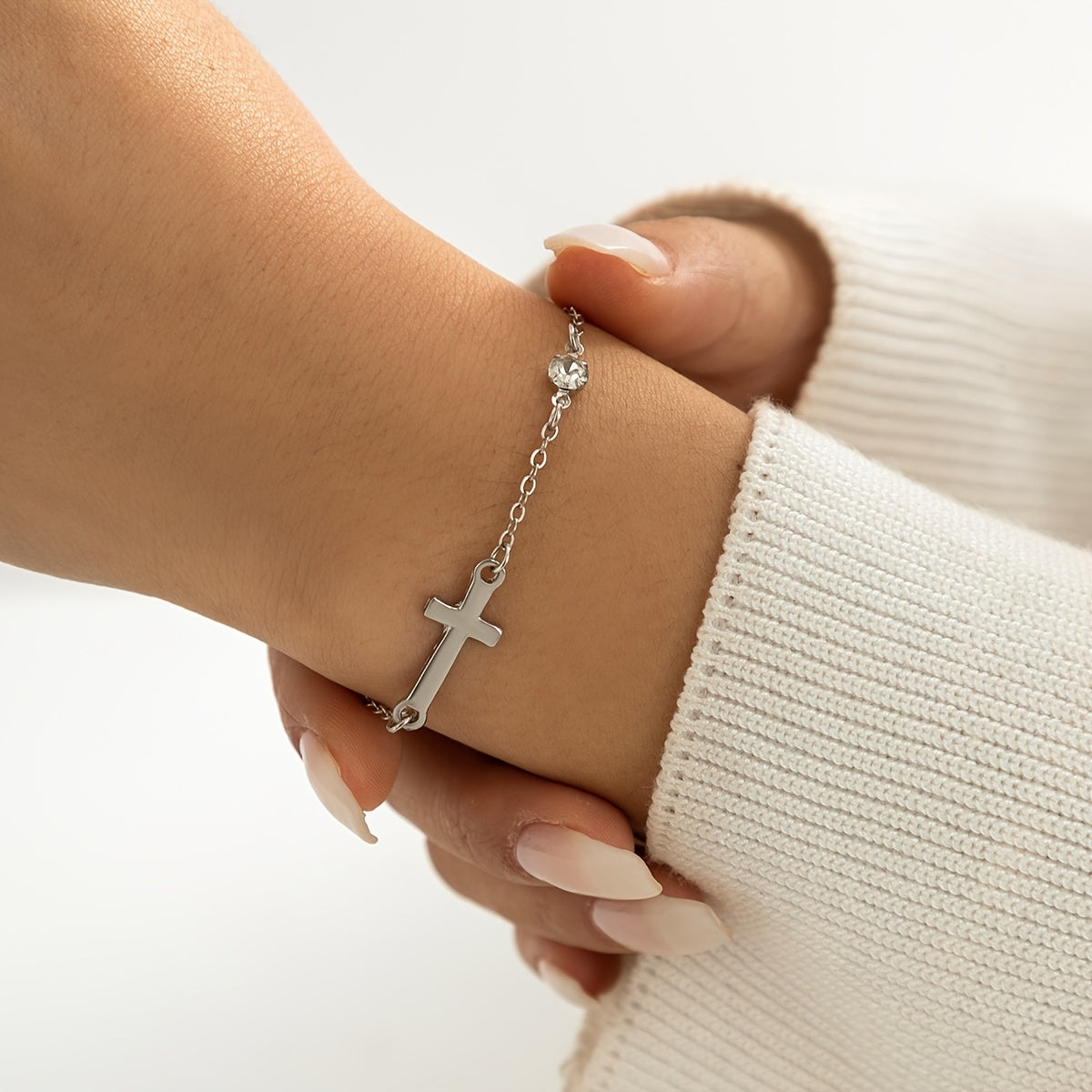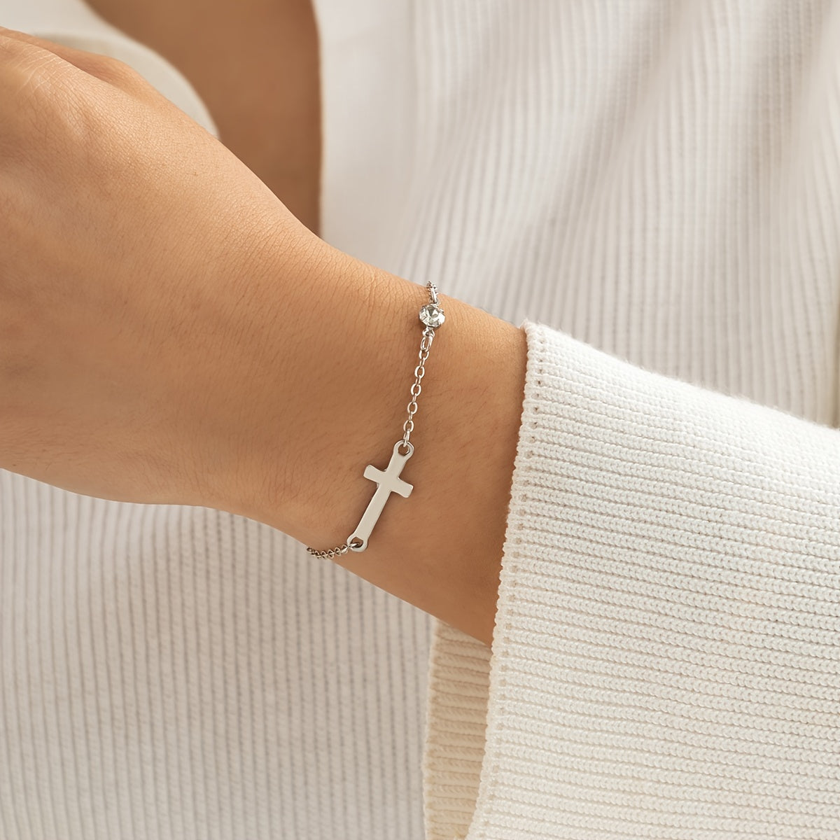 This elegant cross chain bracelet features zircon inlays and is perfect for women and girls. The adjustable design ensures a comfortable fit.