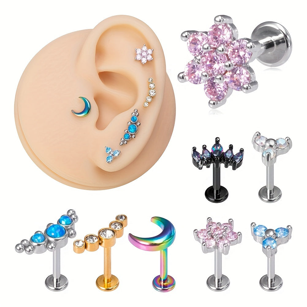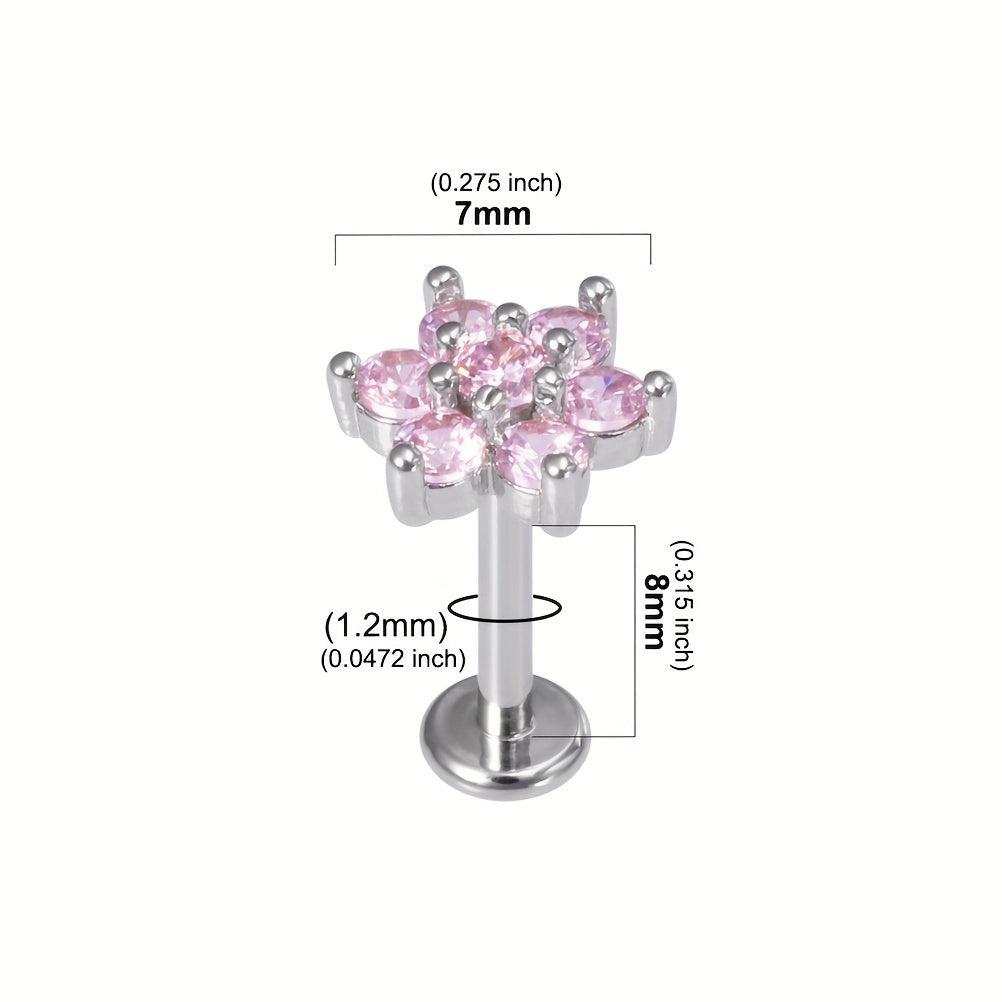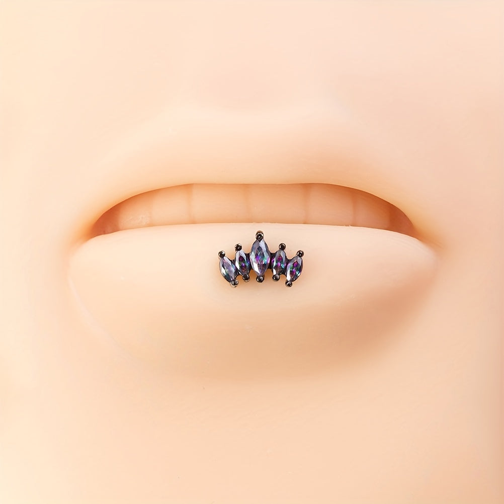 Elegant labret stud nose ring featuring zircon CZ stones. Perfect for nose, lip, or other body piercings.
