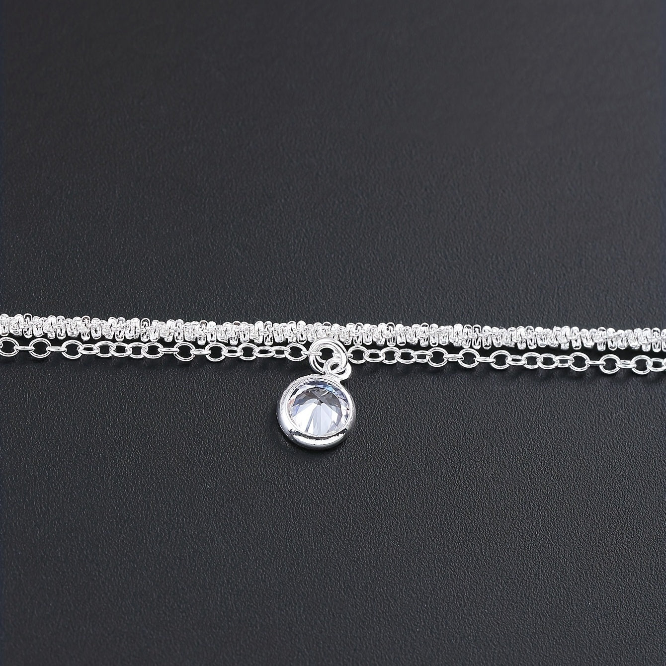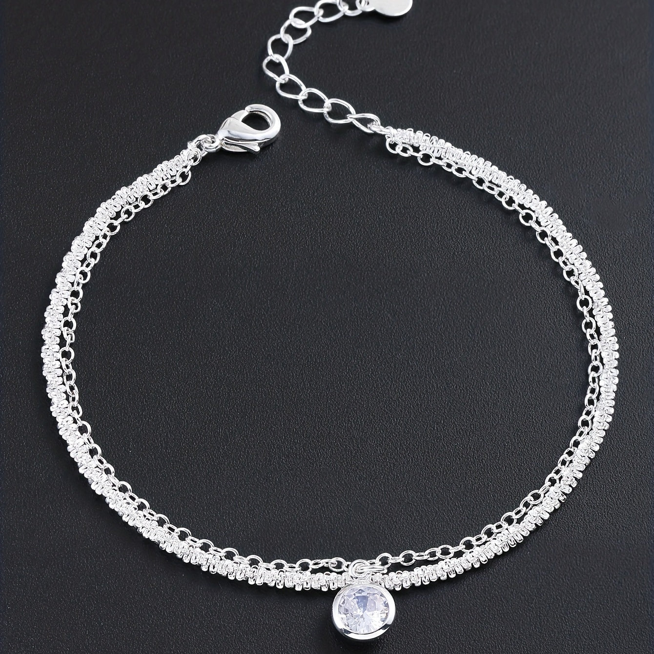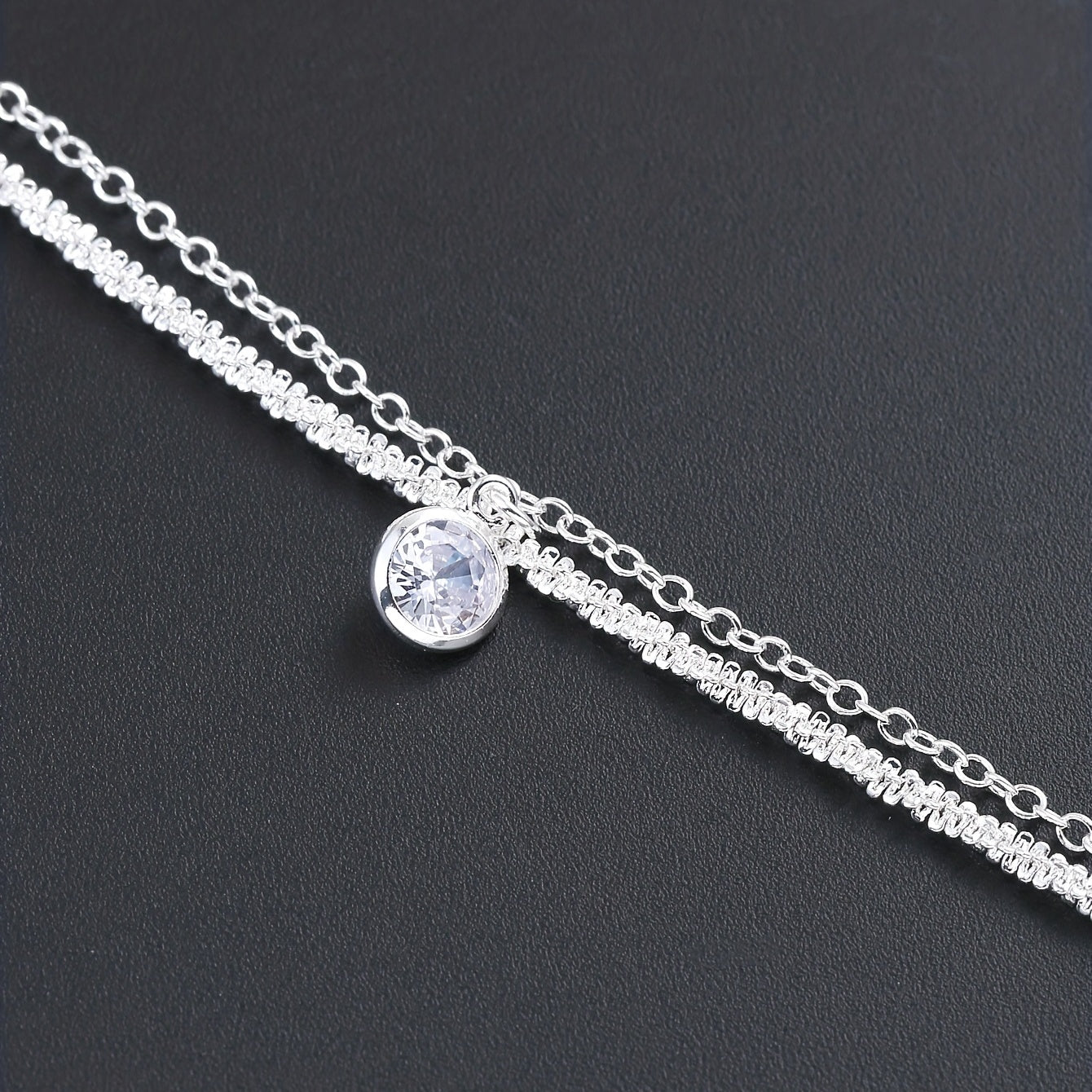 Add an elegant touch to your hand with this minimalist style bracelet. The double layer design with zircon detailing is perfect for any occasion, and the silver plating adds a touch of sophistication.
