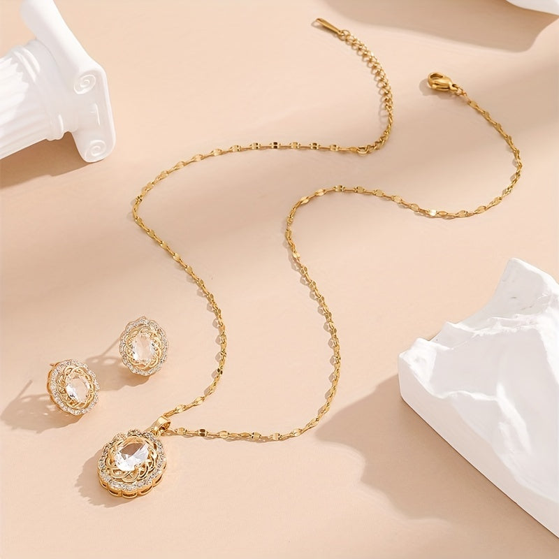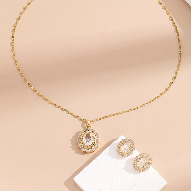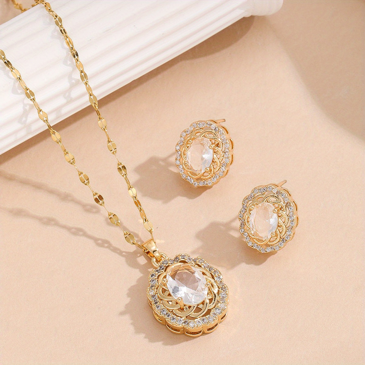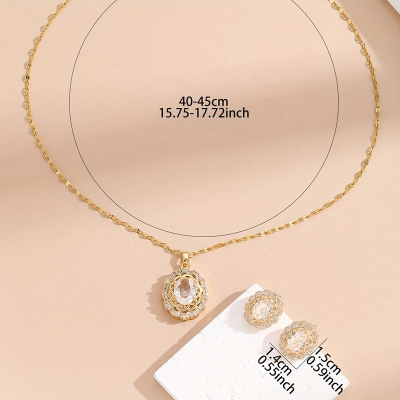 Complete your party or wedding look with this elegant flower shape zircon earrings and necklace set. Crafted with high-quality materials, this jewelry set is perfect for adding a touch of sophistication to your outfit.