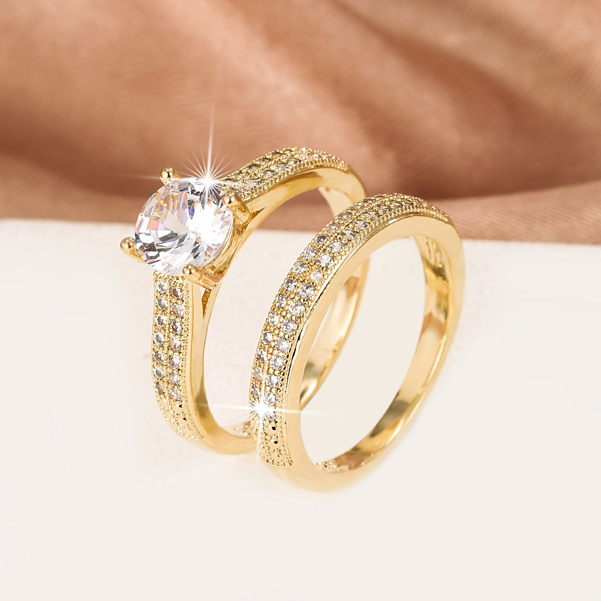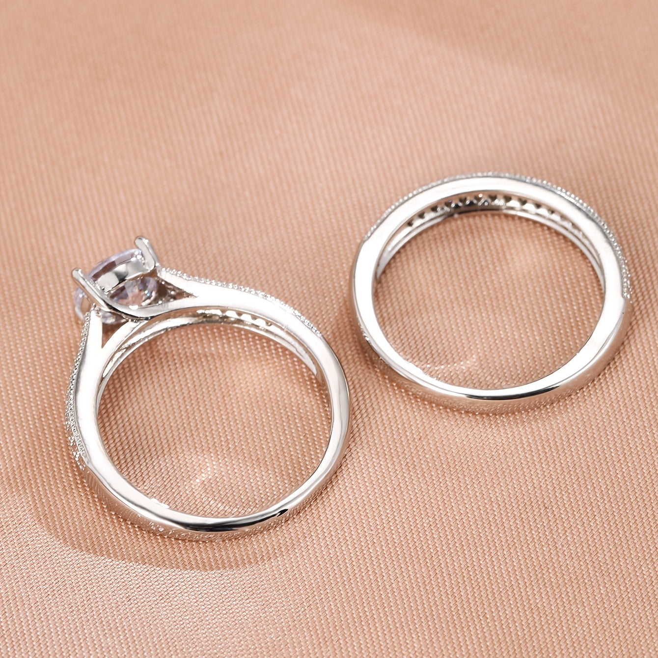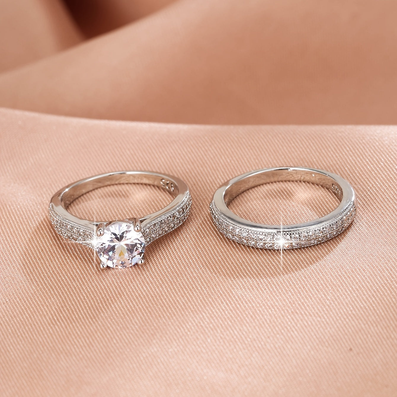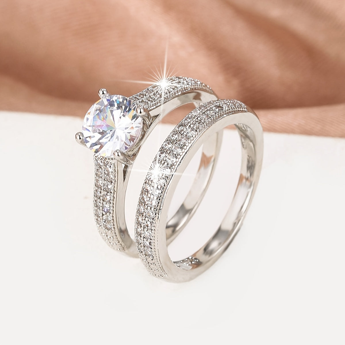 This 2-piece set of zircon eternity band rings is perfect for women, girls, brides, and anyone looking for a stylish accessory. The rings are silver plated and can be worn for weddings, engagements, or as promise rings.
