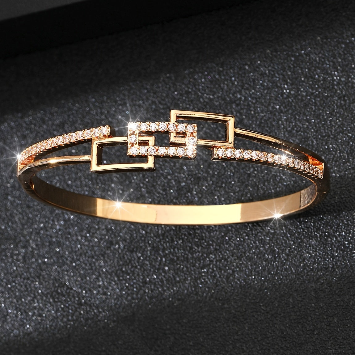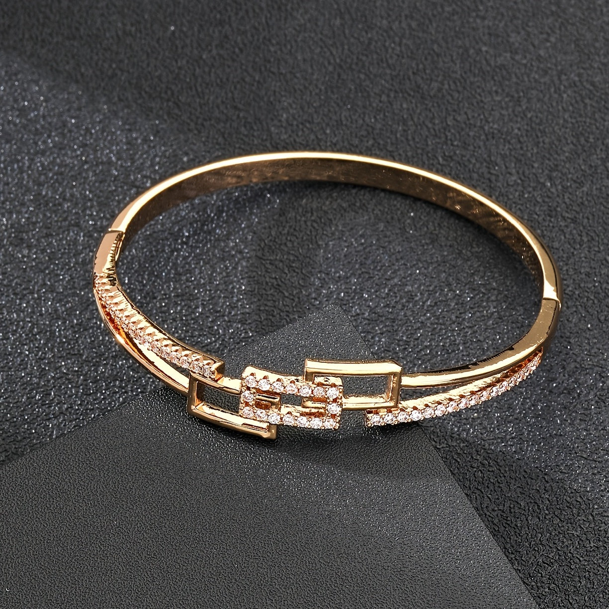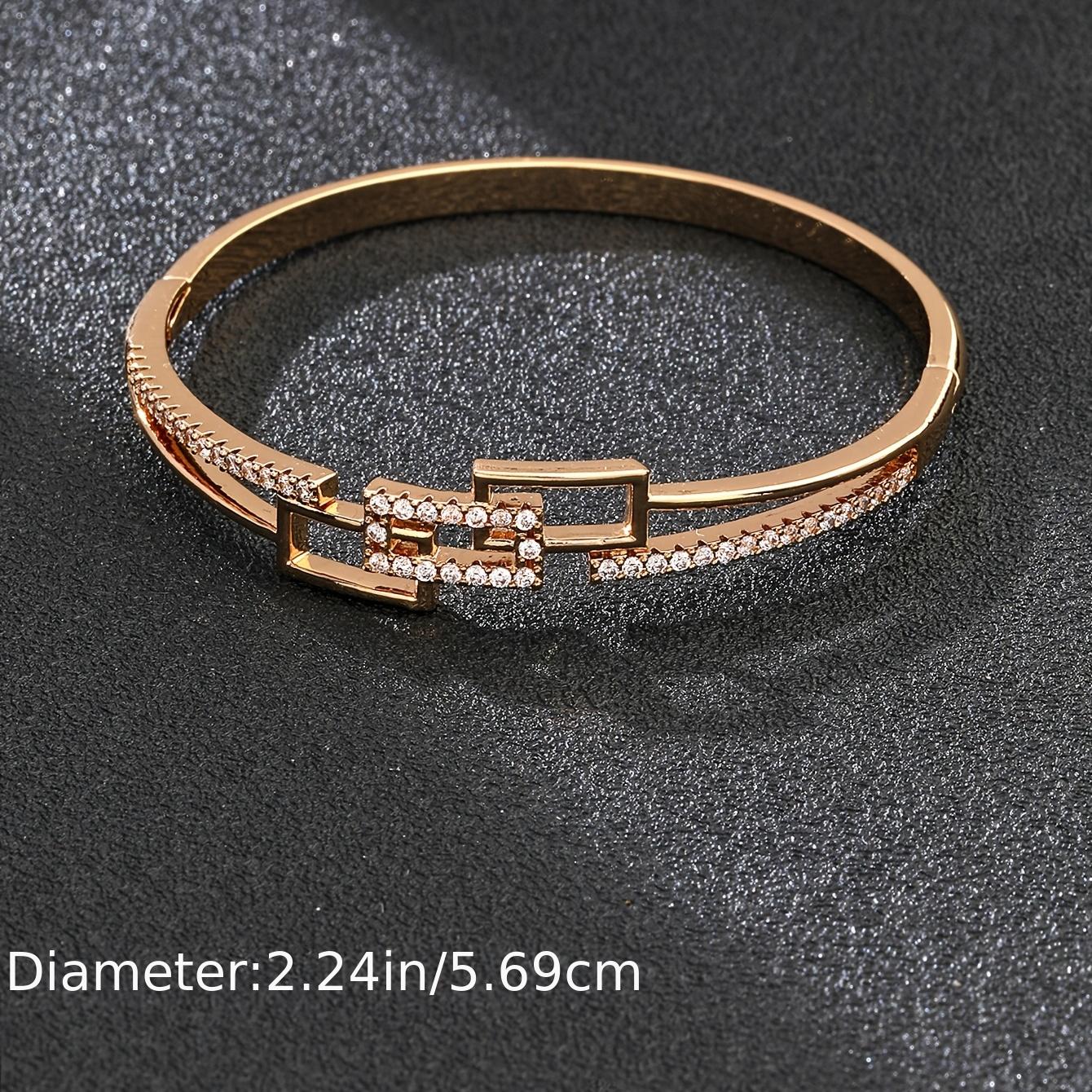 This bangle bracelet features a sleek design with geometric shapes and sparkling zircon stones. It is a stylish and practical accessory that will elevate your look. Perfect gift for women.