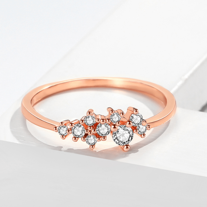 Add a touch of elegance and sparkle to your daily outfits or party looks with this dainty ring. Featuring a narrow band inlaid with shining zircon stones, this accessory is perfect for any occasion.