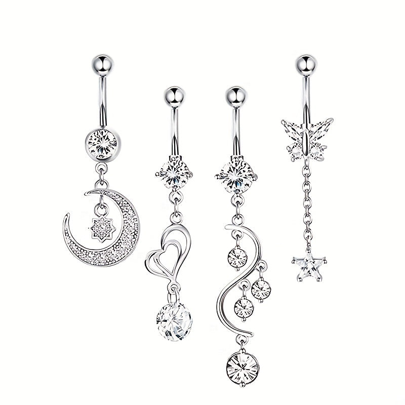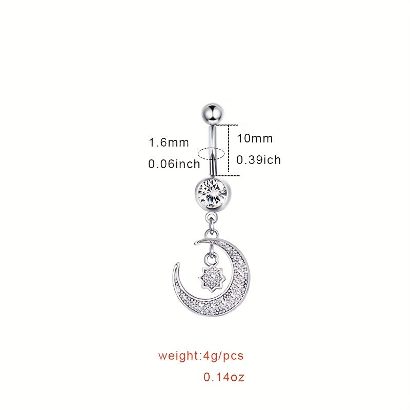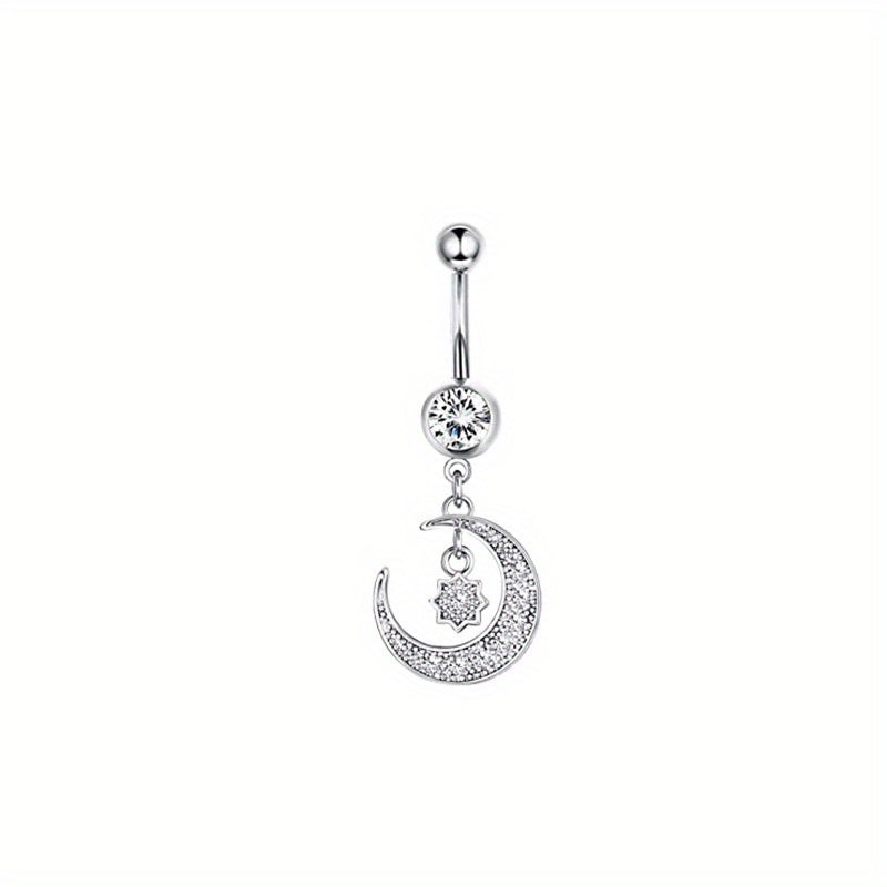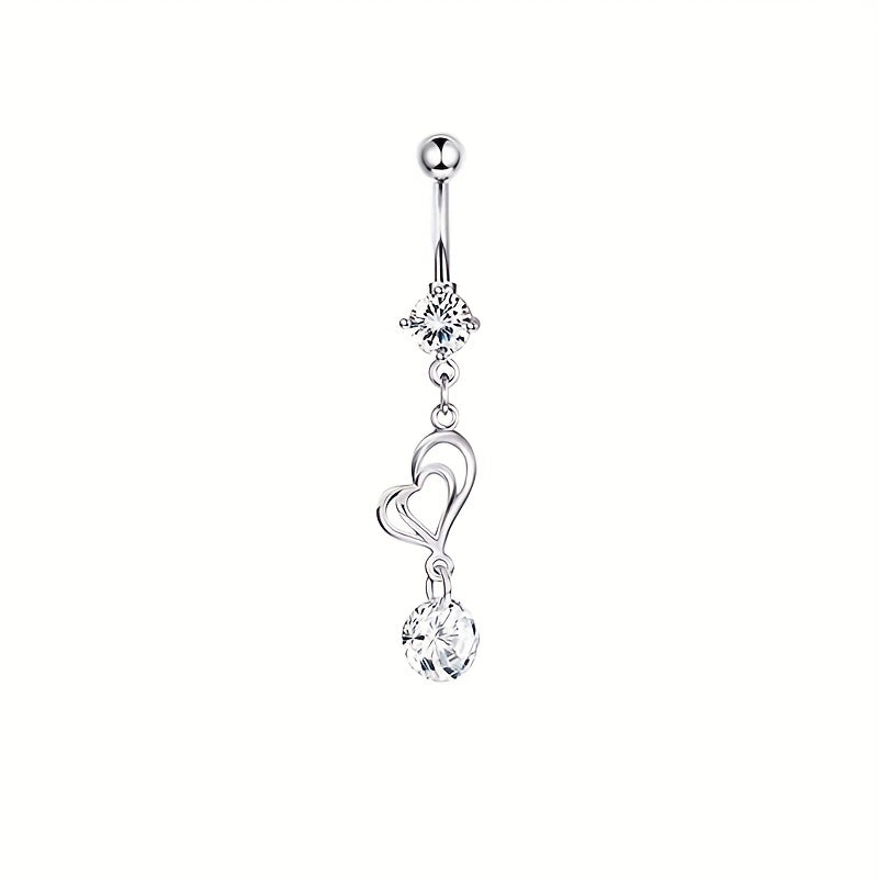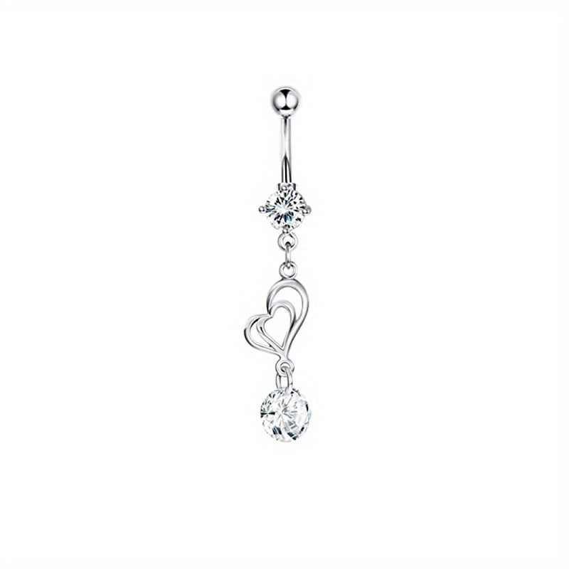 This belly button ring features dazzling zircon inlays for a glamorous look. Perfect for body piercing enthusiasts.