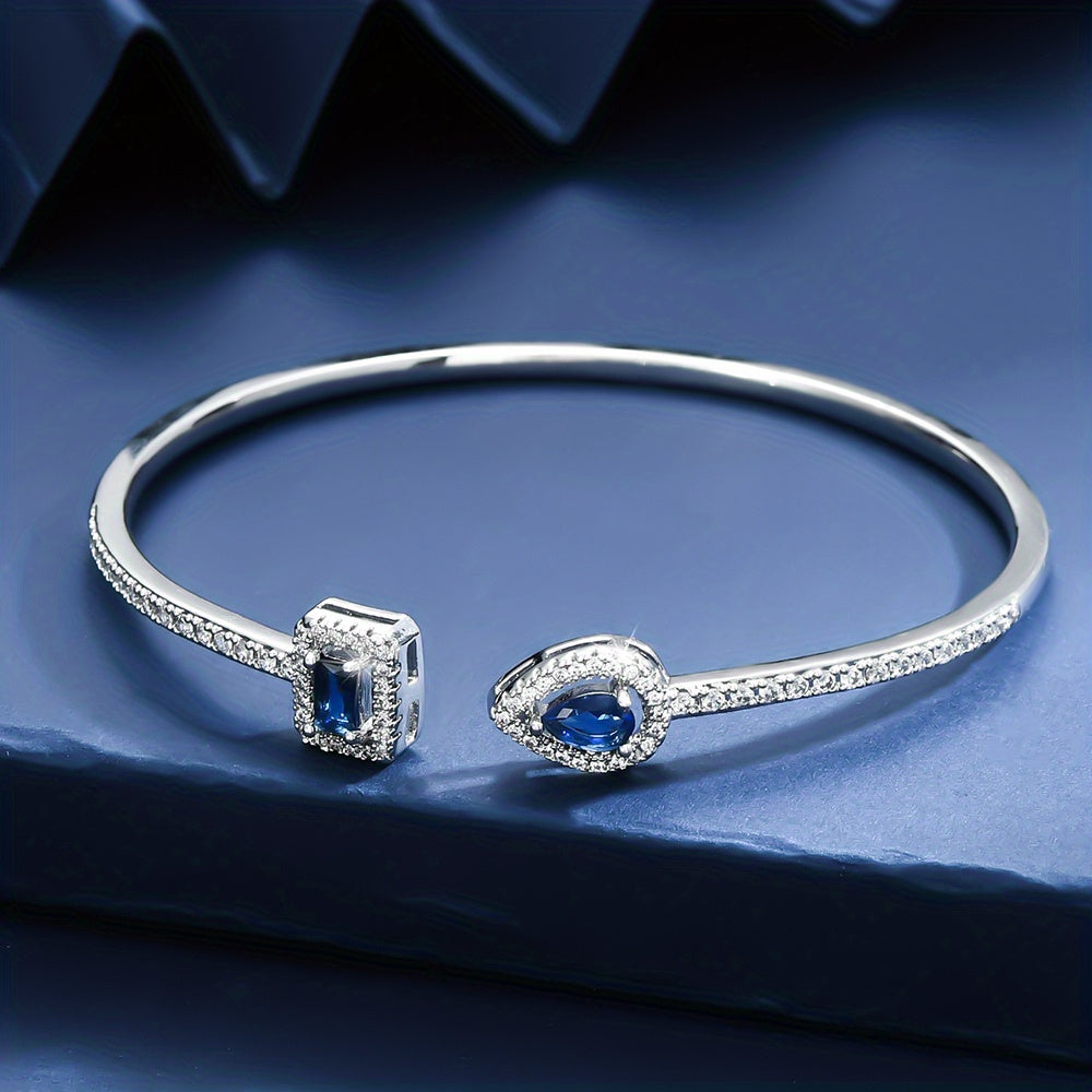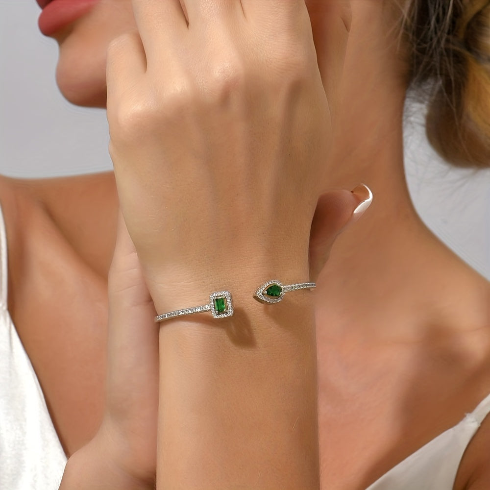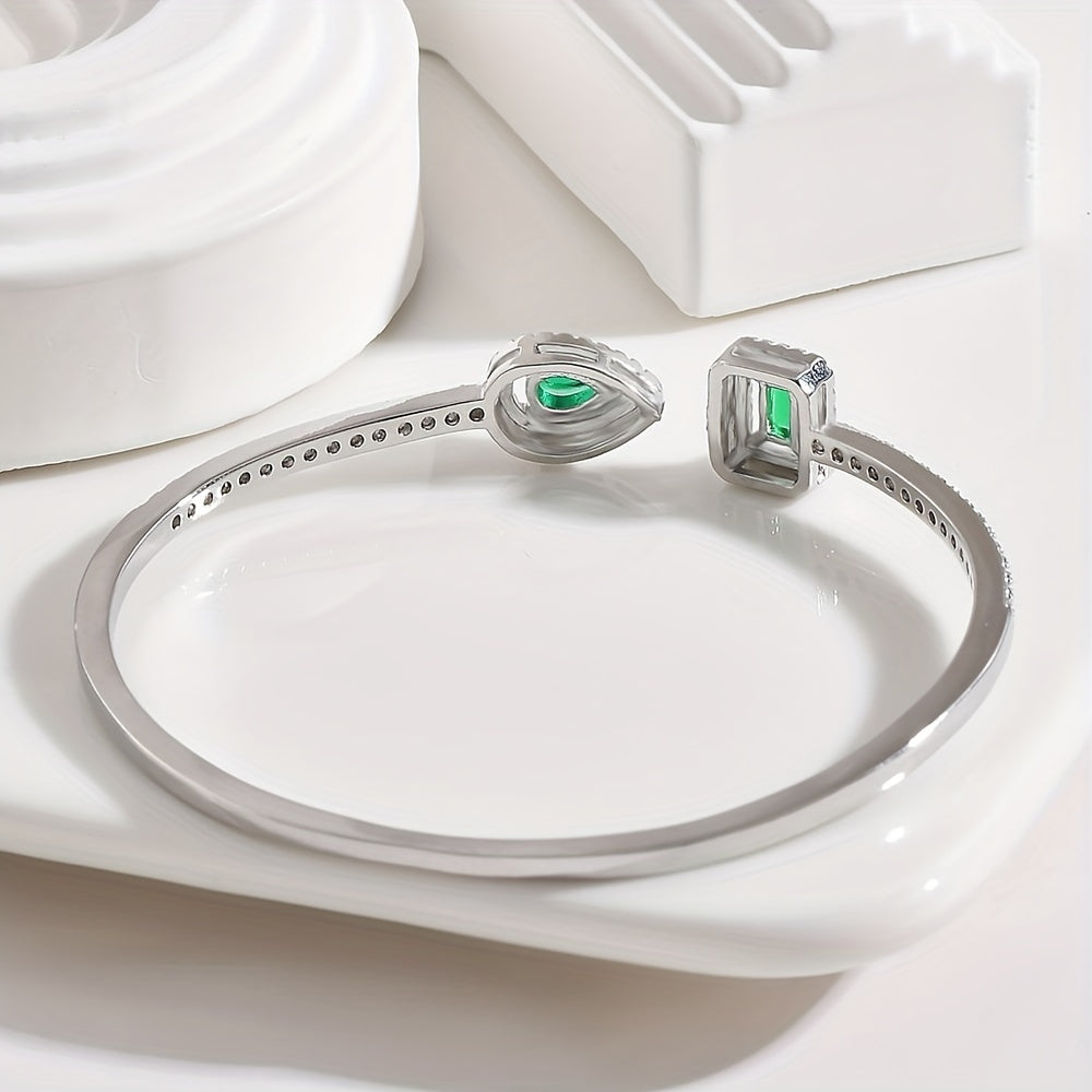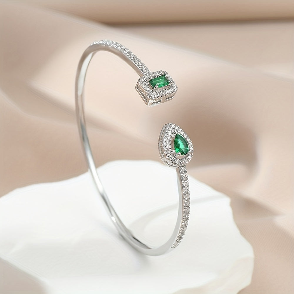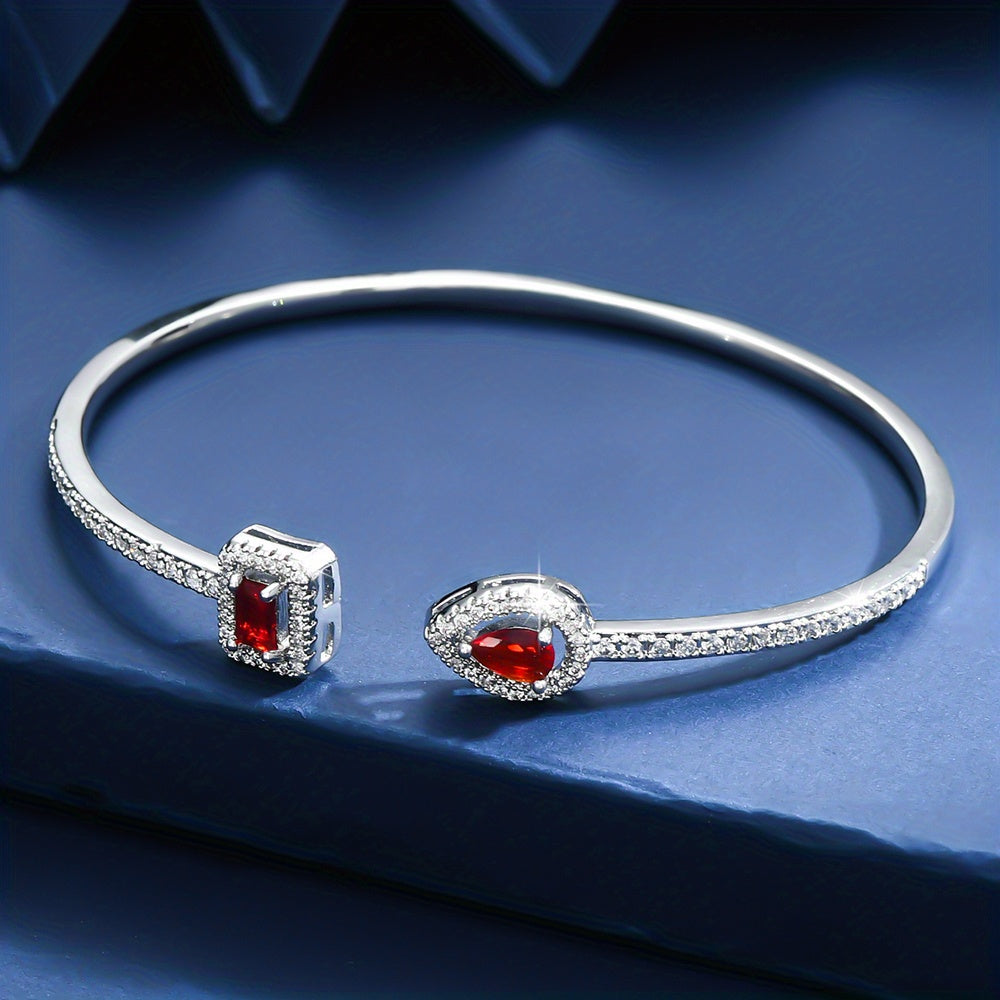 Elegant cuff bangle bracelet crafted from copper with beautiful zircon inlay. Perfect accessory for adding a touch of glamour to your ensemble.