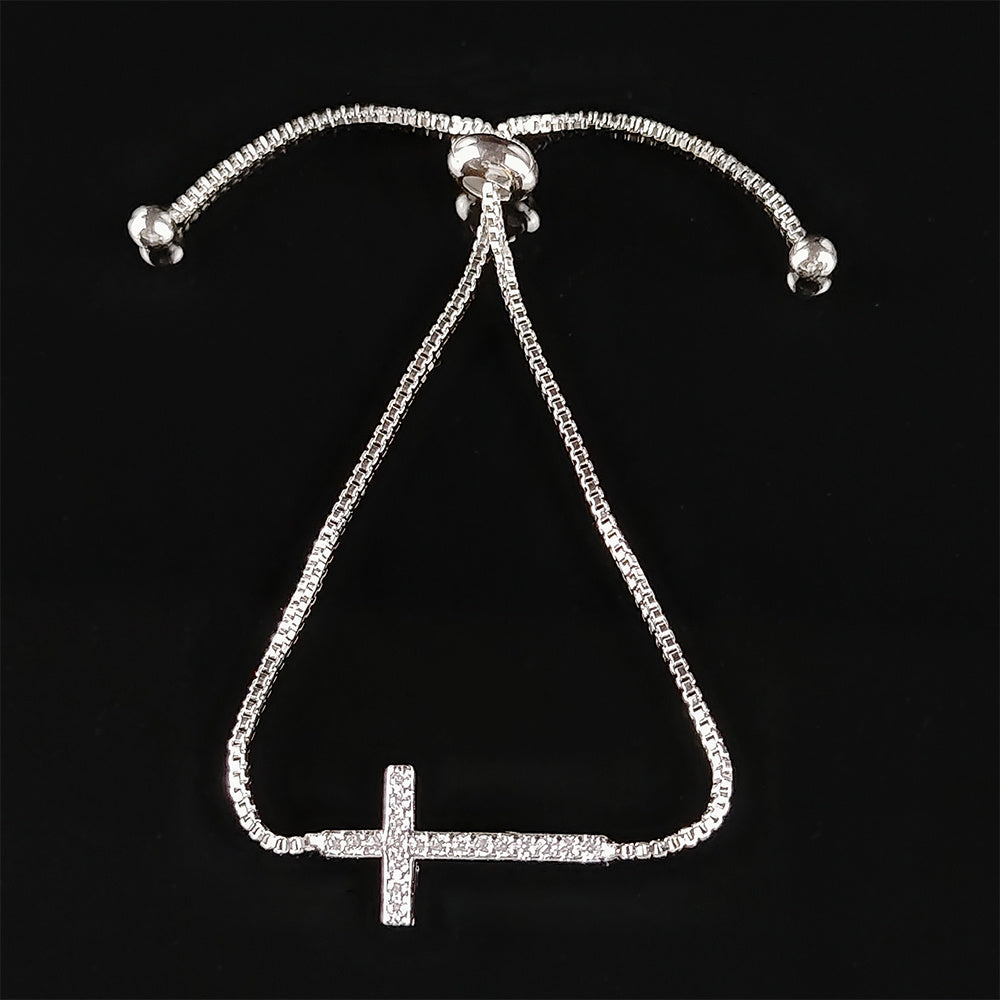 Zircon Inlaid Cross Chain Bracelet Adjustable Hand Chain Jewelry