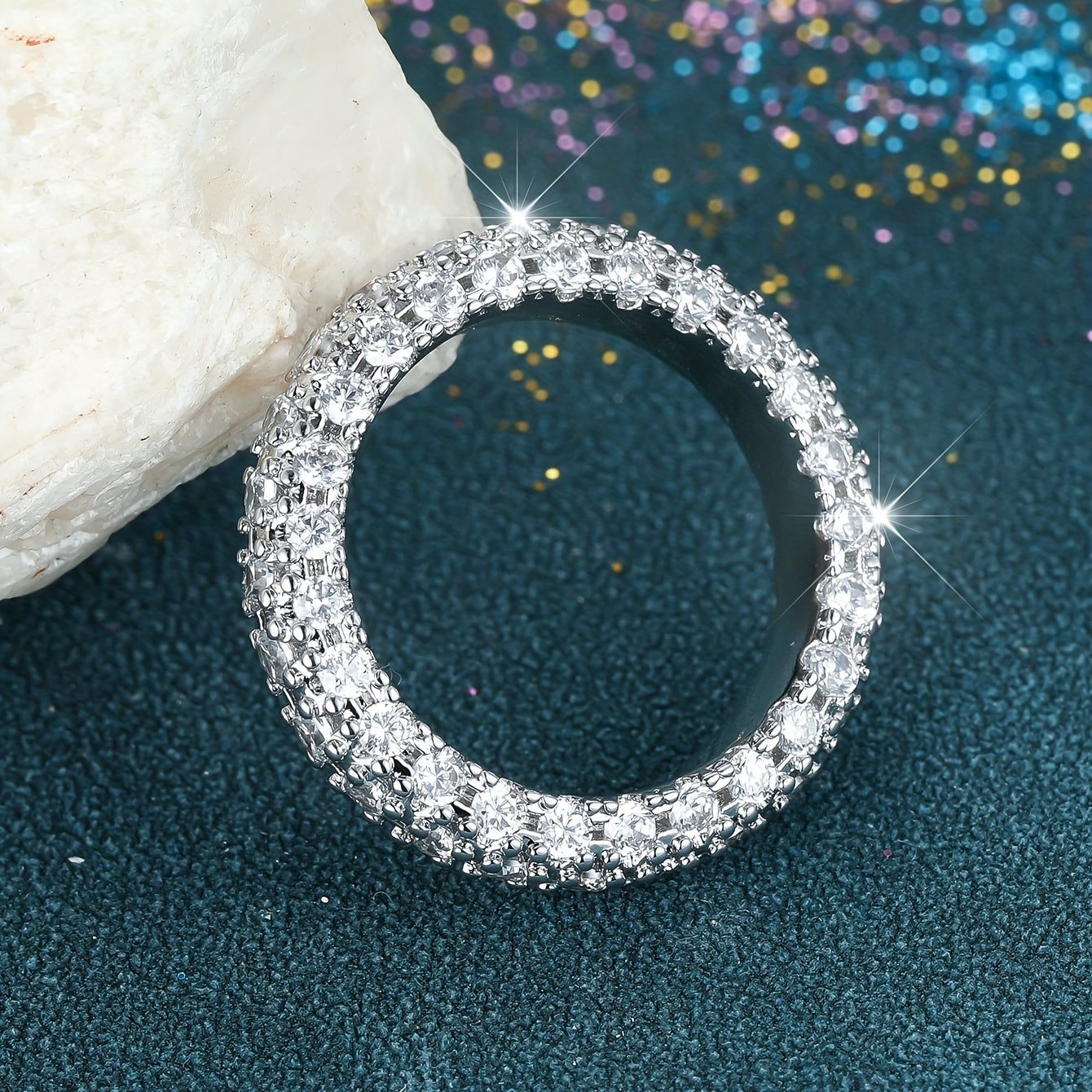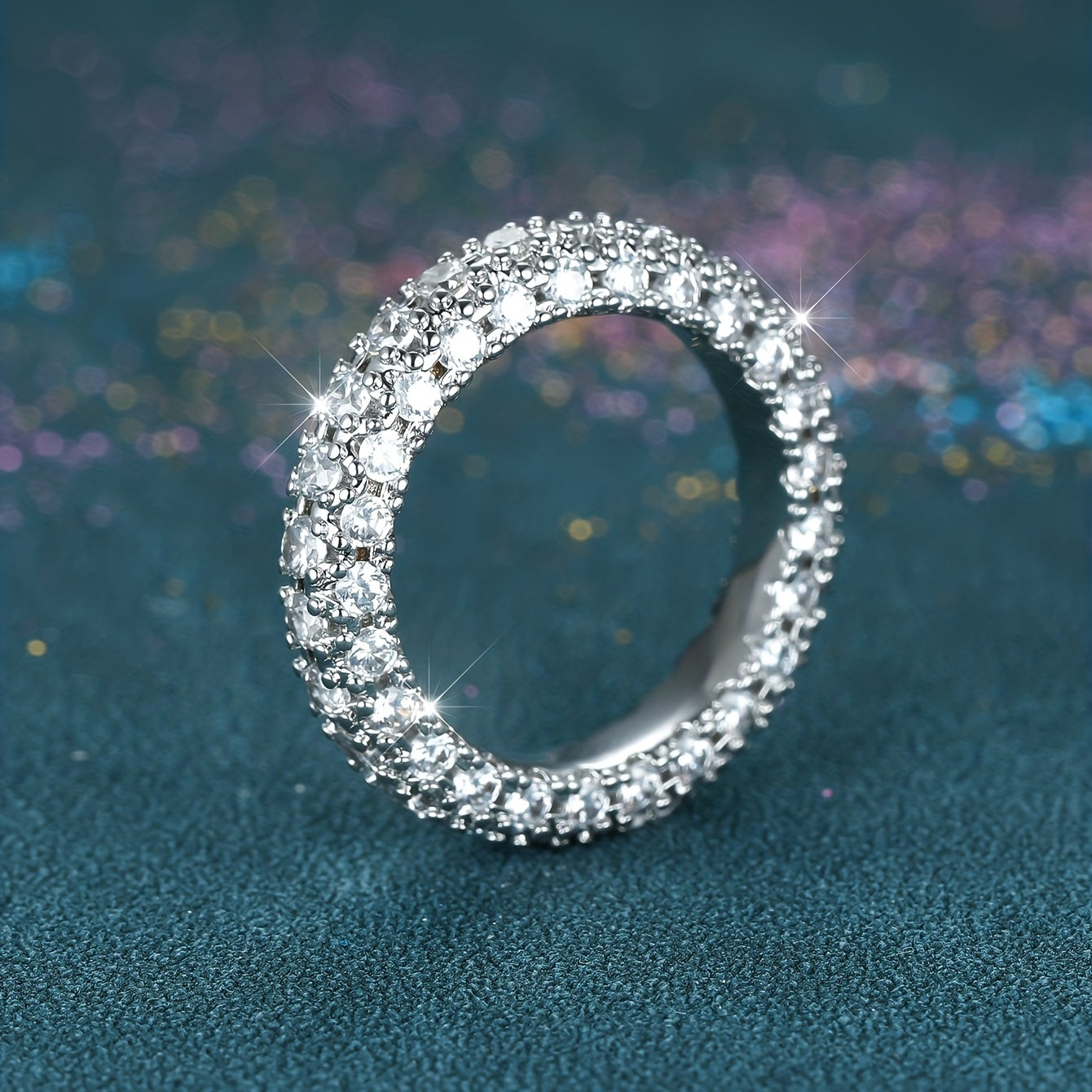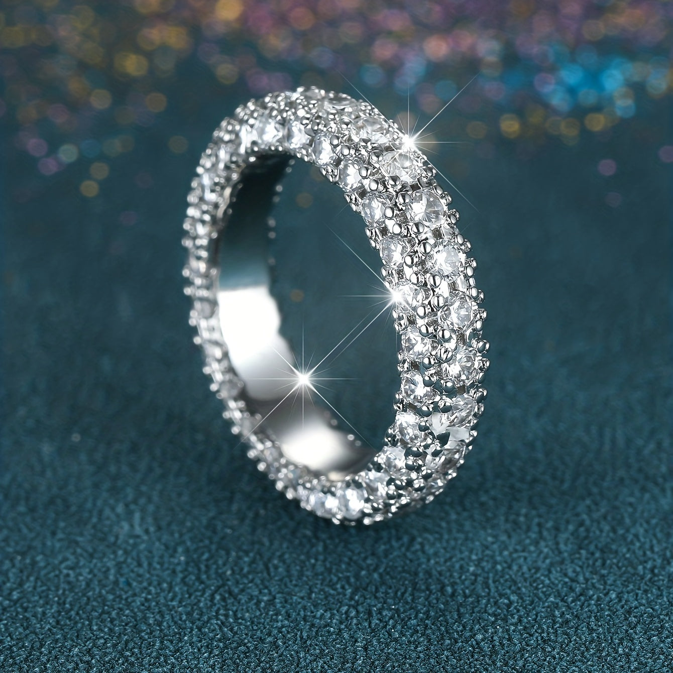 Add a touch of elegance with this ring featuring a row of shining zircons. Perfect for evening parties or as a dainty birthday gift.