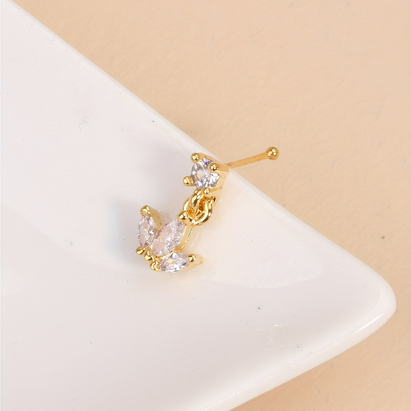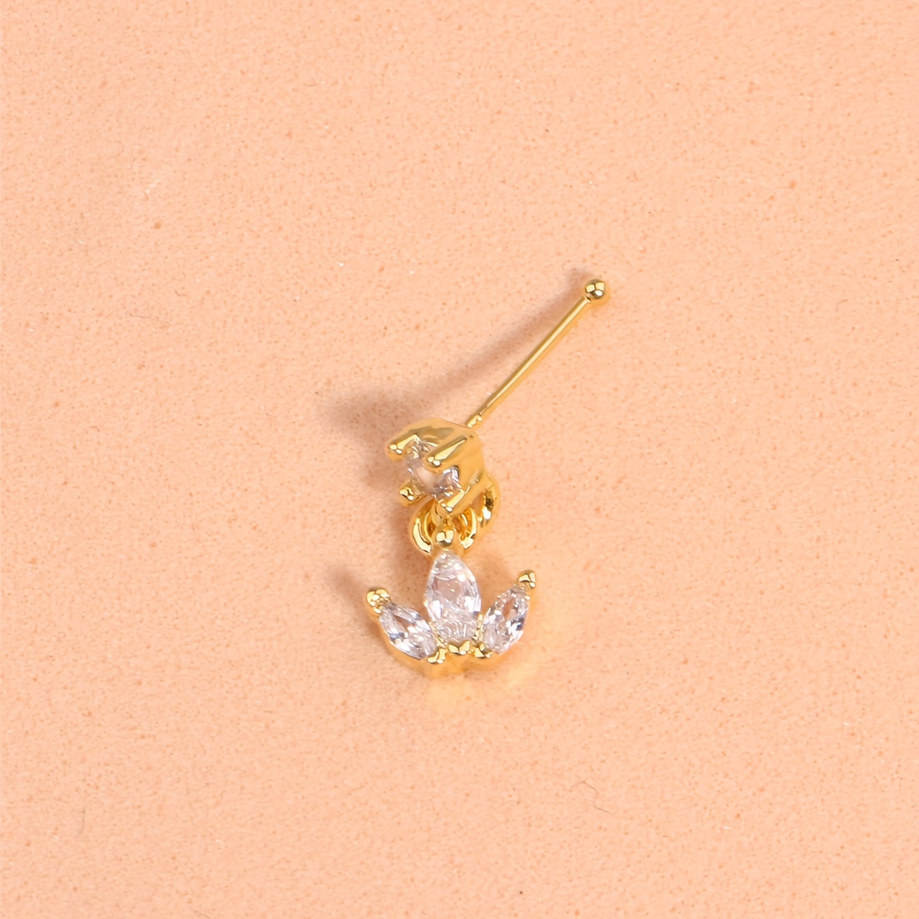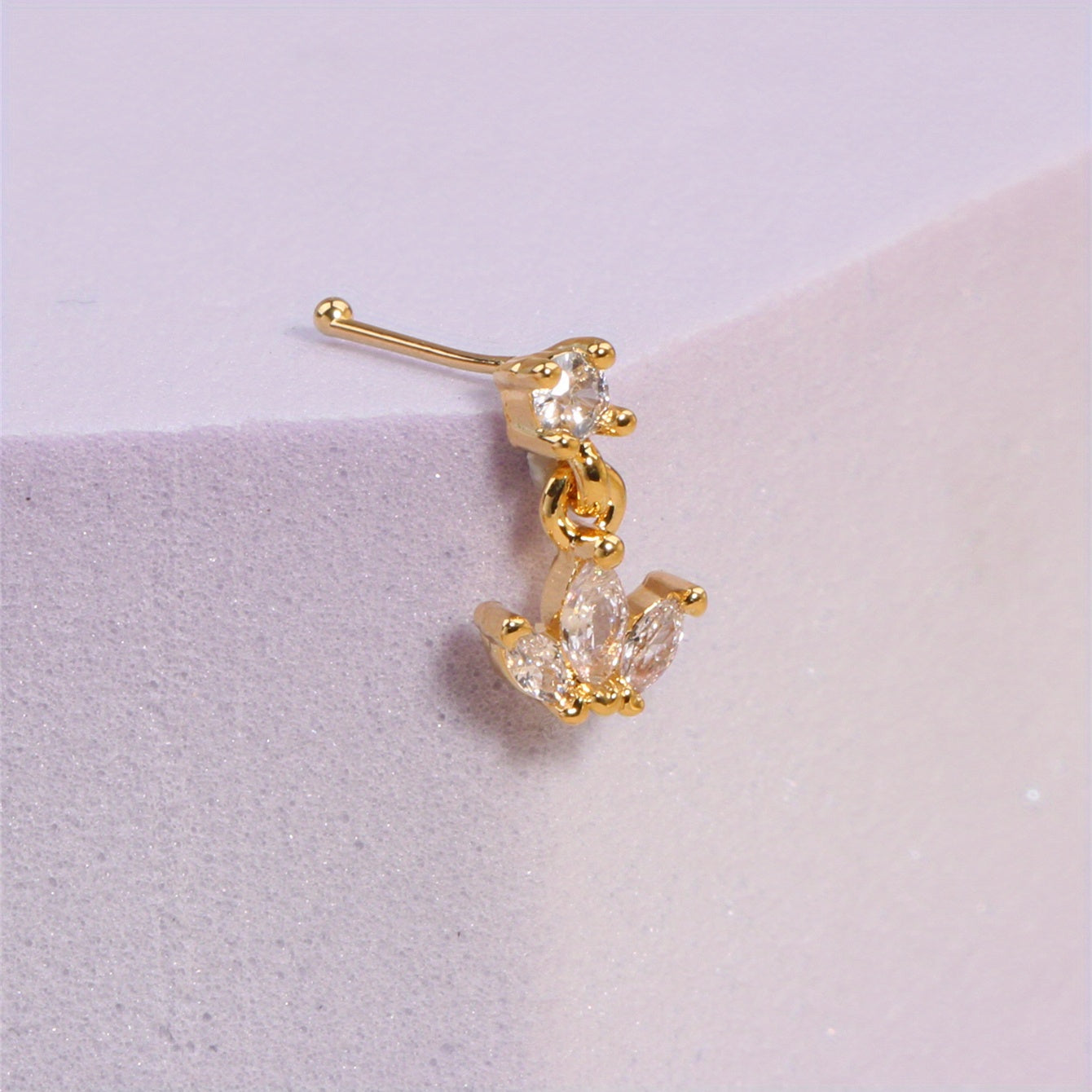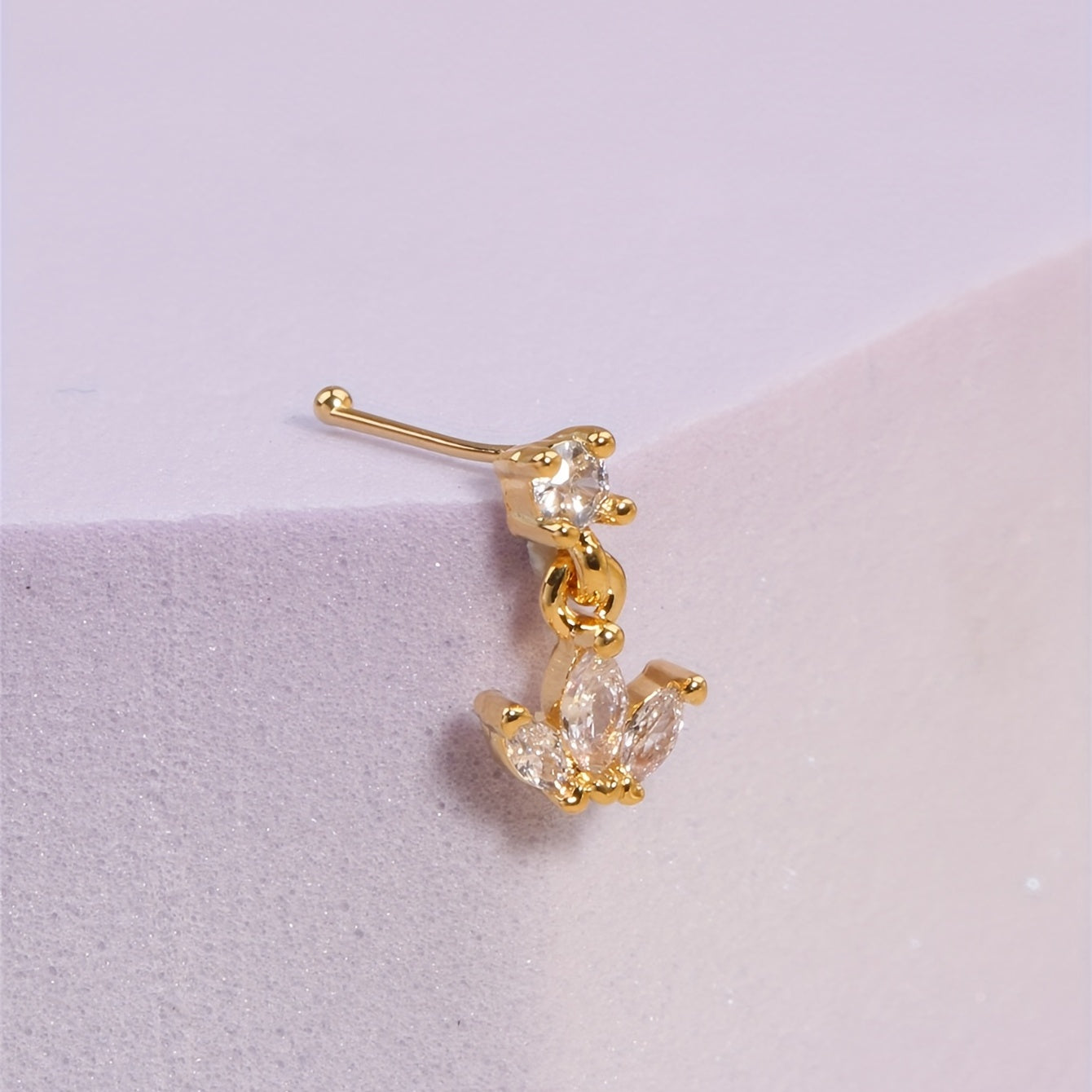 Elegant nose stud ring featuring a flower shape pendant and inlaid zircon. Perfect for adding a touch of sophistication to your nose piercing.