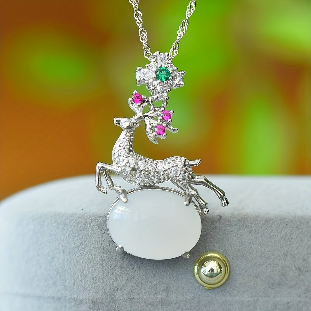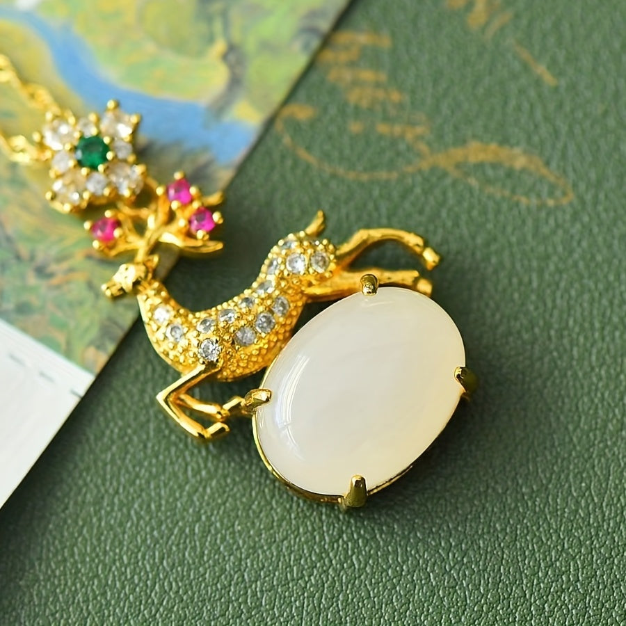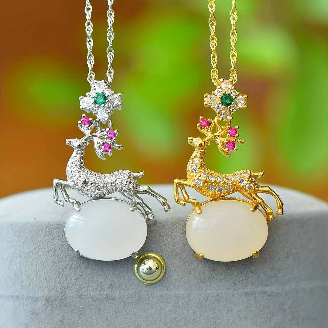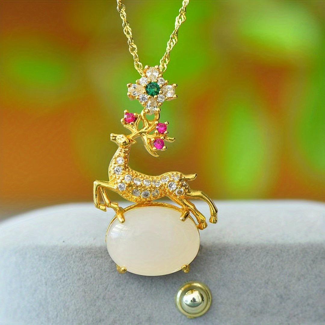 This elegant zircon pendant features natural golden silk jade and a deer design, suitable for both men and women. It makes a perfect gift for birthdays or special occasions.