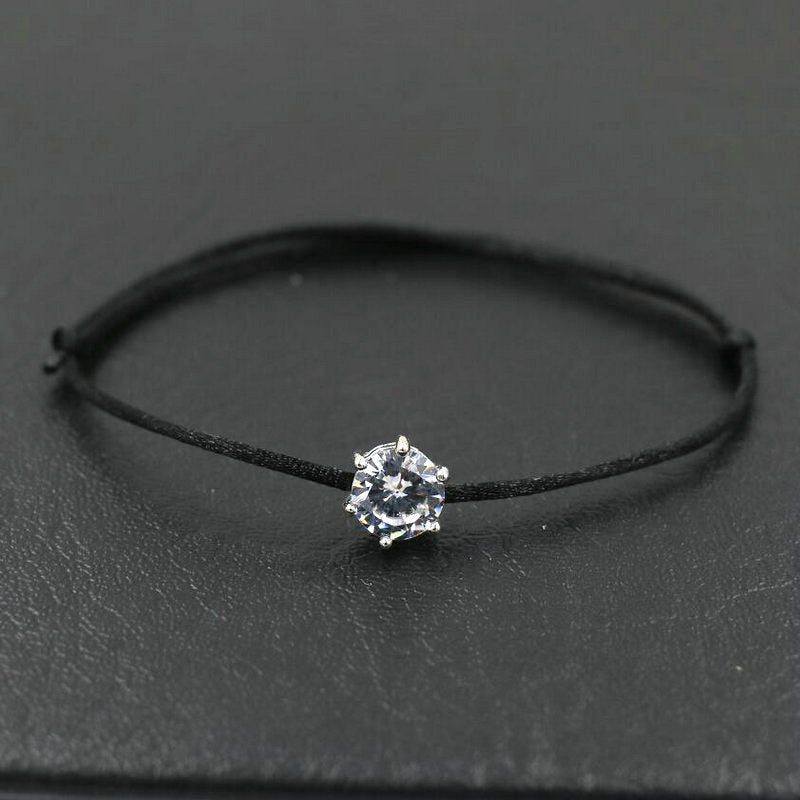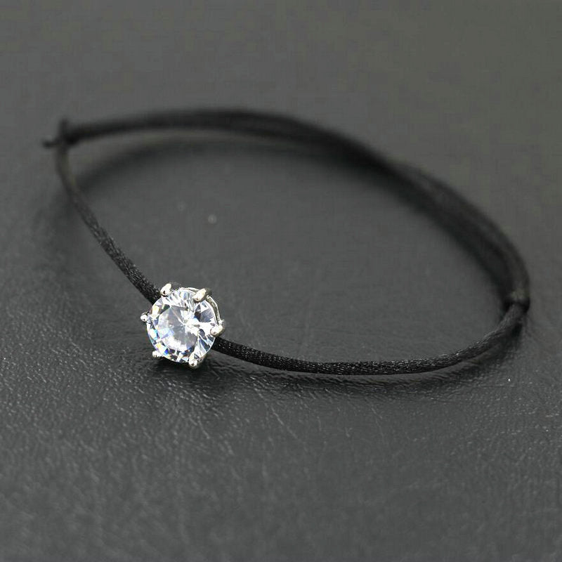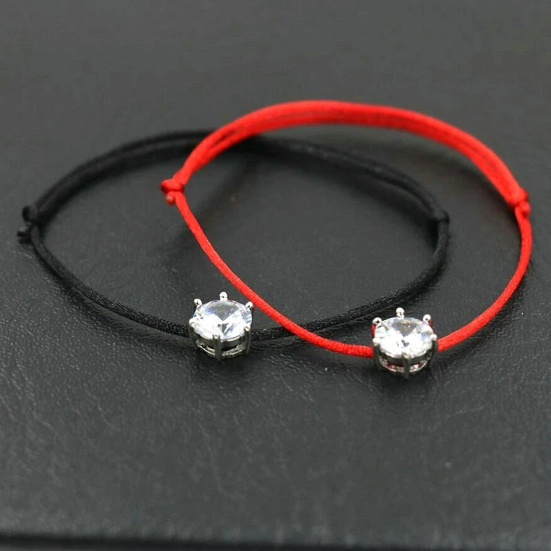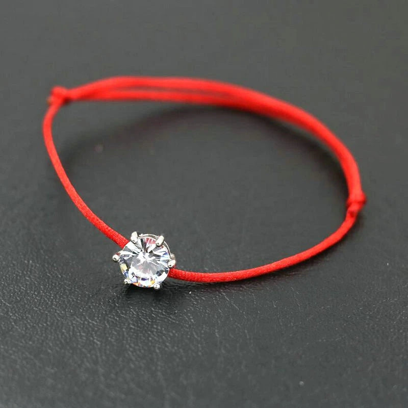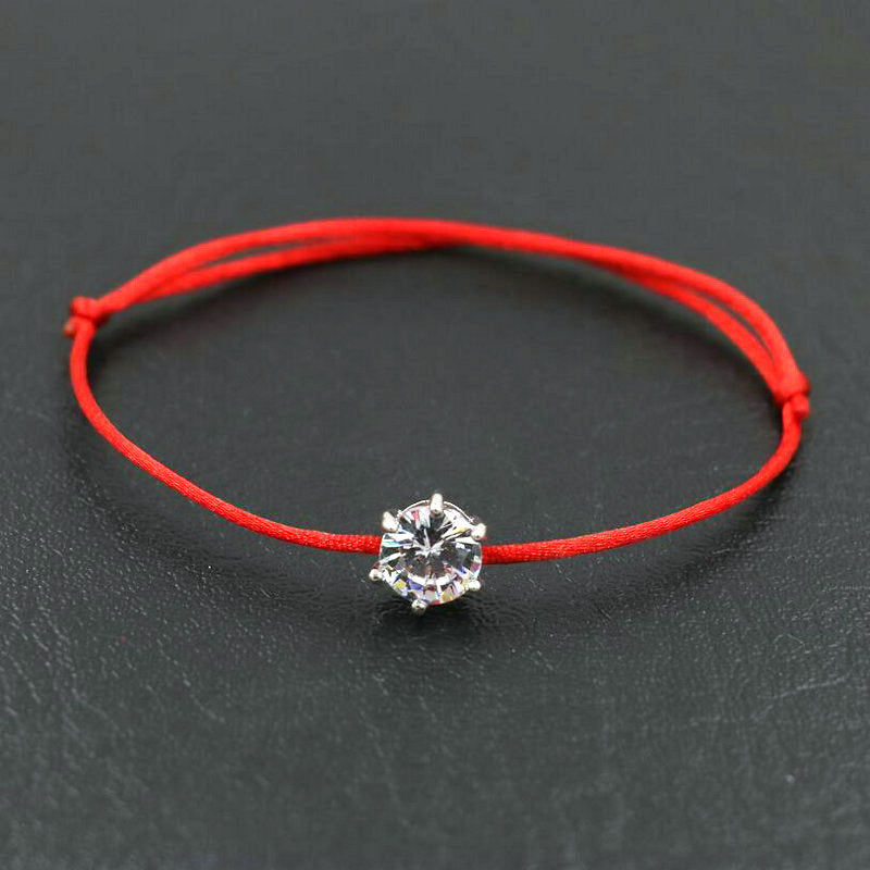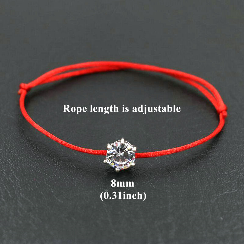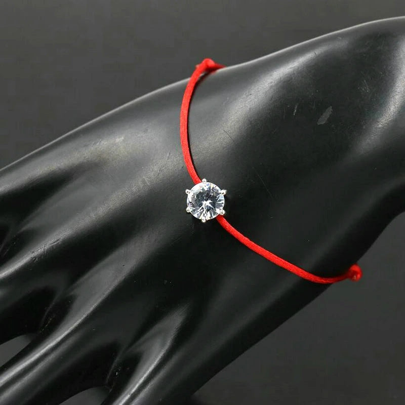 Elegant red rope bracelet with inlaid round cut zircon, symbolizing good luck and protection. Perfect hand jewelry accessory for a touch of style.