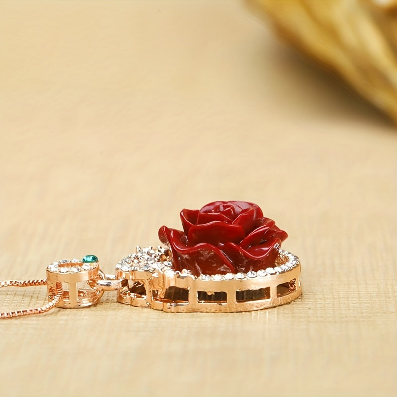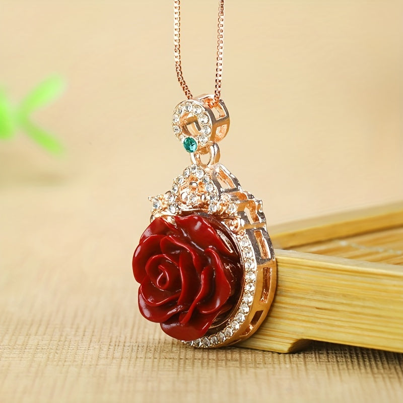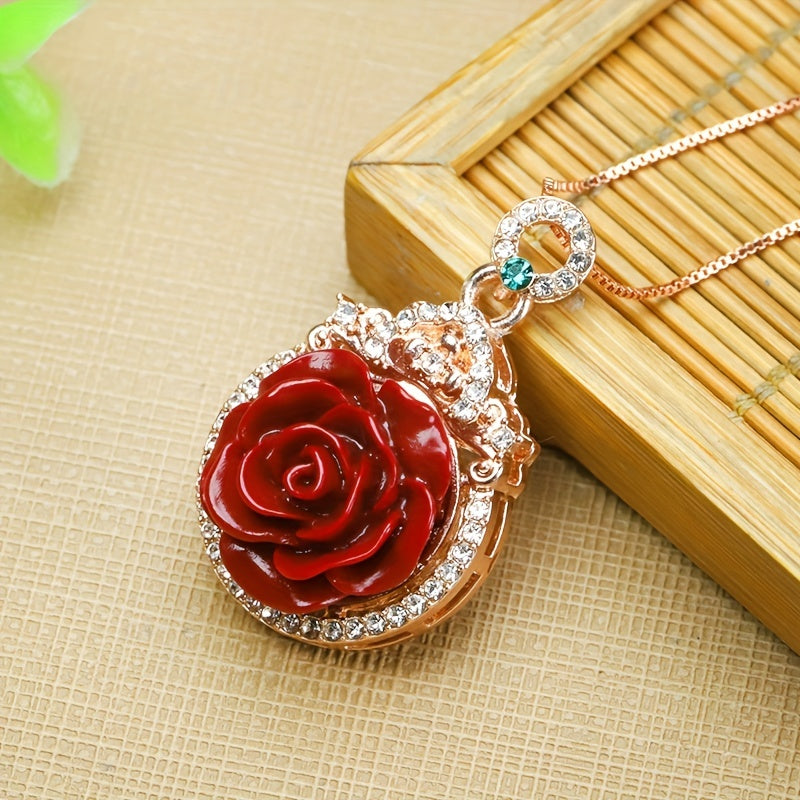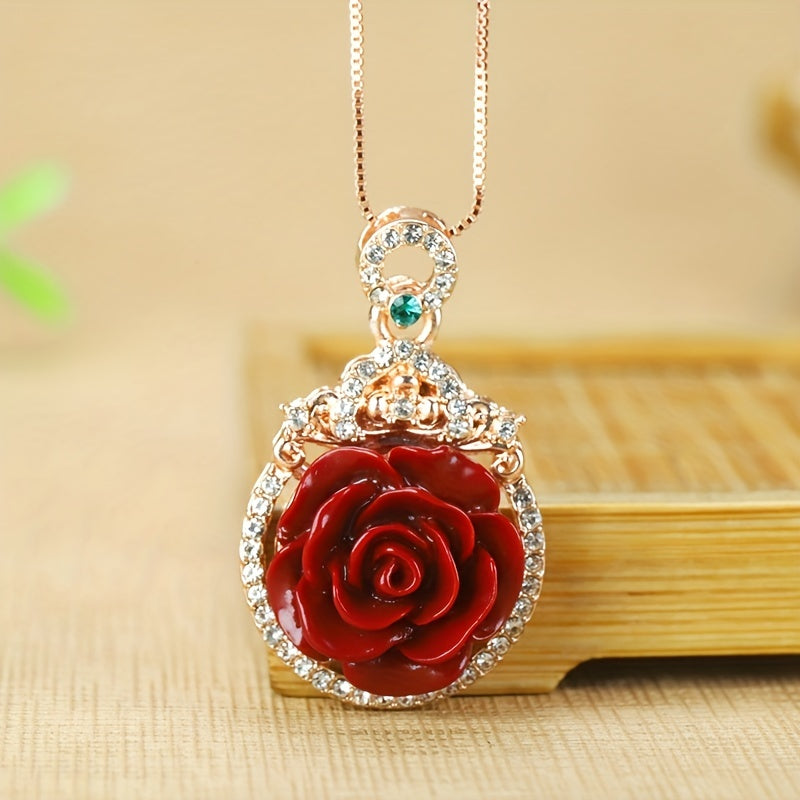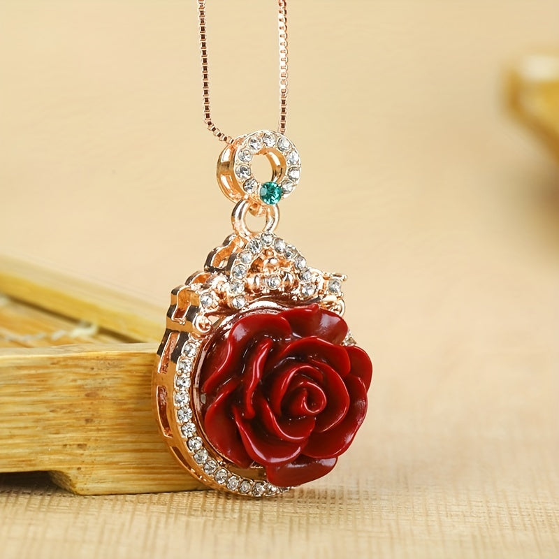 This elegant zircon pendant features a beautifully inlaid rose flower design. Perfect for men or women to wear as a charming accessory. Ideal gift for friends on their birthday.