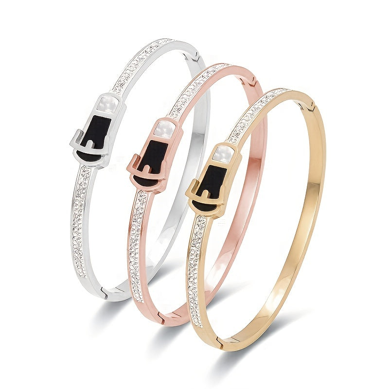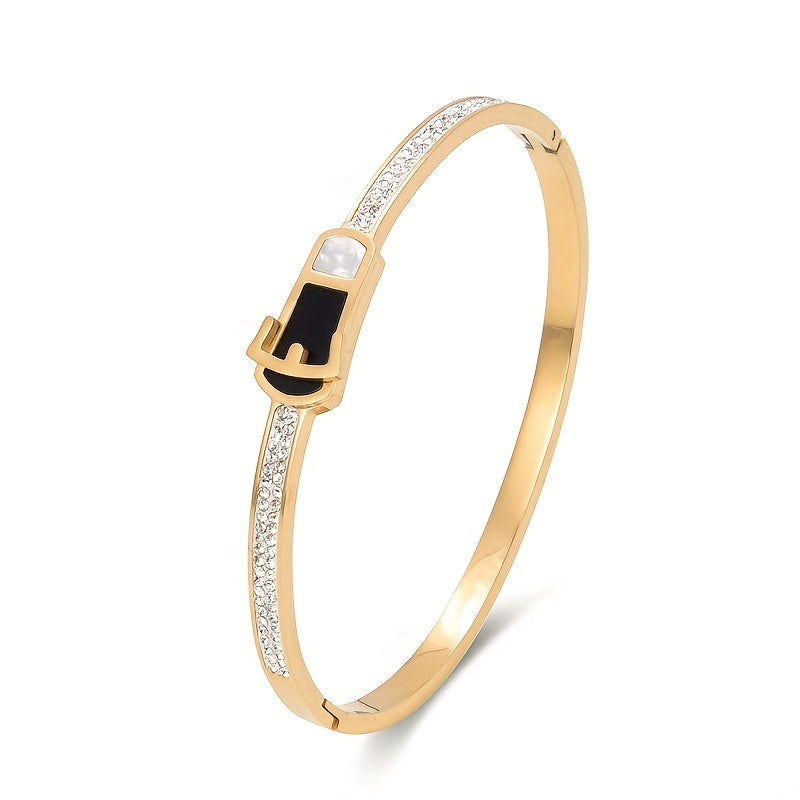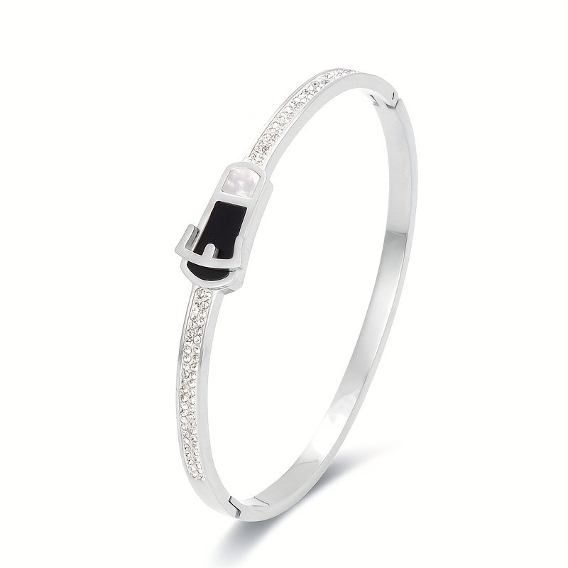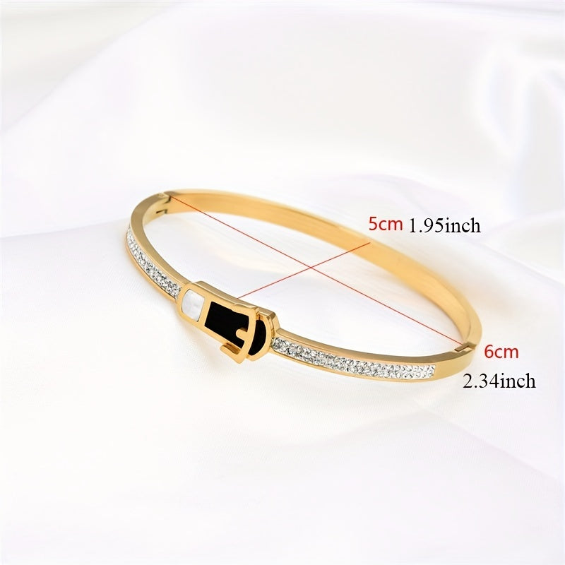 Elegant bangle bracelet featuring sparkling zircon stones in a geometric round design. Made of durable stainless steel, perfect for women and girls.