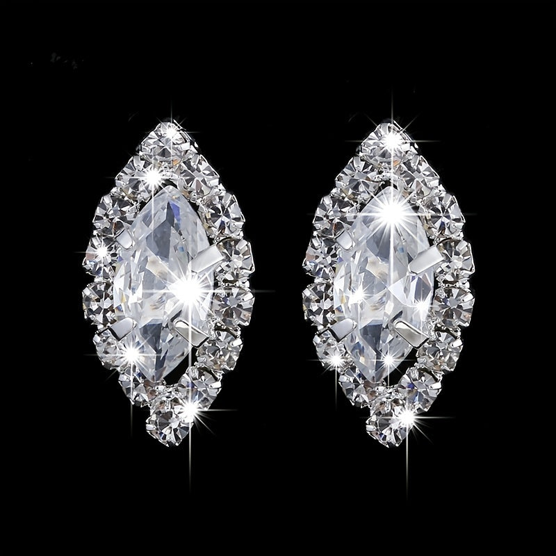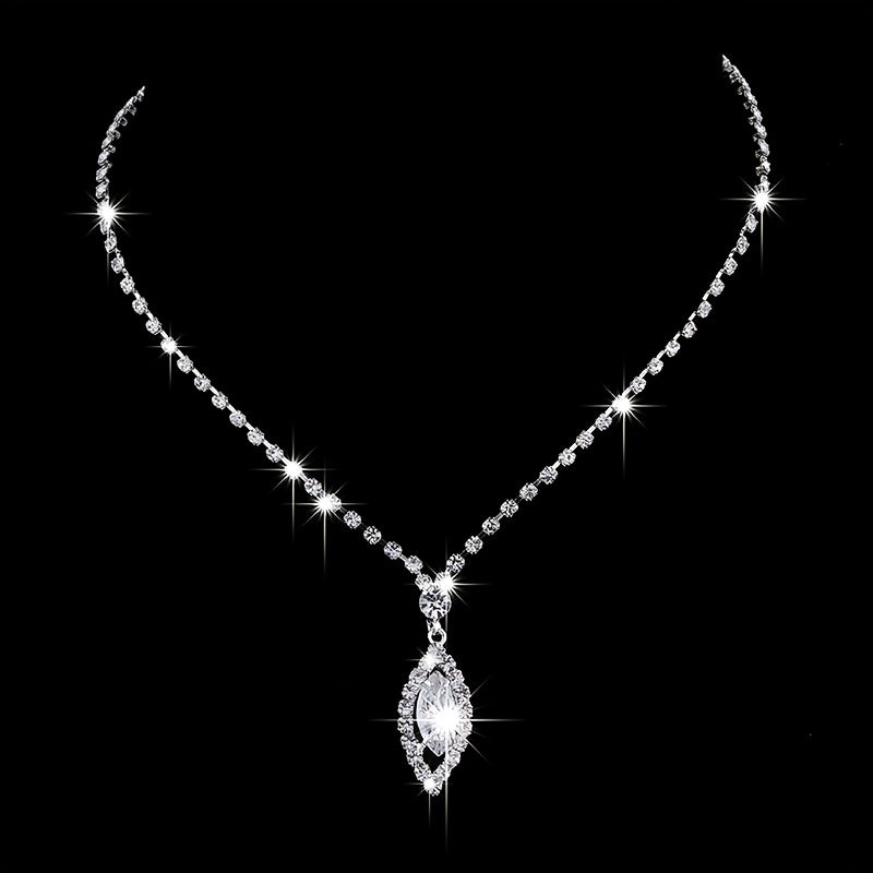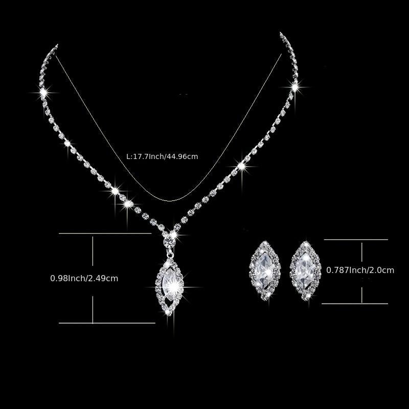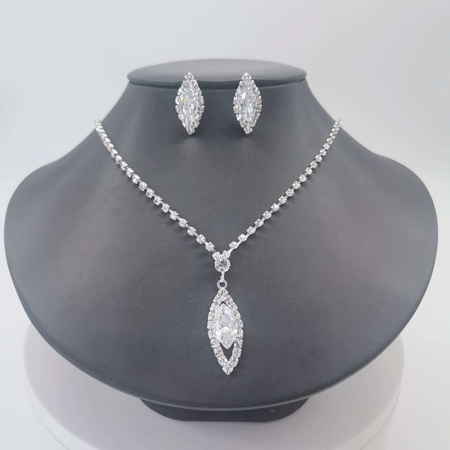 Complete your bridal look with this stunning zircon silver necklace and earrings set. Perfect for weddings and special occasions.