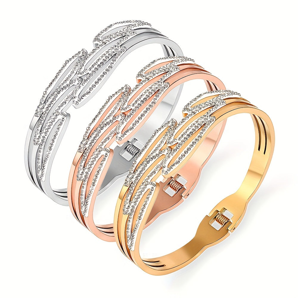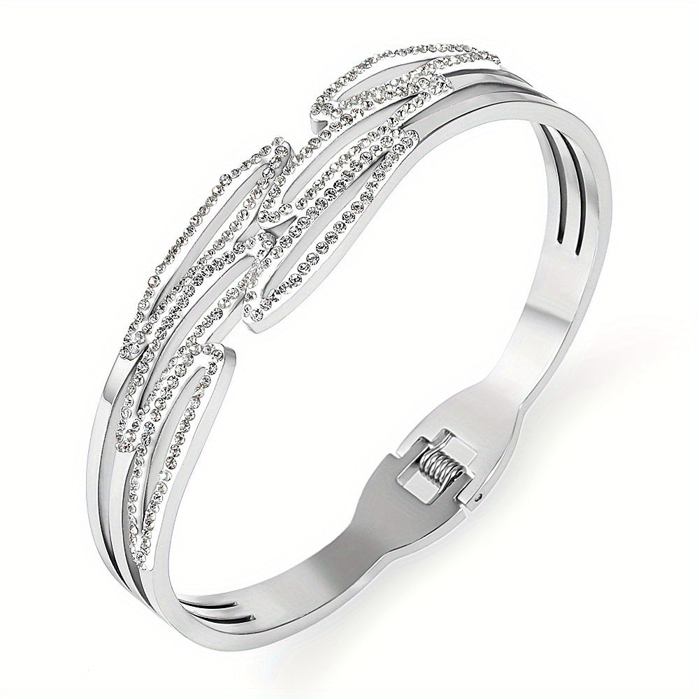 Add a touch of elegance with this stunning stainless steel bracelet featuring zircon stones. Perfect for parties and special occasions.