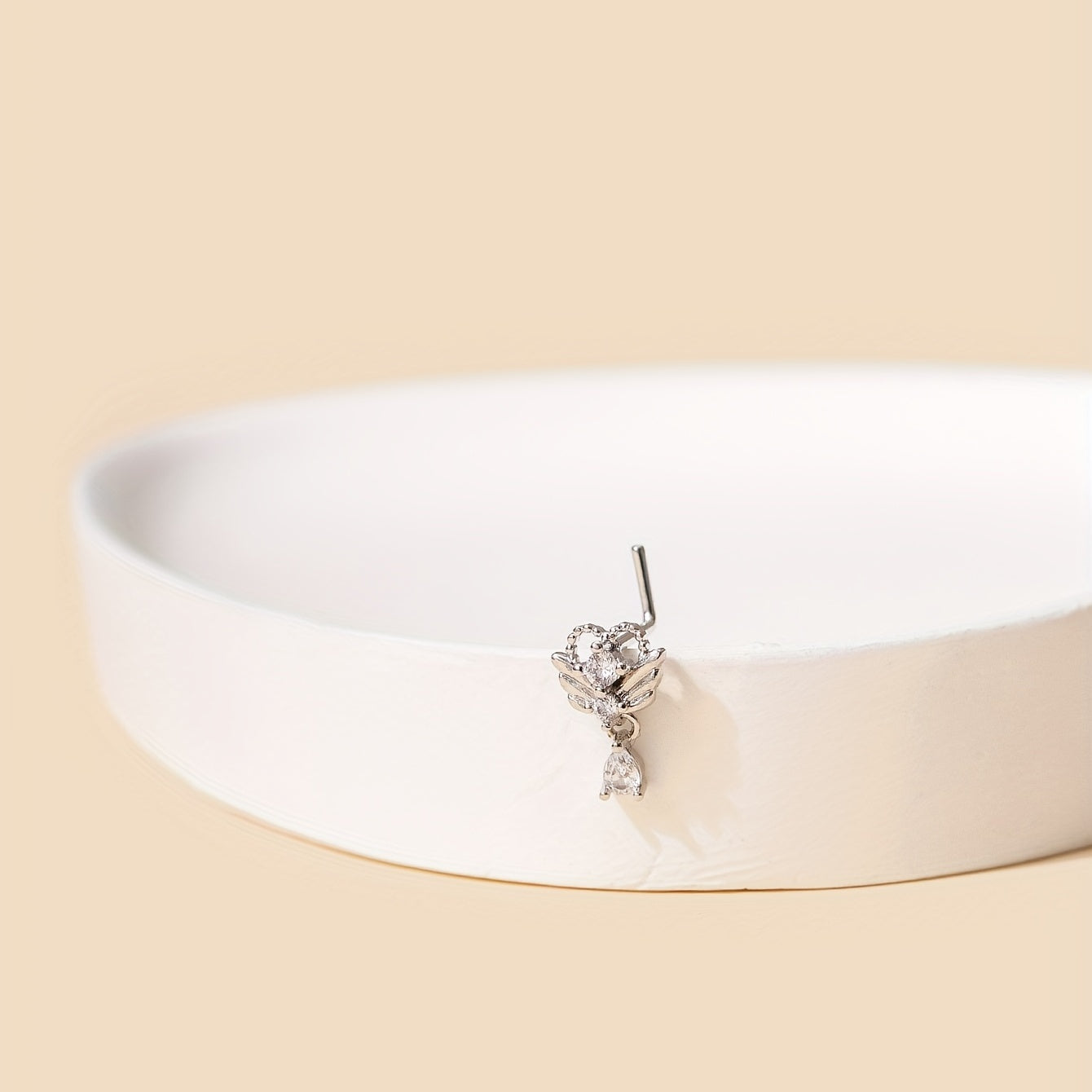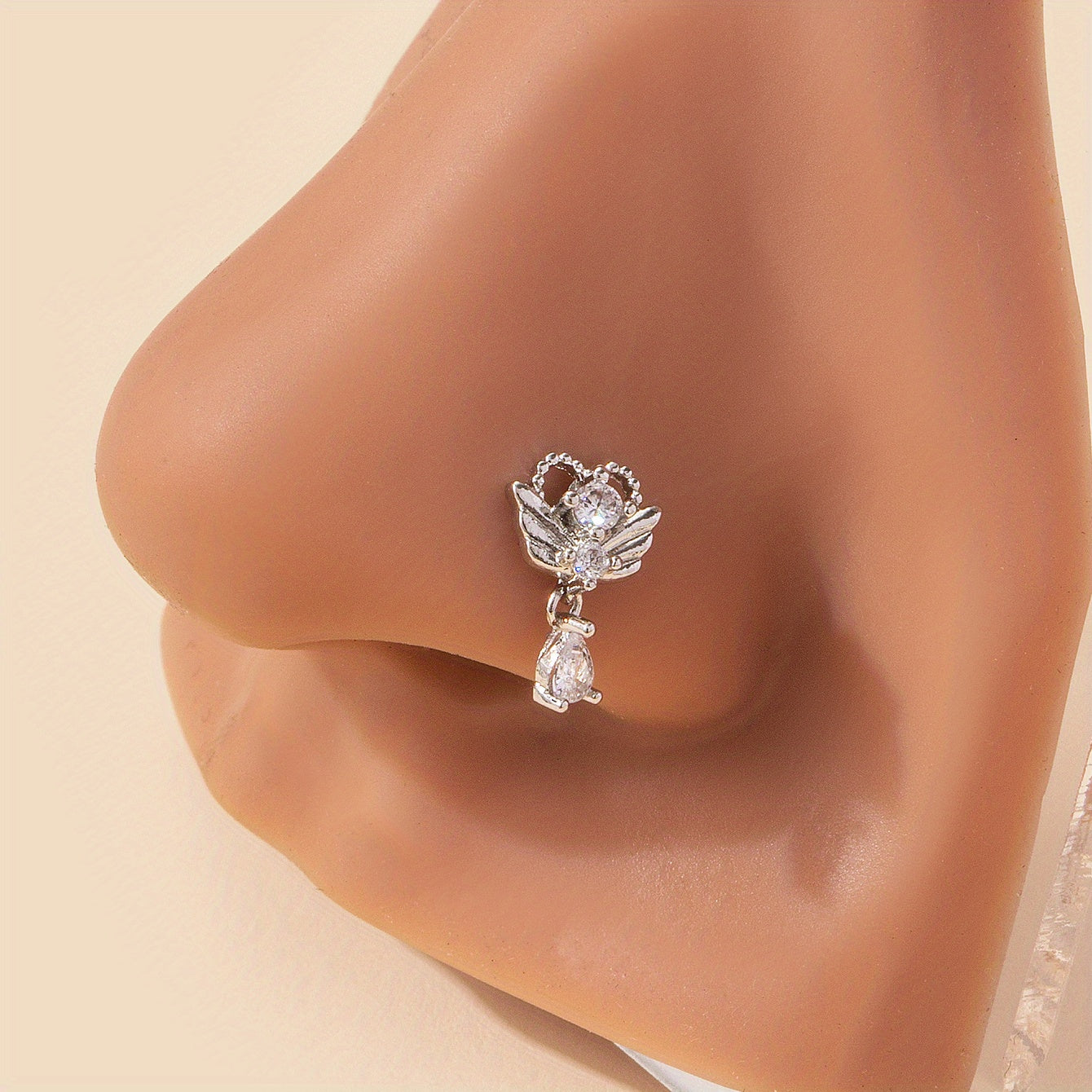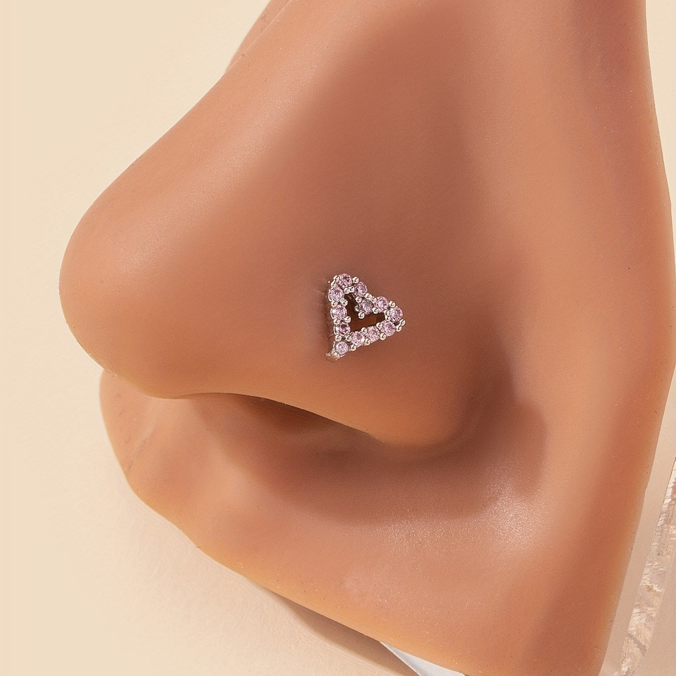 Chic and stylish nose ring featuring a hollow love heart design with inlaid zircon. Made of high-quality stainless steel.