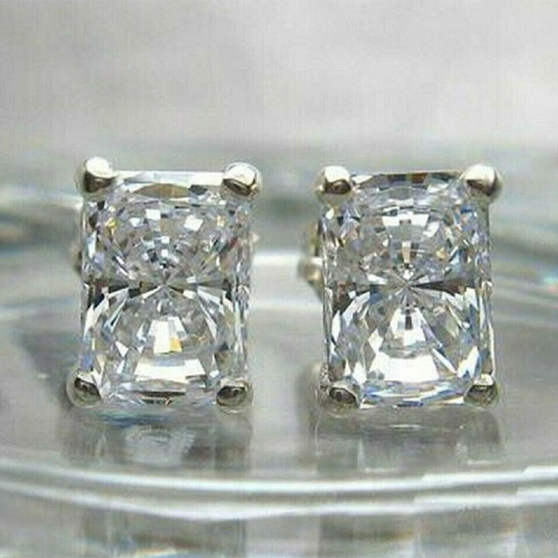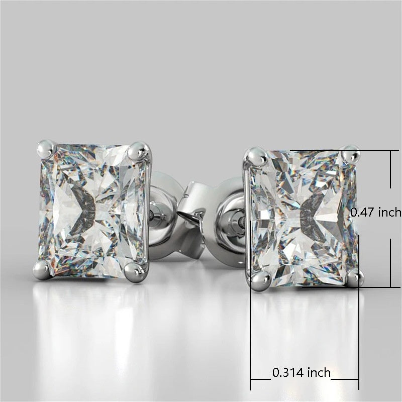 These elegant 4 prong rectangle zircon stud earrings are a perfect accessory for women and girls. They are ideal for weddings, holidays, parties, and everyday wear. These earrings are silver plated and make a great gift.