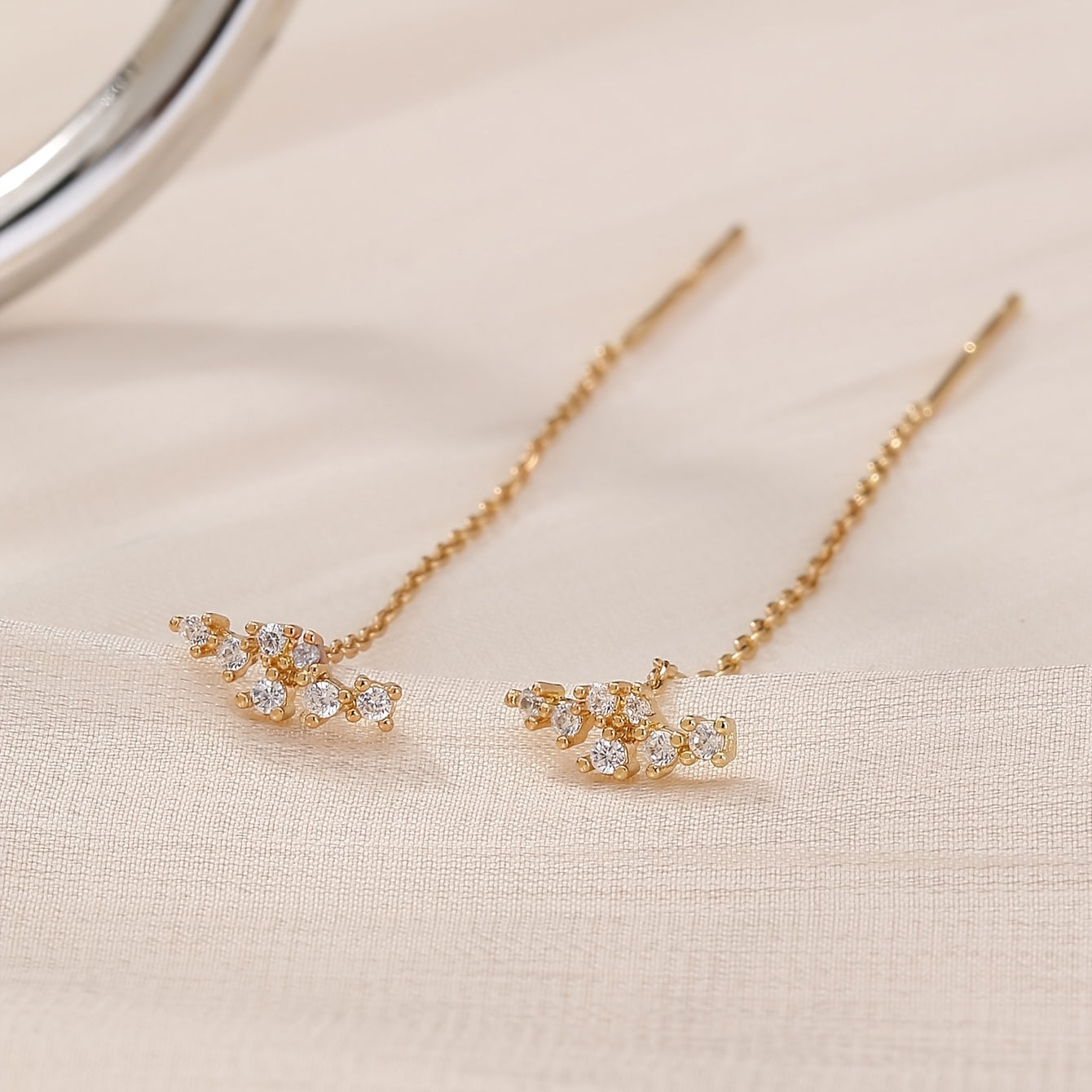 Add a touch of glamour with these elegant zircon tassel threader earrings. Perfect for any occasion!