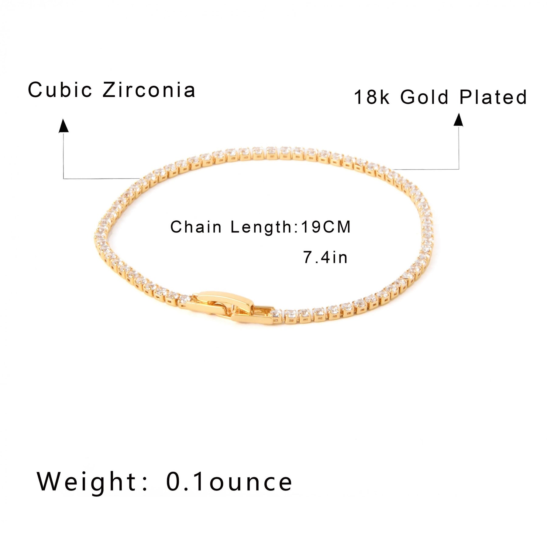 Zircon Tennis Bracelet 18K Plated Copper Hand Jewelry