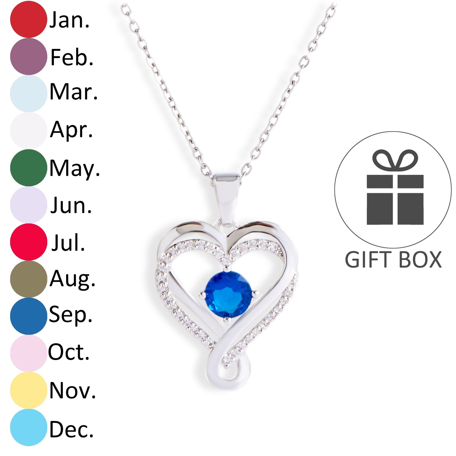 Embrace romantic style with this stunning zirconia birthstone love pendant stainless steel necklace. A perfect jewelry gift for your loved one on any occasion.