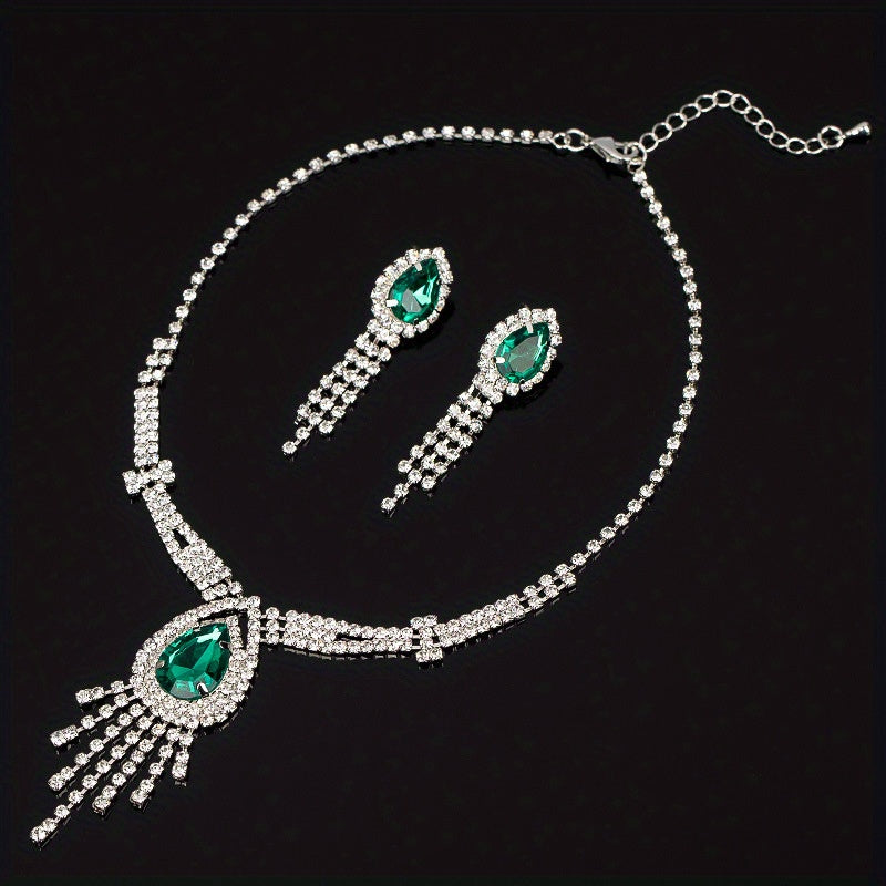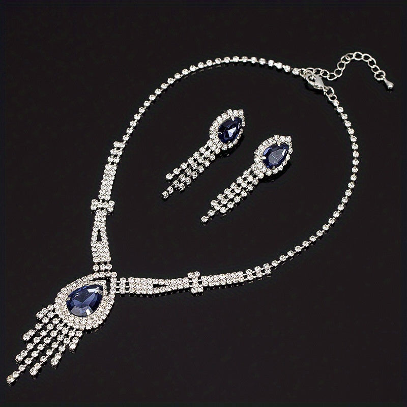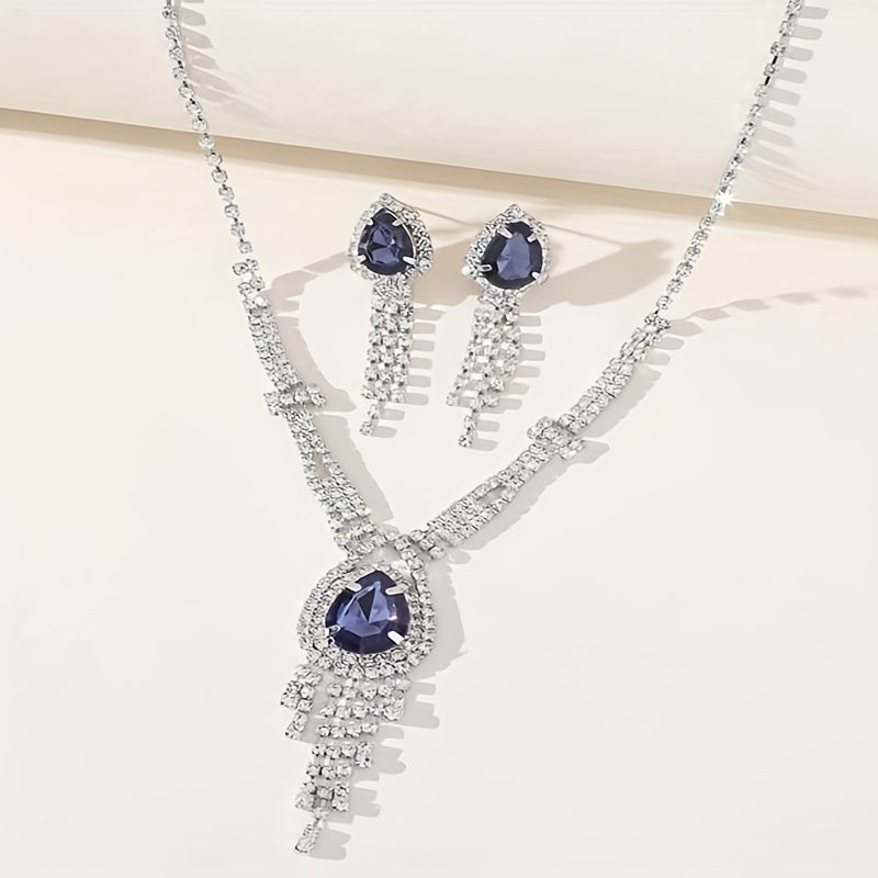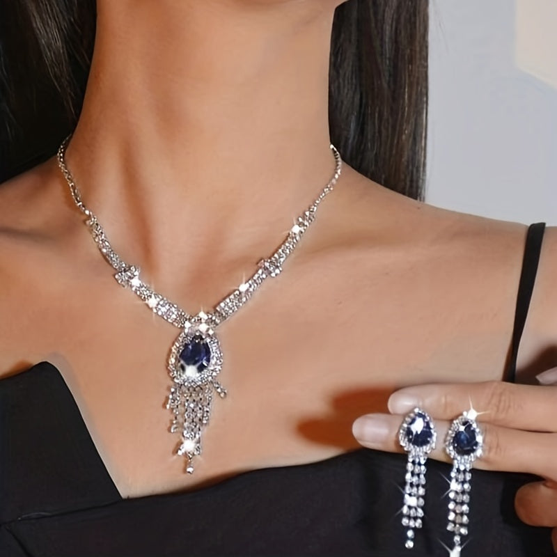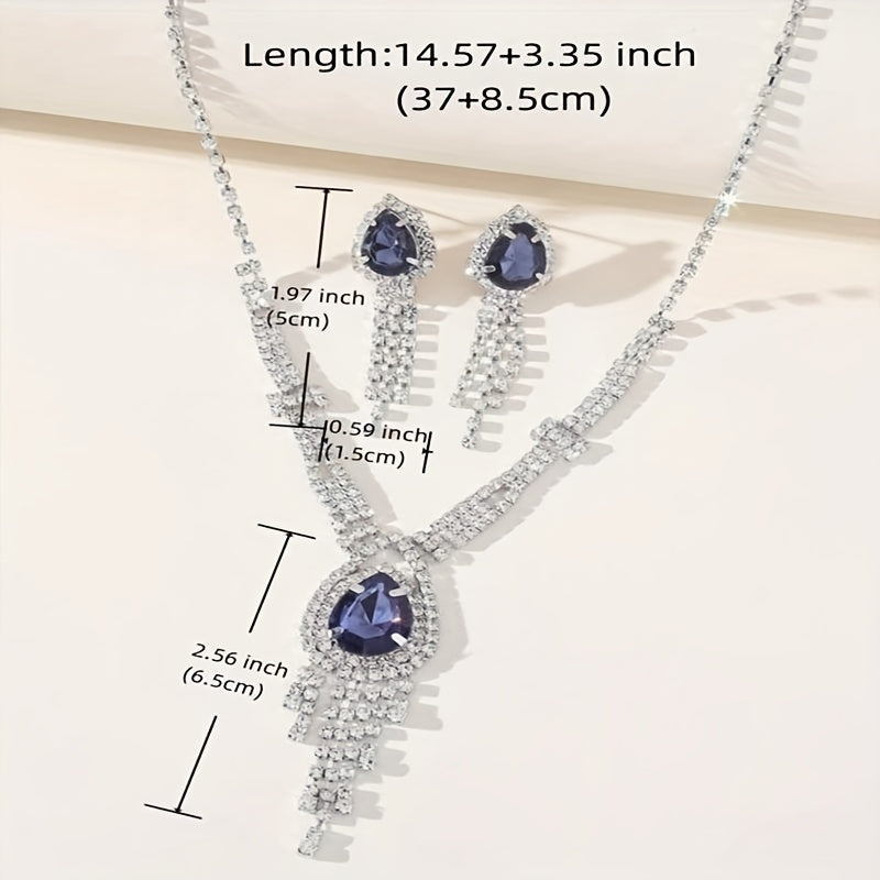 Enhance your outfit with this stunning Zirconia necklace and earrings set. Perfect for banquets, proms, and special occasions.