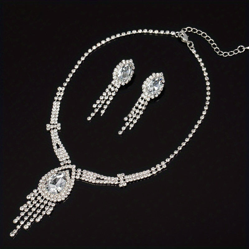 Zirconia Necklace & Earrings Set Sparkling Rhinestone Chain Women's Jewelry